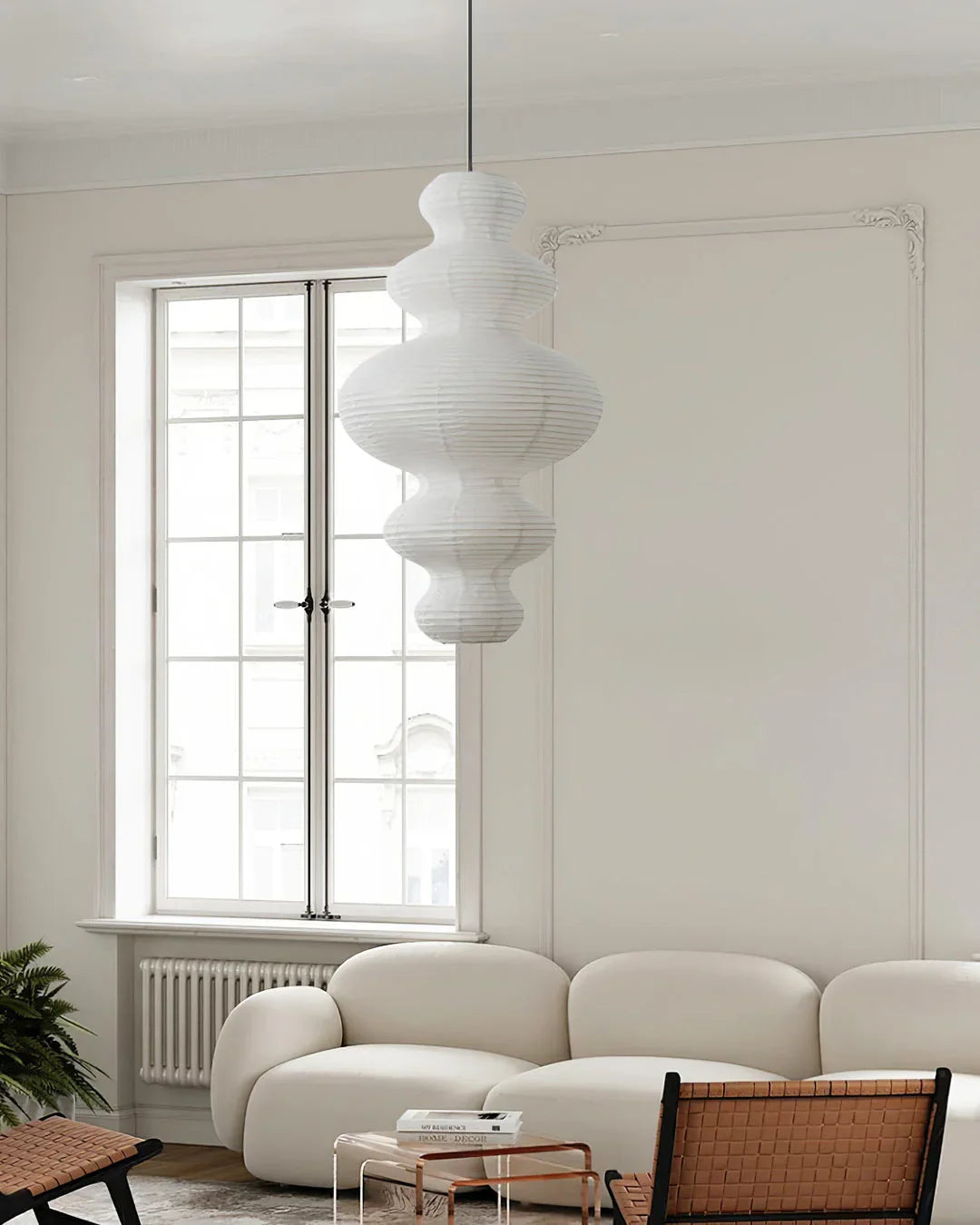 Indulge in the exquisite elegance of the Akari Juni Pendant Lamp. Crafted with delicate rice paper, this luxurious and artistic light adds a touch of refinement to any space. Impeccable attention to detail and exceptional quality make this lamp a true statement piece that elevates the beauty of your surroundings.