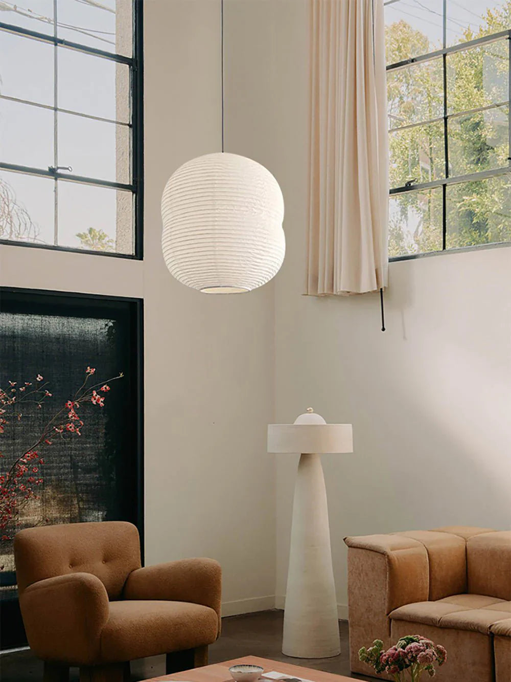 The Akari Minimalist Pendant Light perfectly blends traditional aesthetics with modern design, adding a touch of stylish elegance to any interior. Handcrafted by skilled artisans, it boasts a unique texture and delicate grain that adds a touch of serene elegance to any space. Enhance your modern or classic interior with this versatile and beautiful pendant lamp!