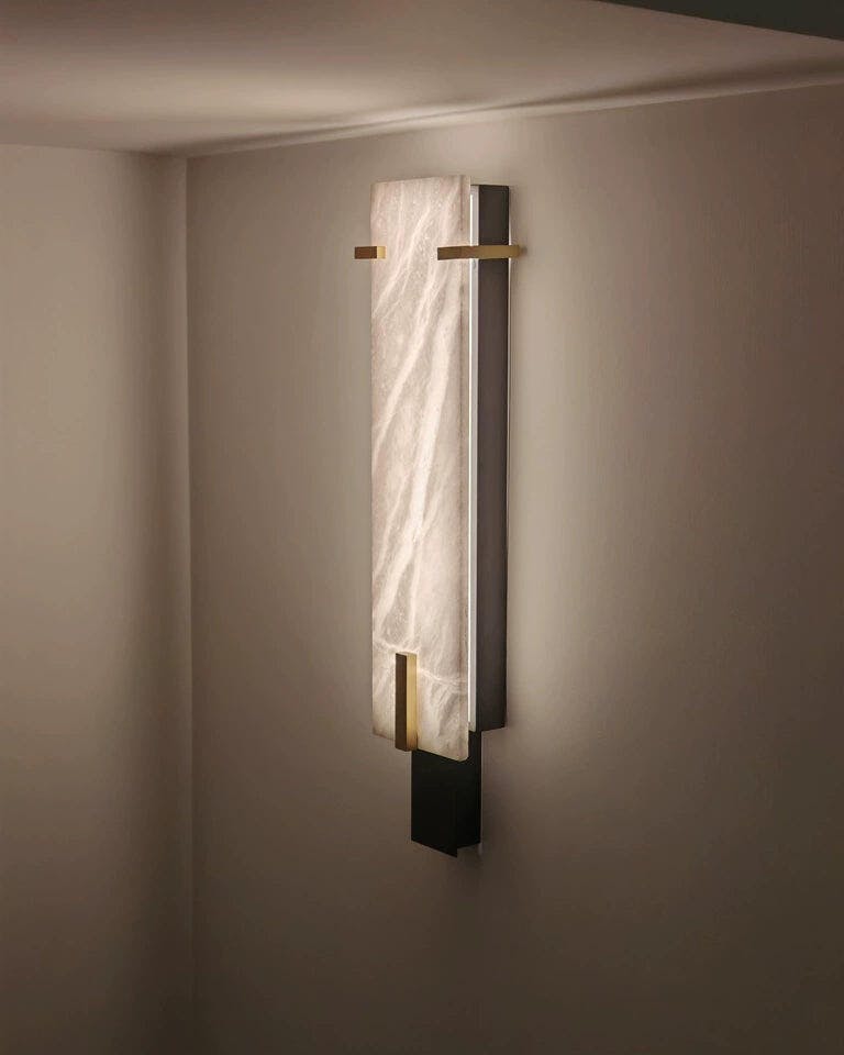 Transform your space with the Alabaster Tiles Stable Personality Wall Lamp. Combining modern design with classic craftsmanship, the elegant alabaster rectangular piece looks particularly beautiful under warm lighting, enhancing any interior.