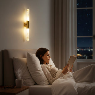 When lit, the Lyra casts a beautiful, ambient glow both upwards and downwards, creating a calming and elegant atmosphere. This dual-light wall sconce is perfect for adding a touch of luxury and sculptural beauty to a hallway, bedroom, or living room, where its light becomes an integral part of your home's dcor.