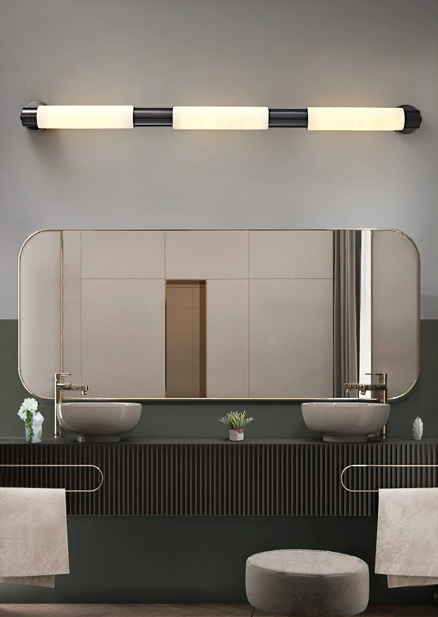 Brings that clean, crisp look to our space, the acrylic spheres soften the light so it's not glaring. Provides excellent lighting while still being a stunning decorative piece. I'm very happy with this purchase.