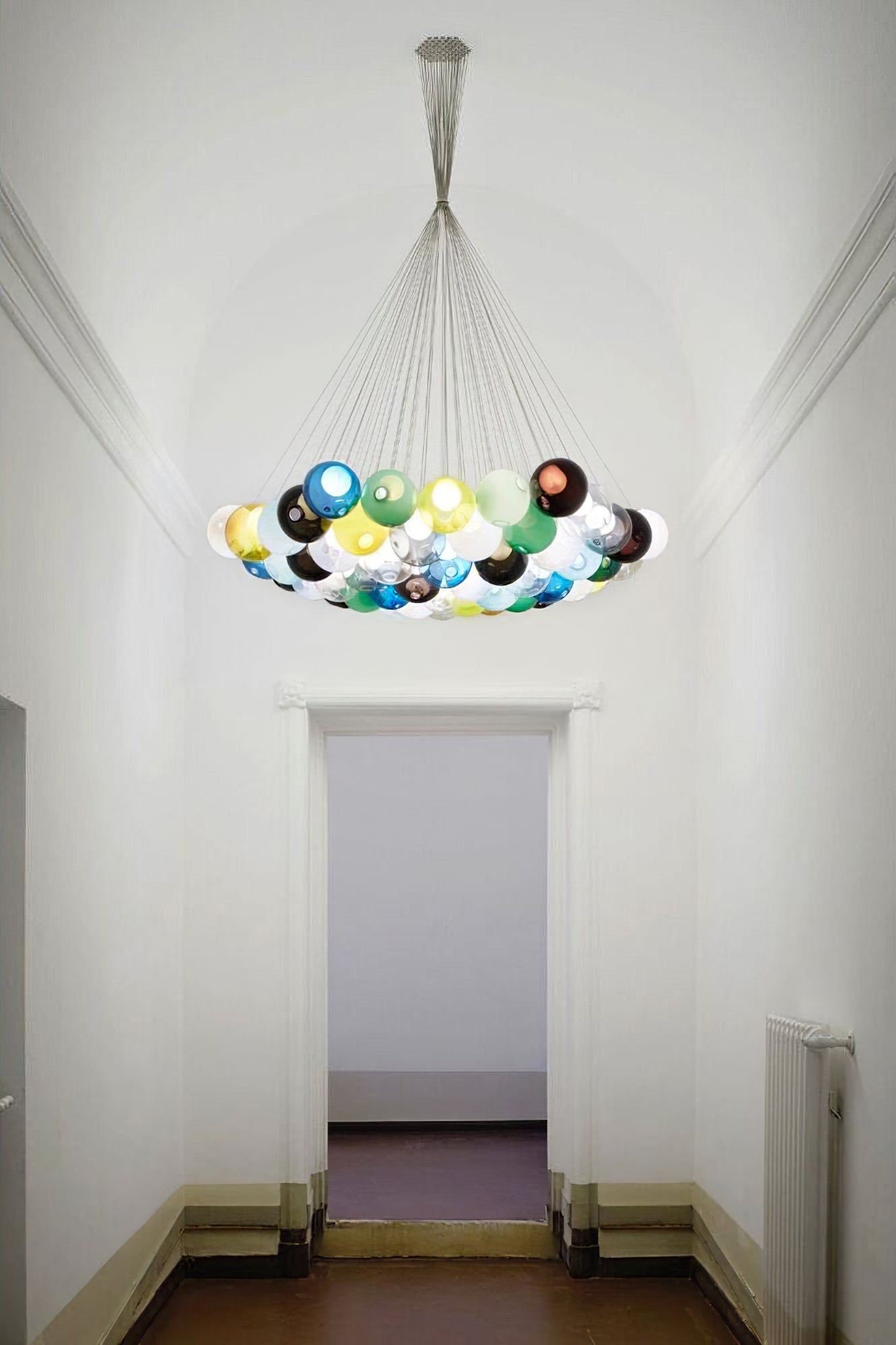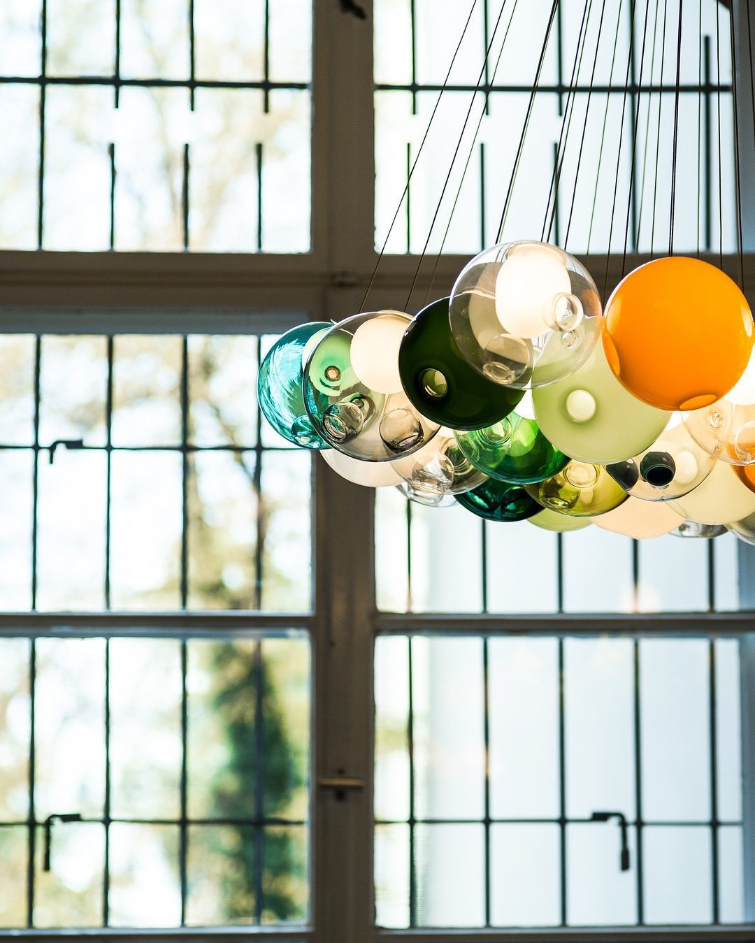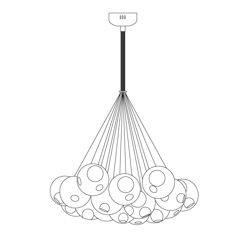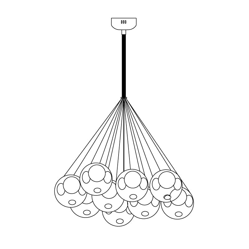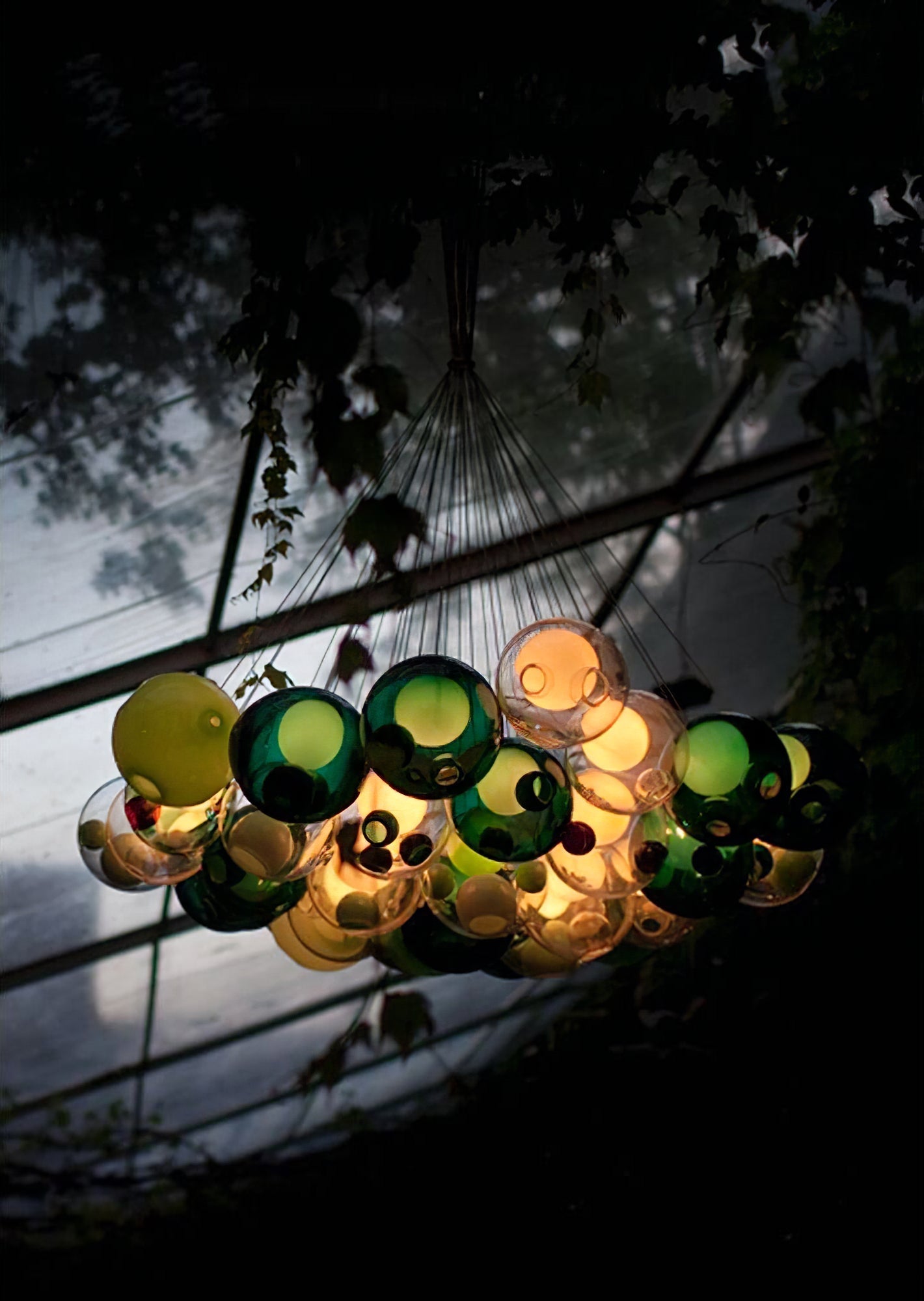 Explore the artistic allure of the 28 Multiple Colour Chandelier - Cluster – a stunning multi-light fixture that transforms any space into a contemporary design masterpiece. Each hand-blown glass sphere boasts a unique internal landscape, thanks to innovative airflow control technology that seamlessly blends natural beauty with meticulous engineering. Adjustable to your aesthetic preferences, it creates captivating patterns of light and shadow depending on its installation location.