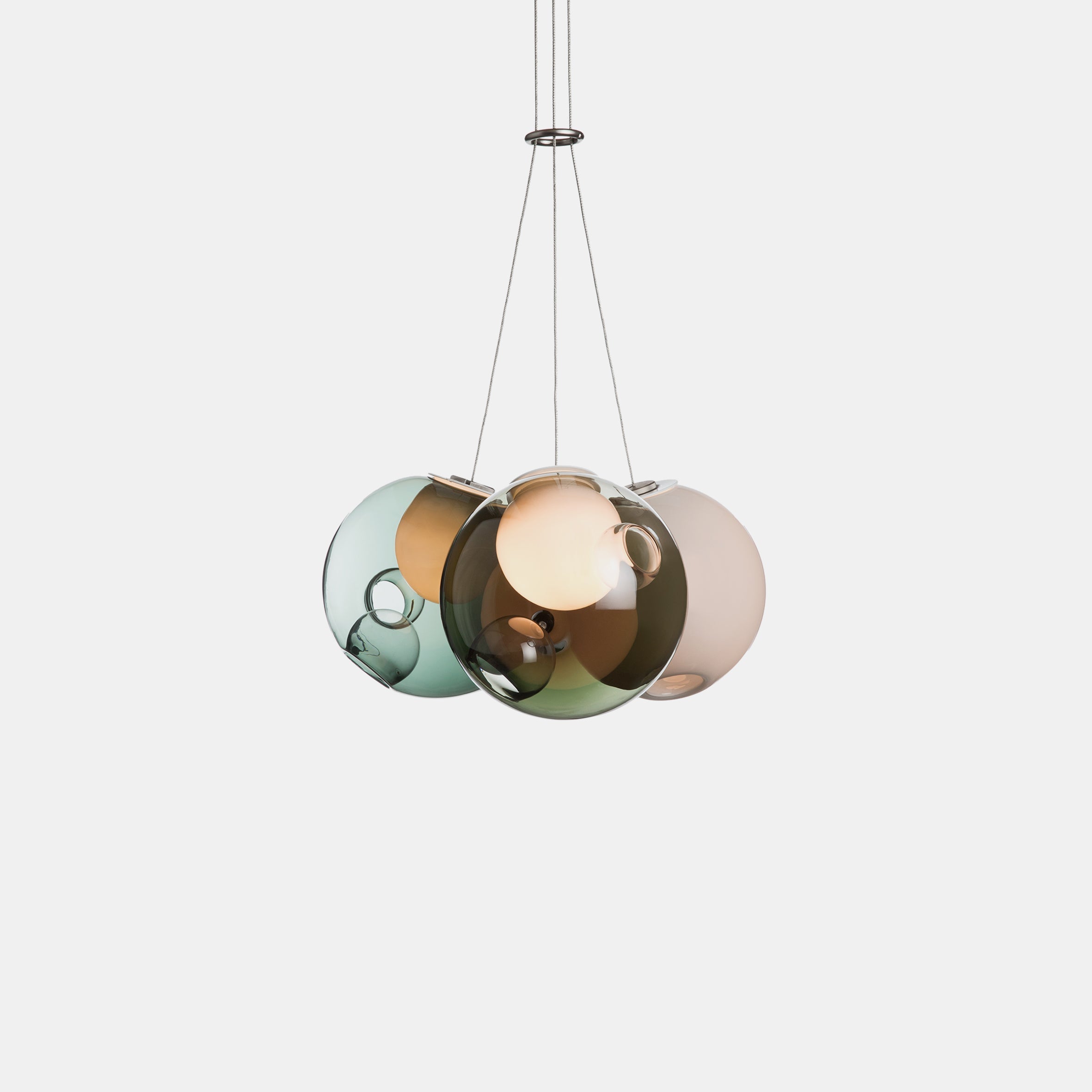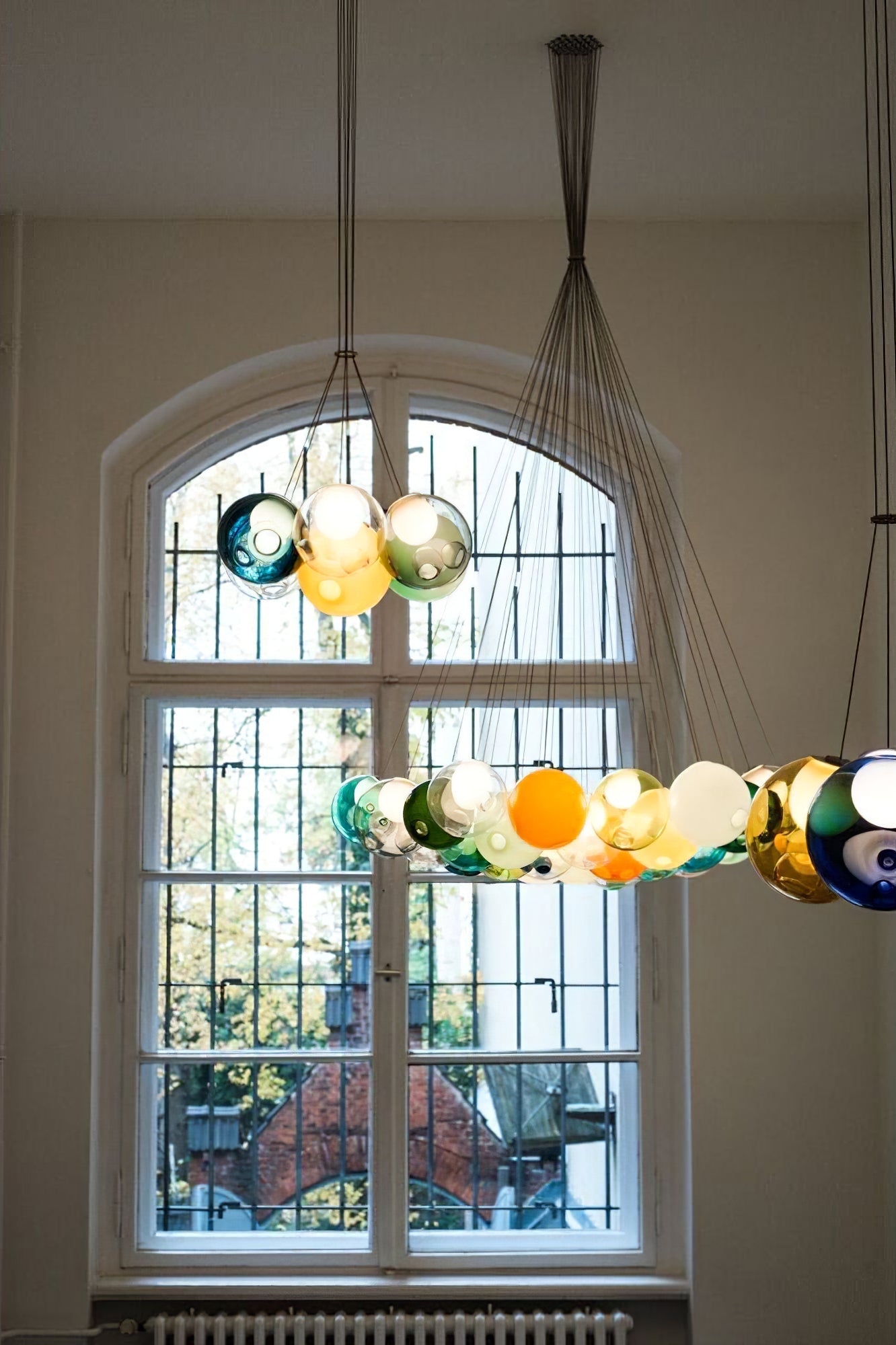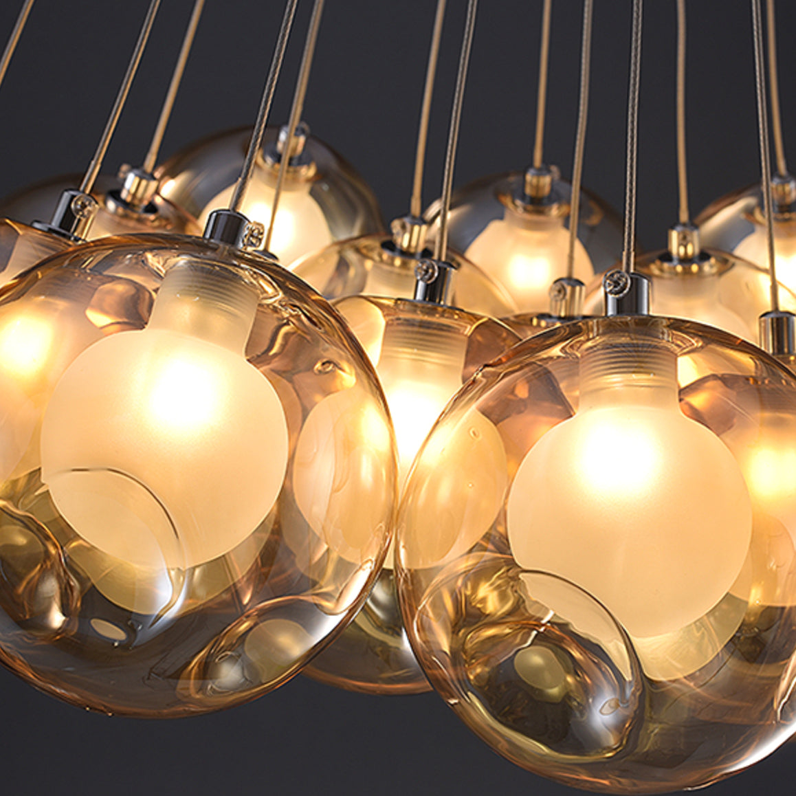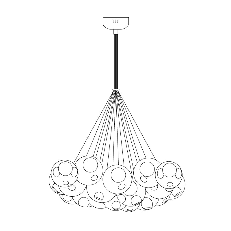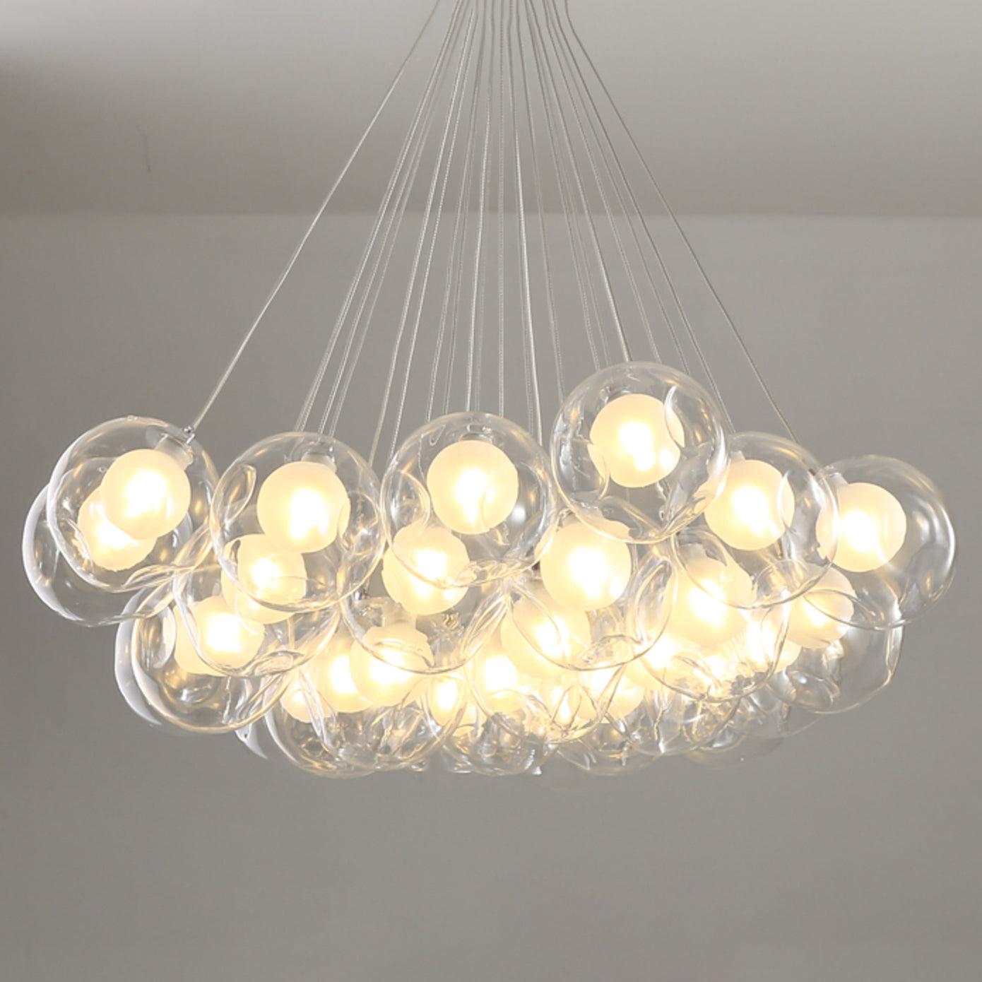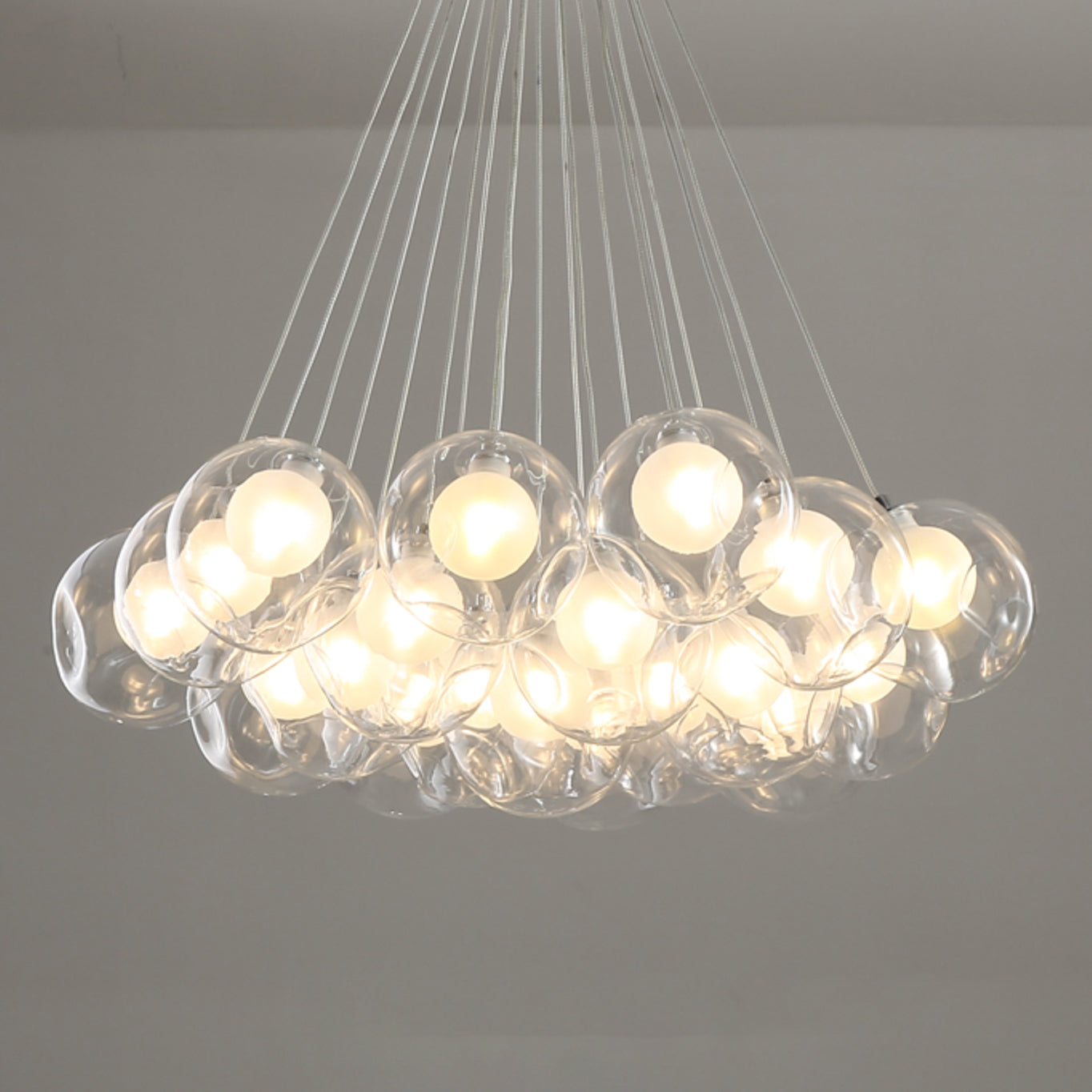 Explore the artistic allure of the 28 Multiple Colour Chandelier - Cluster – a stunning multi-light fixture that transforms any space into a contemporary design masterpiece. Each hand-blown glass sphere boasts a unique internal landscape, thanks to innovative airflow control technology that seamlessly blends natural beauty with meticulous engineering. Adjustable to your aesthetic preferences, it creates captivating patterns of light and shadow depending on its installation location.