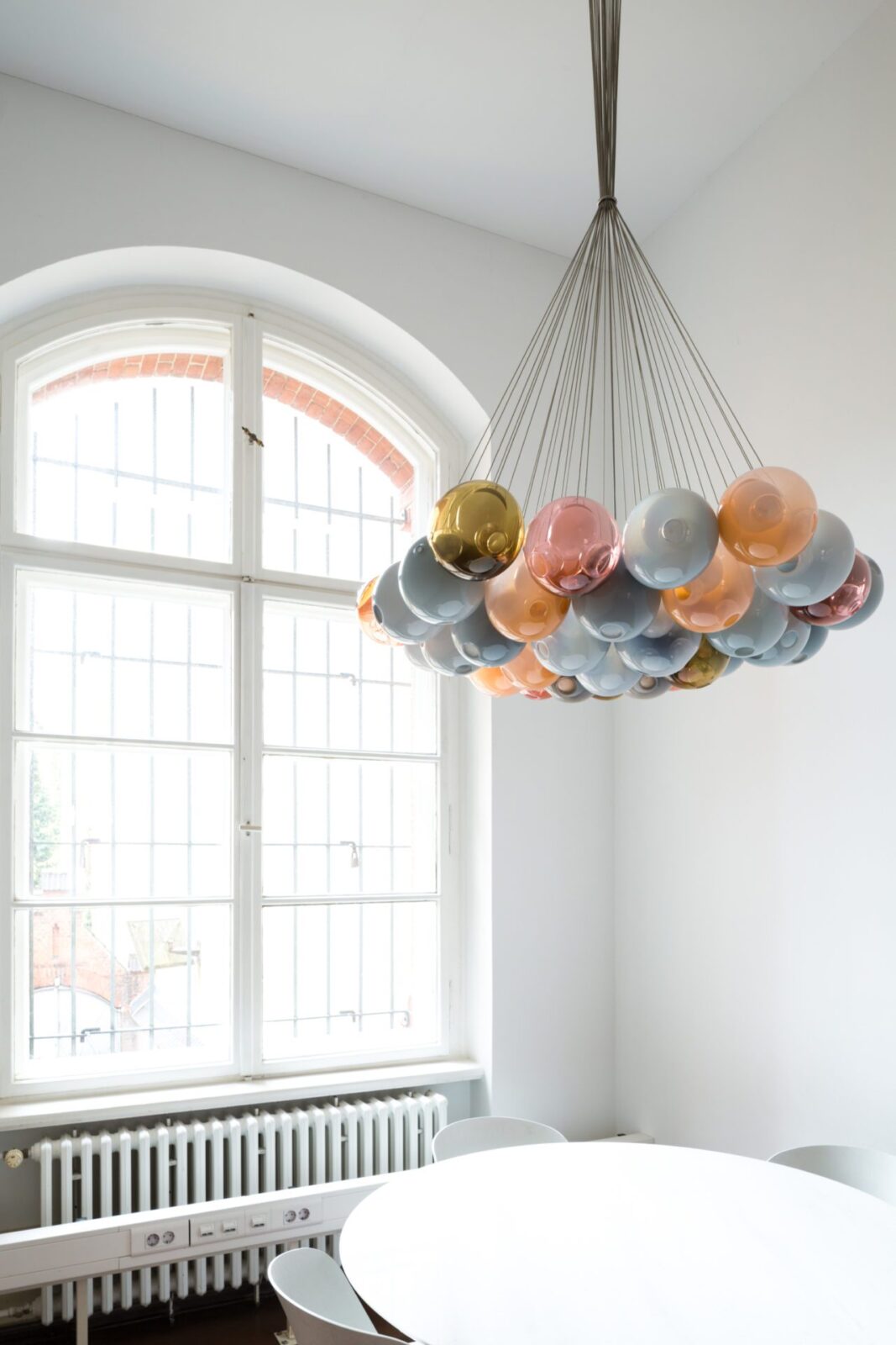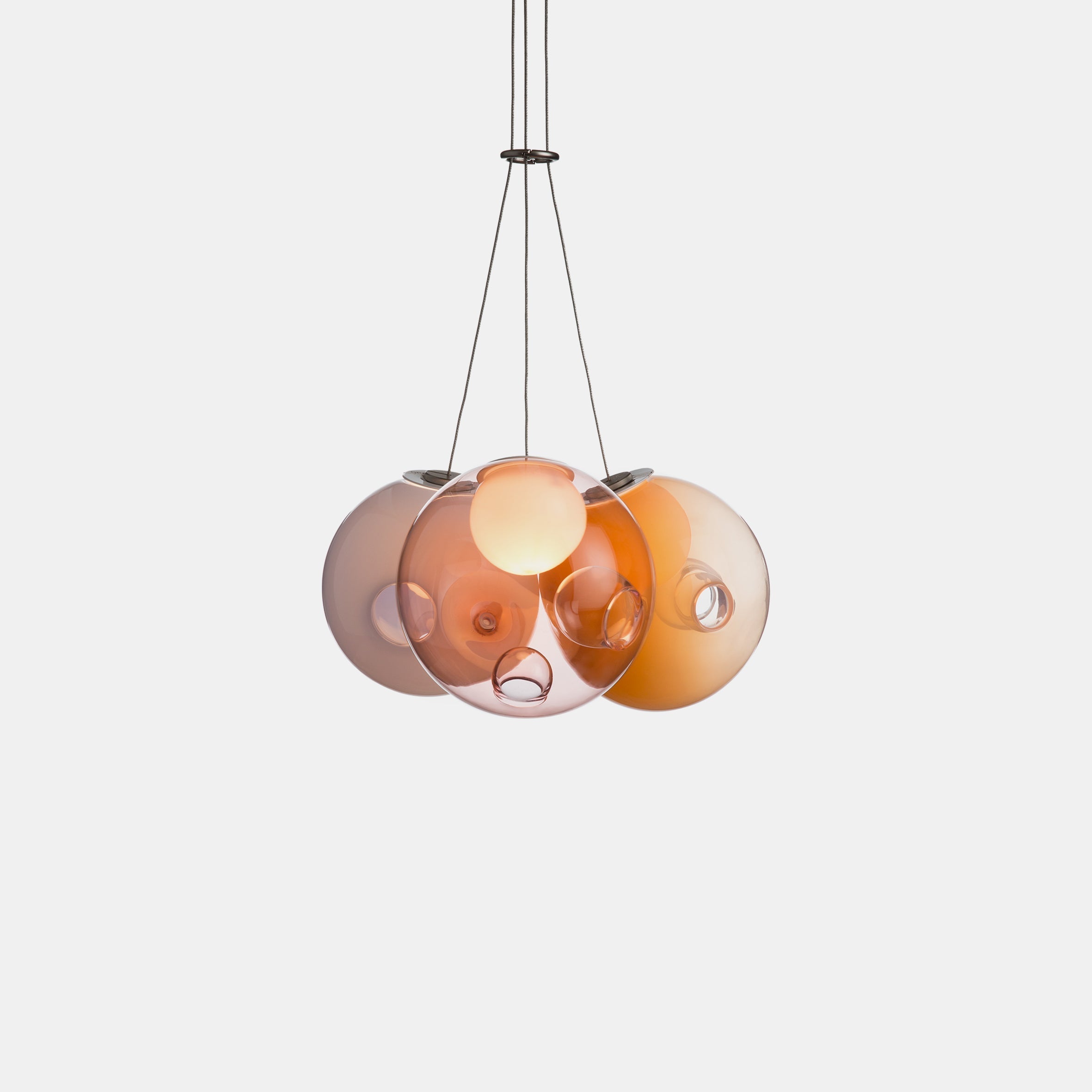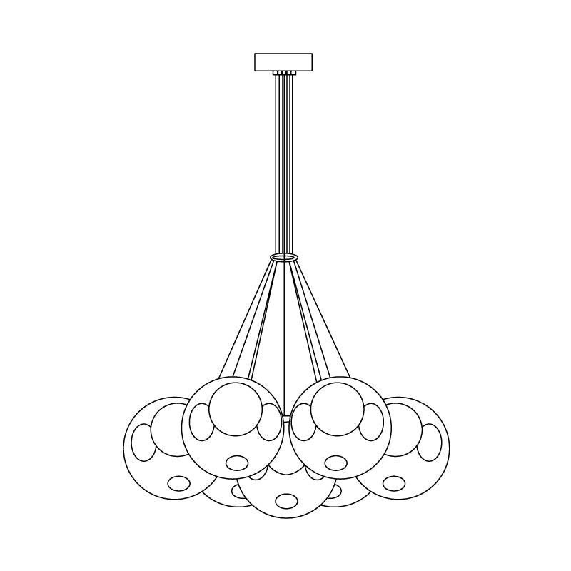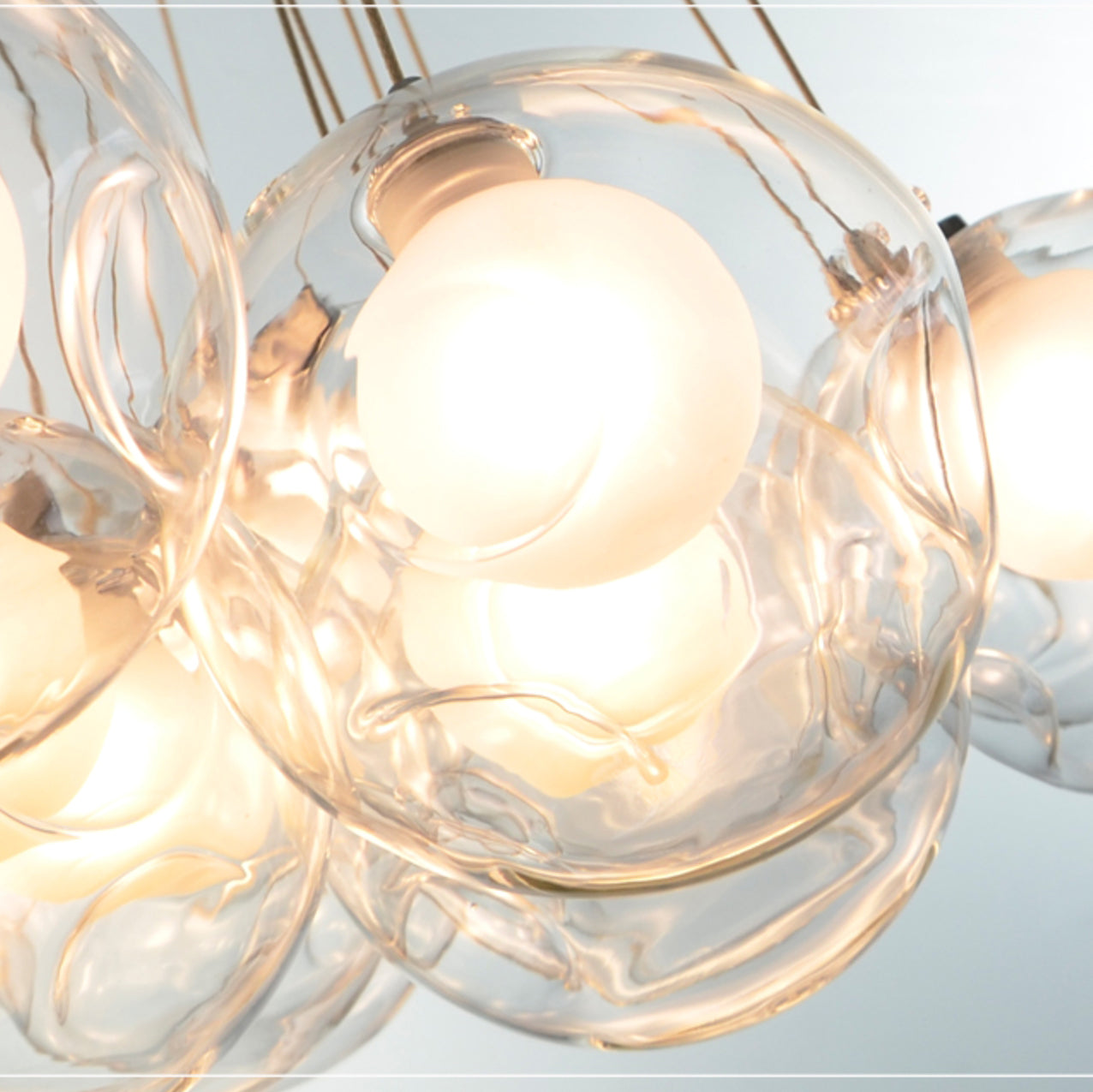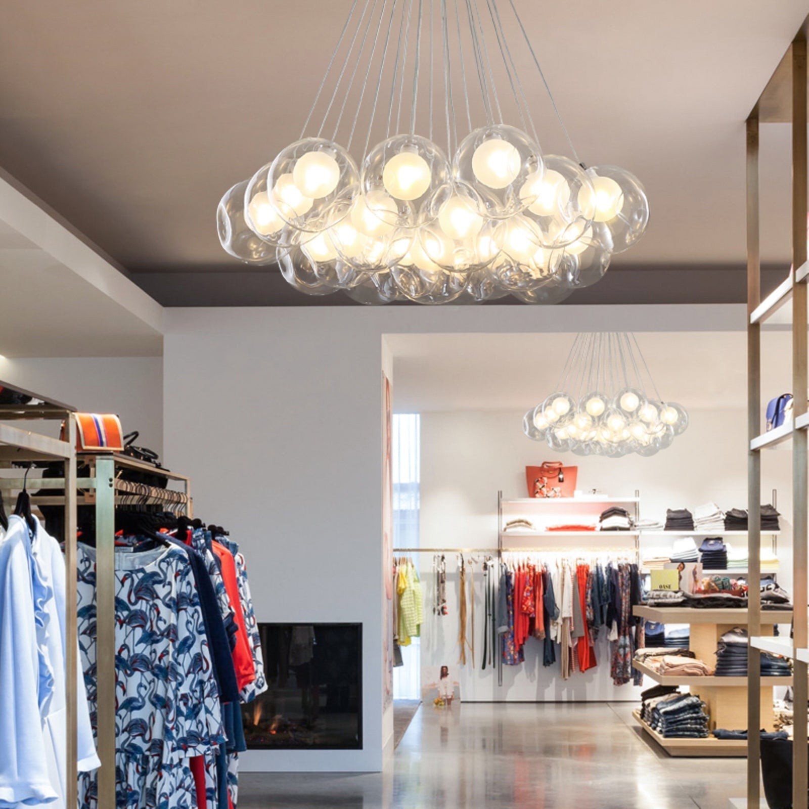 Explore the artistic allure of the 28 Multiple Colour Chandelier - Cluster – a stunning multi-light fixture that transforms any space into a contemporary design masterpiece. Each hand-blown glass sphere boasts a unique internal landscape, thanks to innovative airflow control technology that seamlessly blends natural beauty with meticulous engineering. Adjustable to your aesthetic preferences, it creates captivating patterns of light and shadow depending on its installation location.