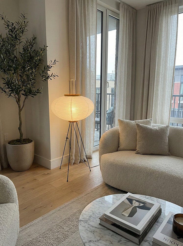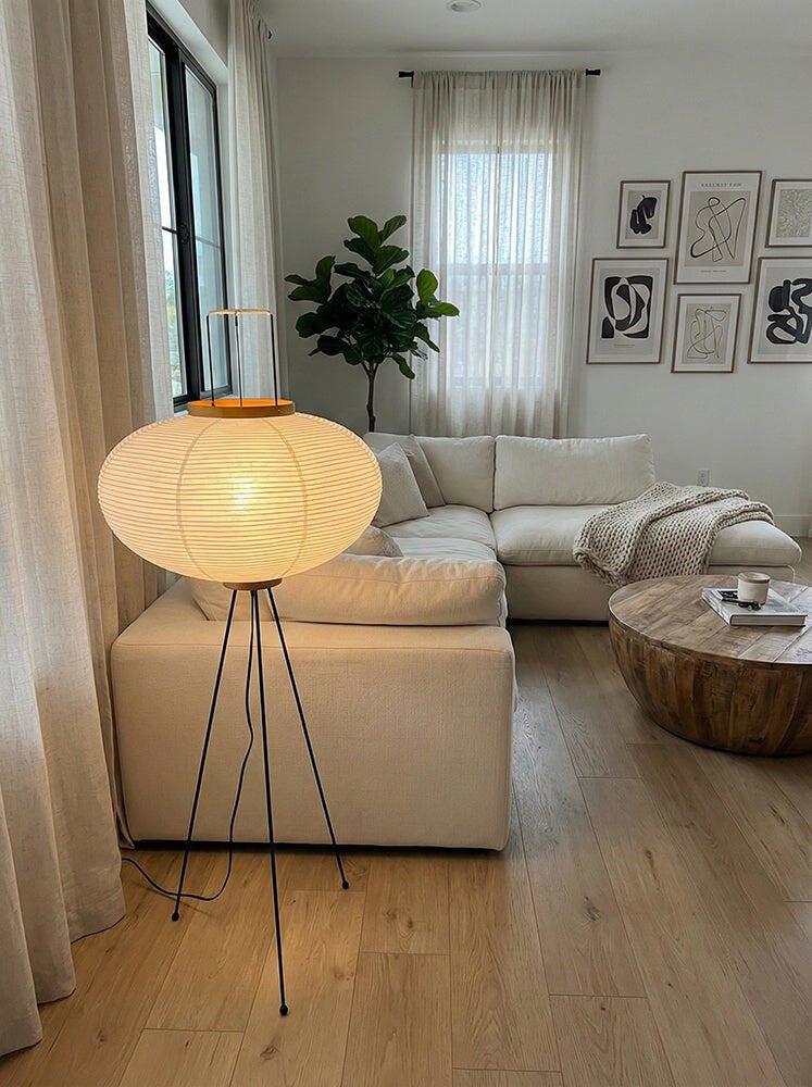 I love the aesthetic of this pendant light. It's both beautiful and modern. The light it emits is very soft, and the length is just right for our ceiling. If you're still hesitant, don't think twice, buy it!
