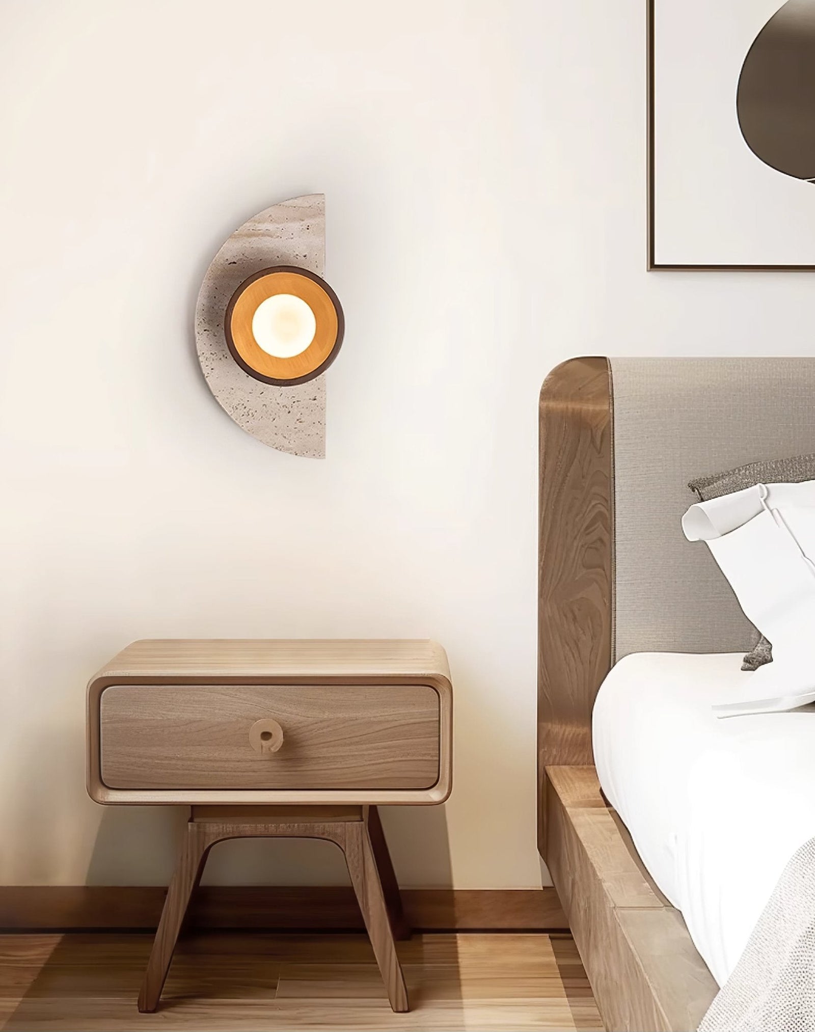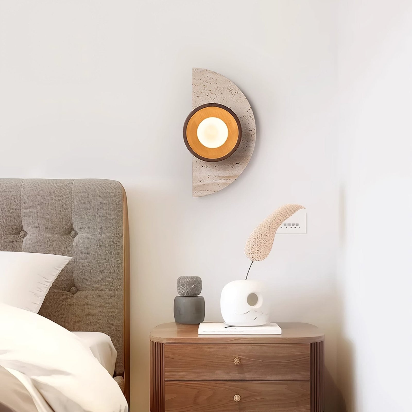 The Semicircular Travertine Wall Light transforms your wall into a gallery-worthy focal point. This sculptural fixture combines a semi-circular travertine base with warm wood framing and a soft-glowing orb, creating visual intrigue that complements modern interiors. The natural stone texture and geometric form deliver organic sophistication—a statement piece that feels both contemporary and timeless. Ideal for entryways, bedrooms, or living spaces where distinctive design matters.