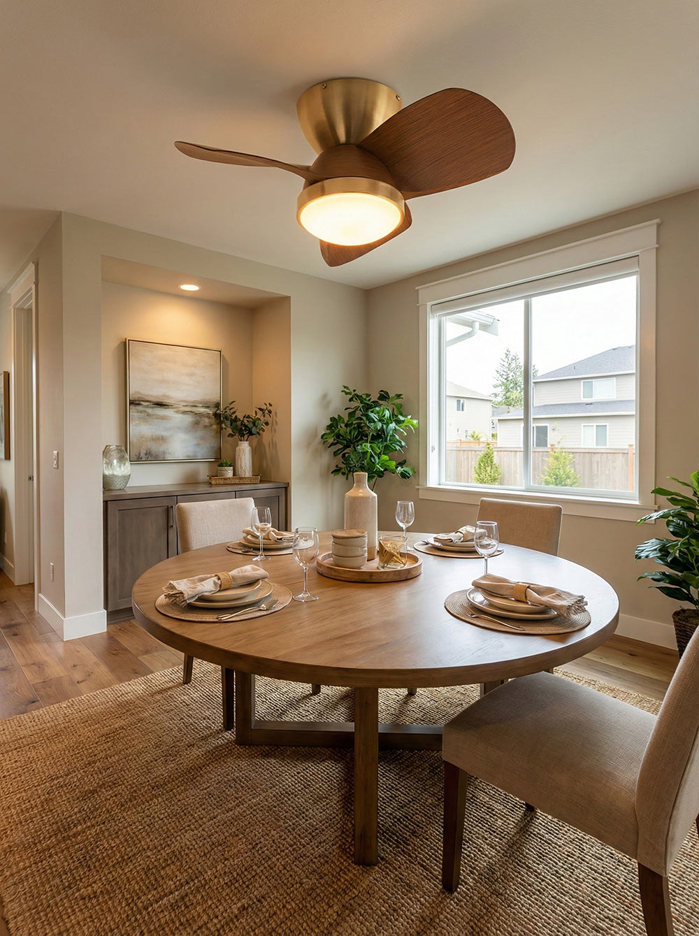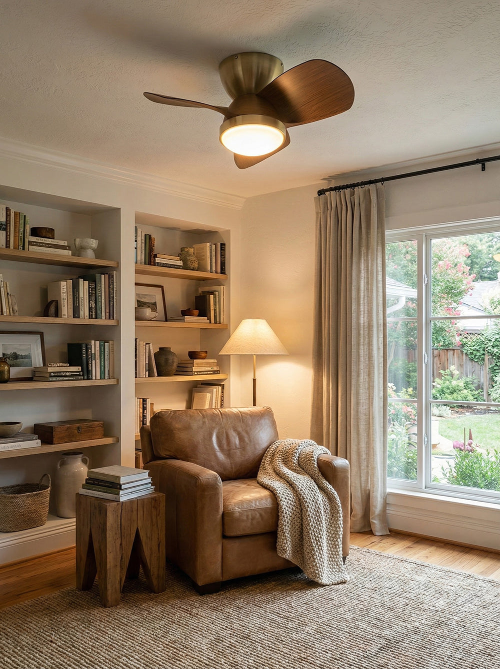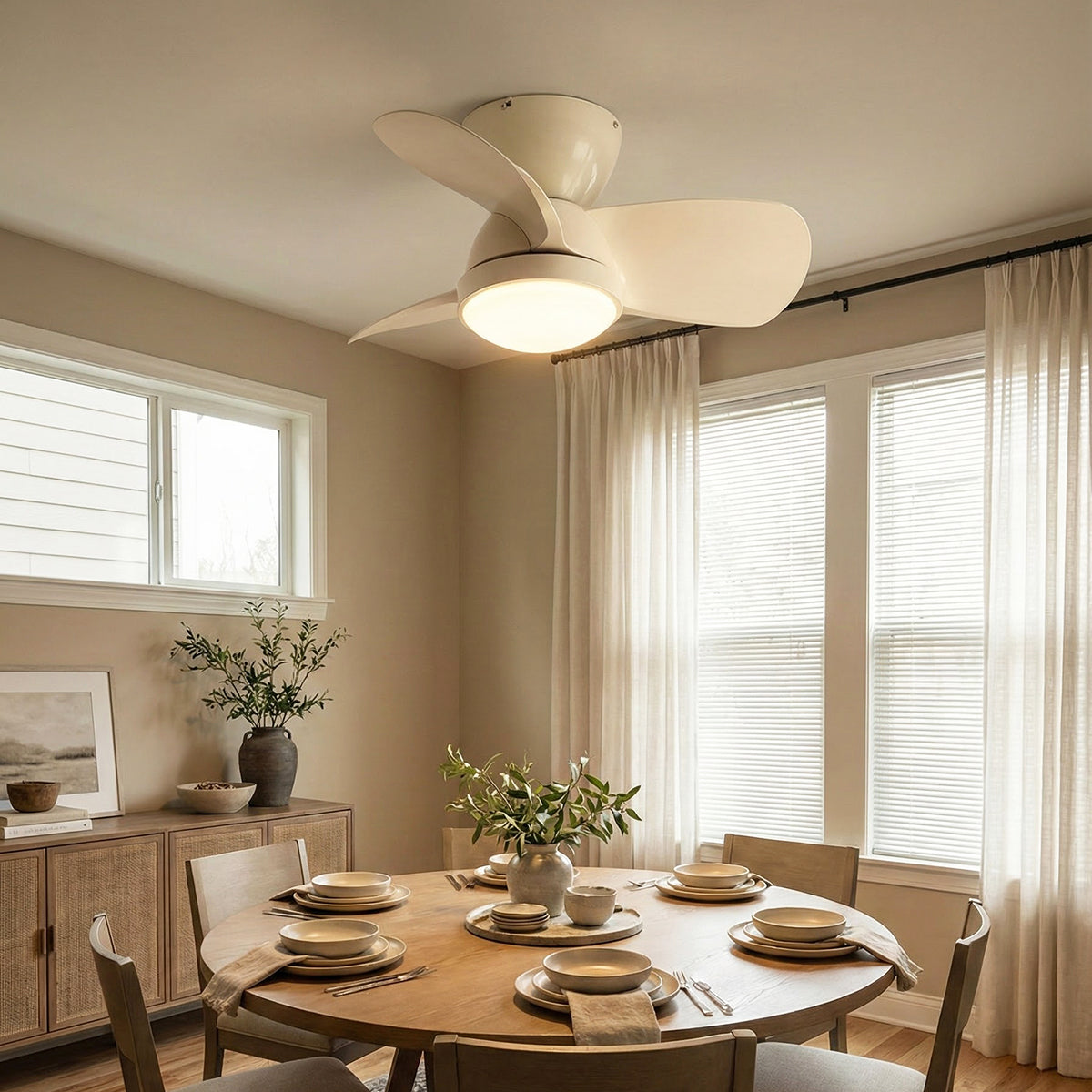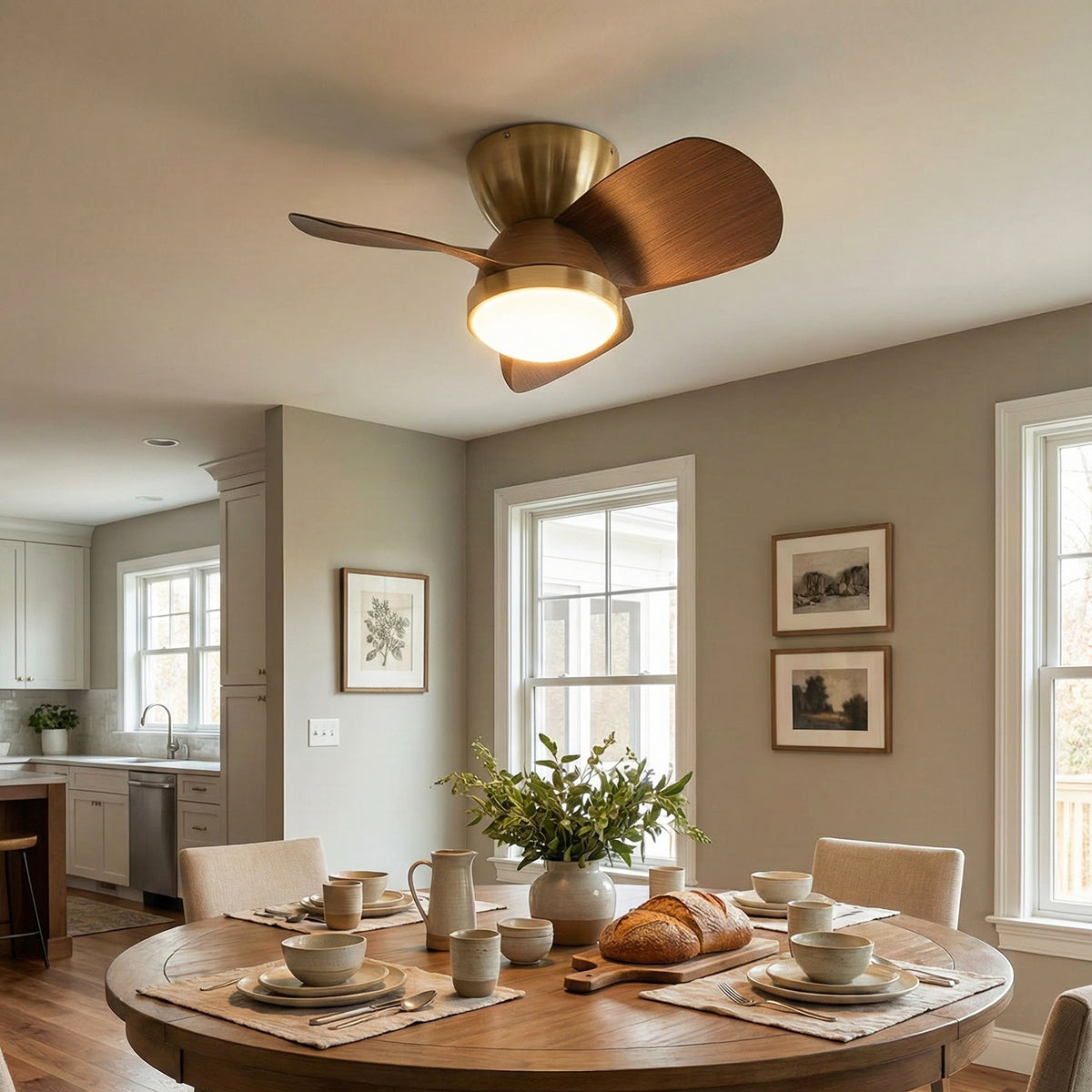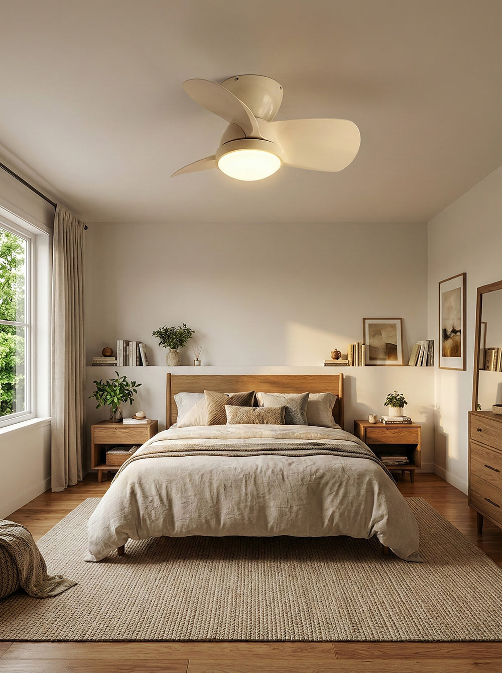 The Minimalist Miroter Ceiling Fan Light is a compact ceiling fan designed for modern, sophisticated living.  It blends modern elegance with a touch of vintage charm, making it an ideal choice for enhancing the style of smaller spaces. Its flush-mount design perfectly addresses the feeling of confinement often experienced in homes with low ceilings. Its compact size makes it an excellent air circulation solution for bedrooms, small living rooms, studios, or boutique apartments.