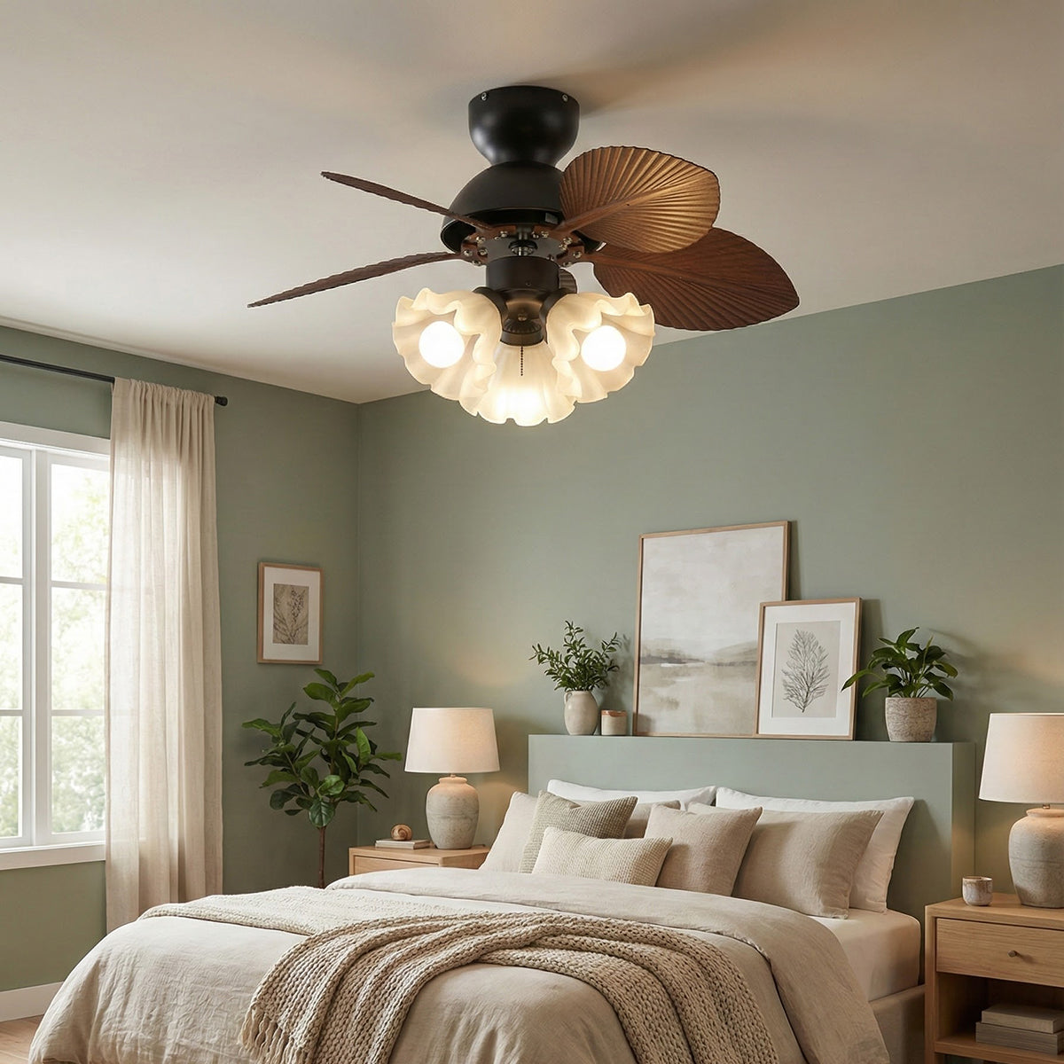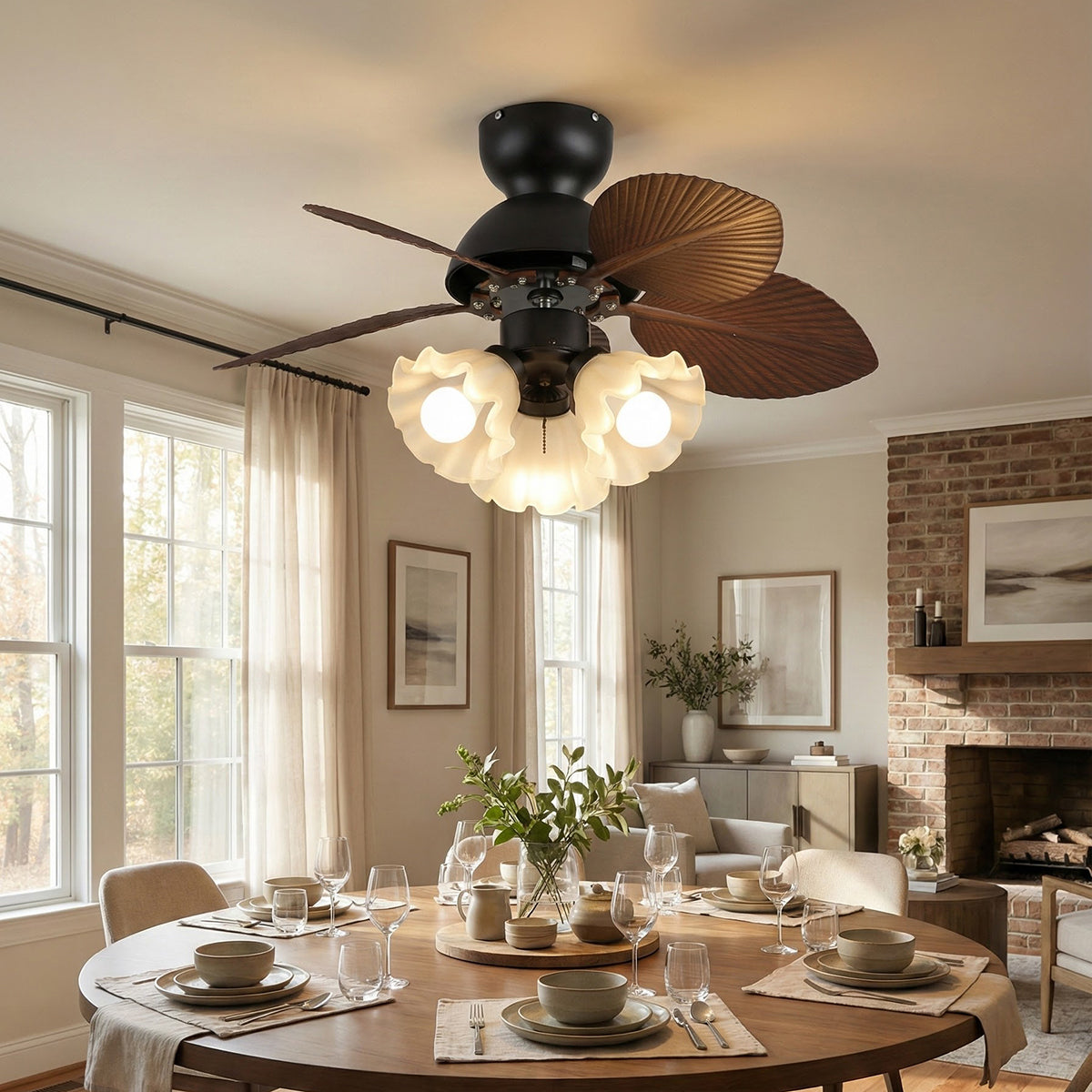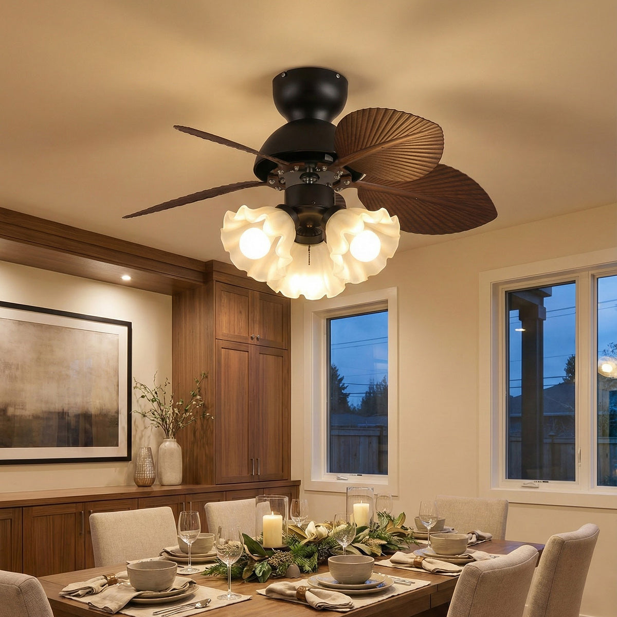 Let the beauty of nature blossom indoors. The Palm Leaves Flower Shape Ceiling Fan Light perfectly blends the vibrant charm of plants with a vintage, elegant silhouette, creating a highly distinctive, artistic home appliance. It provides soft ambient lighting while ensuring powerful yet quiet airflow. Whether it's an American vintage, French country, or nature-inspired study, it serves as a visual centerpiece that elevates the soul of the space.