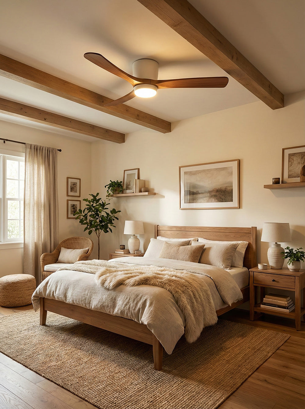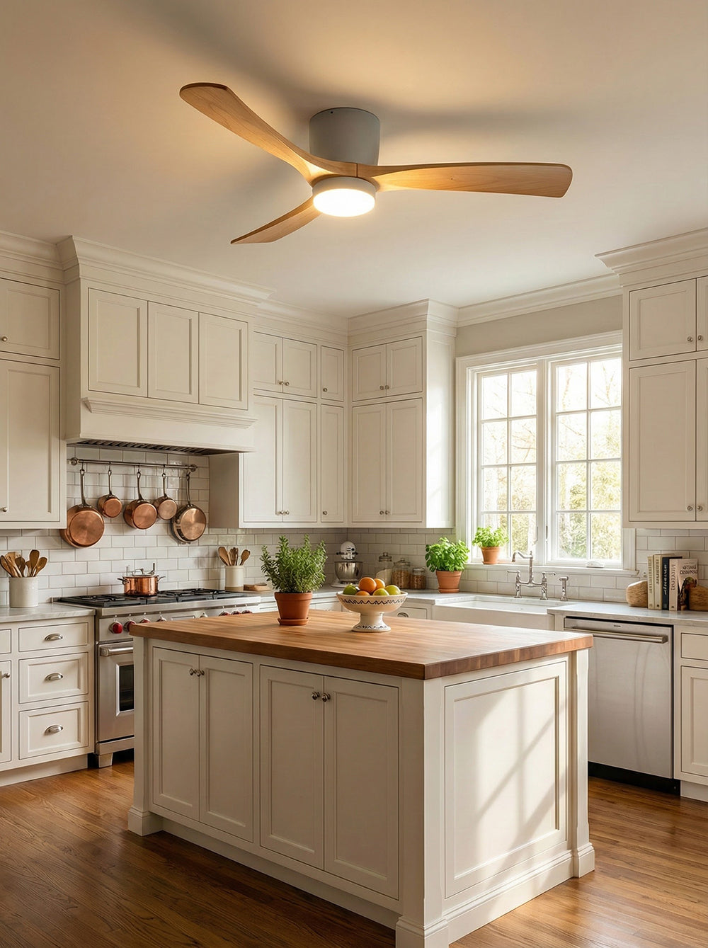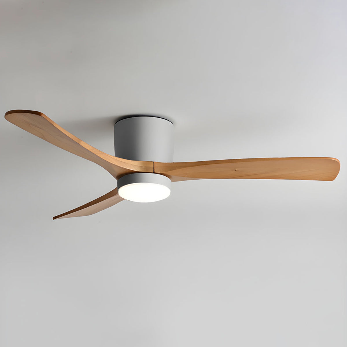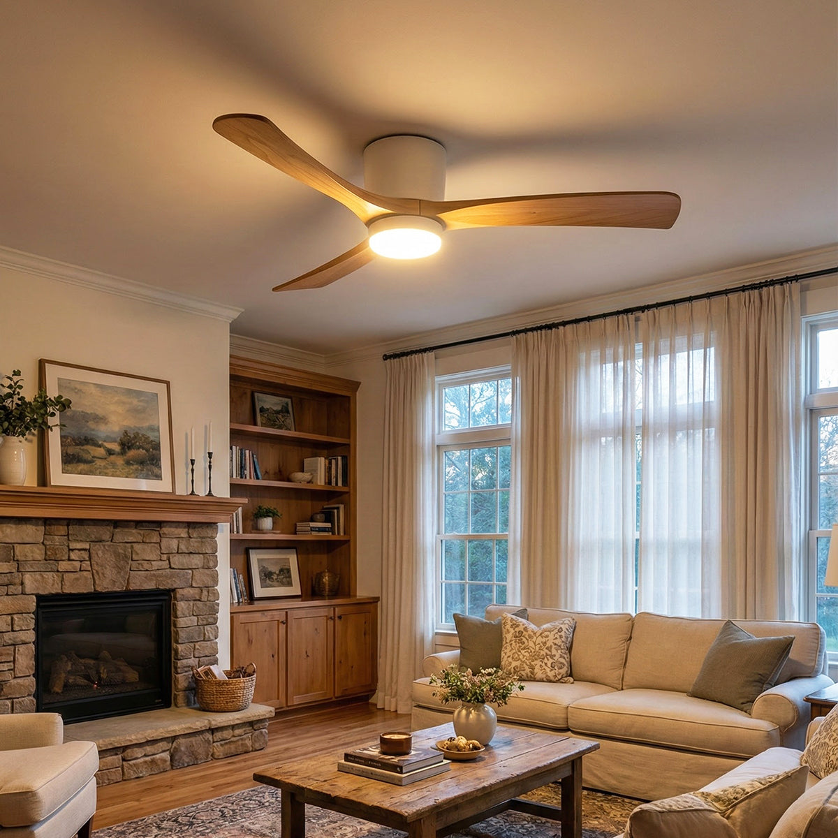 Featuring selected solid wood blades, the streamlined three-blade design showcases a clean, minimalist Nordic silhouette. The natural wood texture blends perfectly with wood-themed, Japanese Wabi-Sabi, or modern minimalist home decor styles, adding a touch of natural elegance to the room. It ensures balanced airflow coverage and just the right visual proportions, whether in a cozy bedroom or a spacious living room. Equipped with an advanced motor, it operates smoothly and efficiently, providing a quiet and cool experience. The built-in integrated LED light source provides soft, non-glaring light, creating a warm and relaxing home atmosphere.