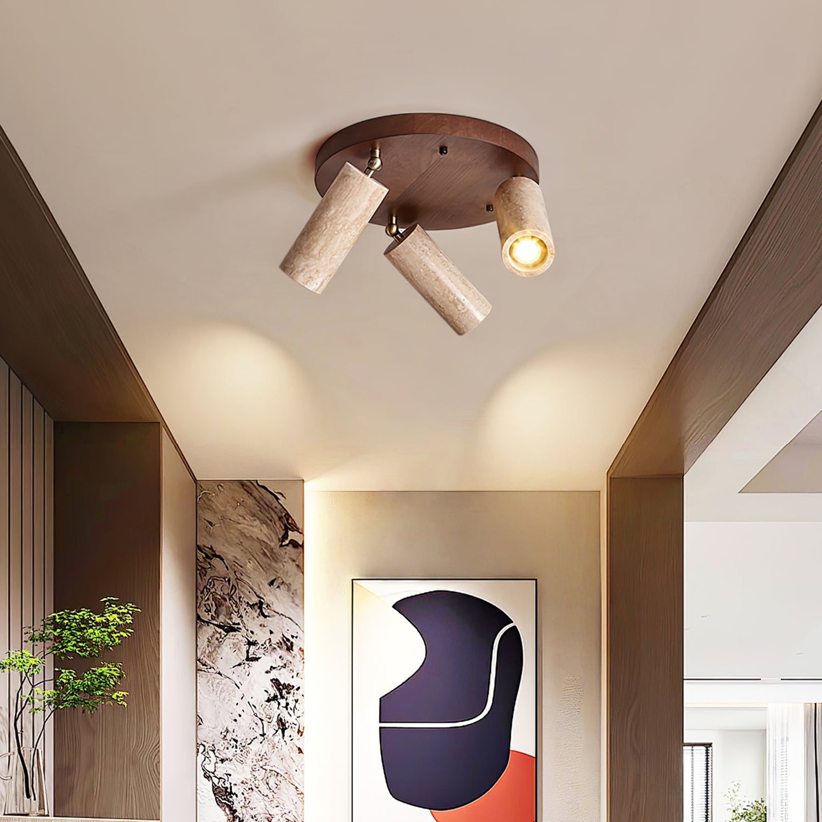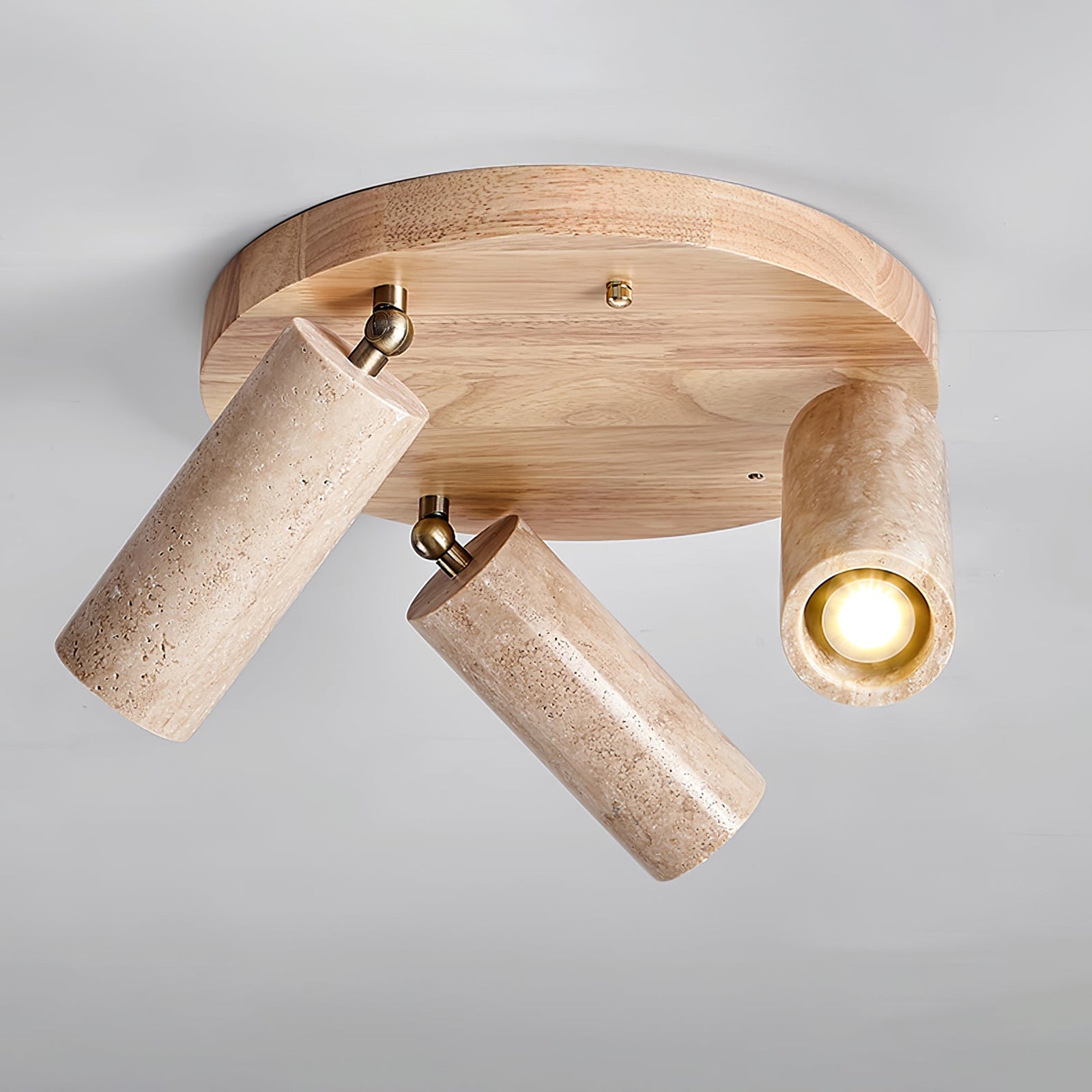 Bring together natural texture and refined style with this Cylindrical Travertine Terra Beam Ceiling Light. Three adjustable cylindrical spotlights deliver focused illumination while the combination of stone and wood creates visual warmth and character. Whether you're designing a contemporary living space, dining area, or upscale commercial environment, this fixture serves as both a functional lighting solution and an architectural focal point that celebrates the interplay between organic materials and modern aesthetics.