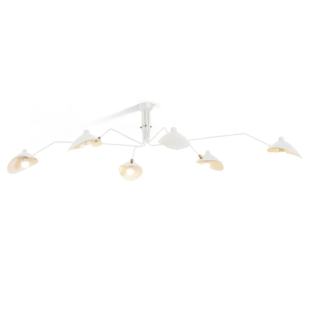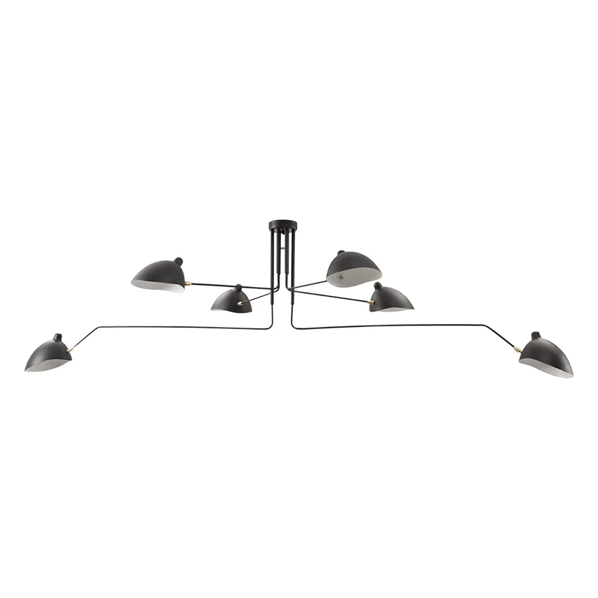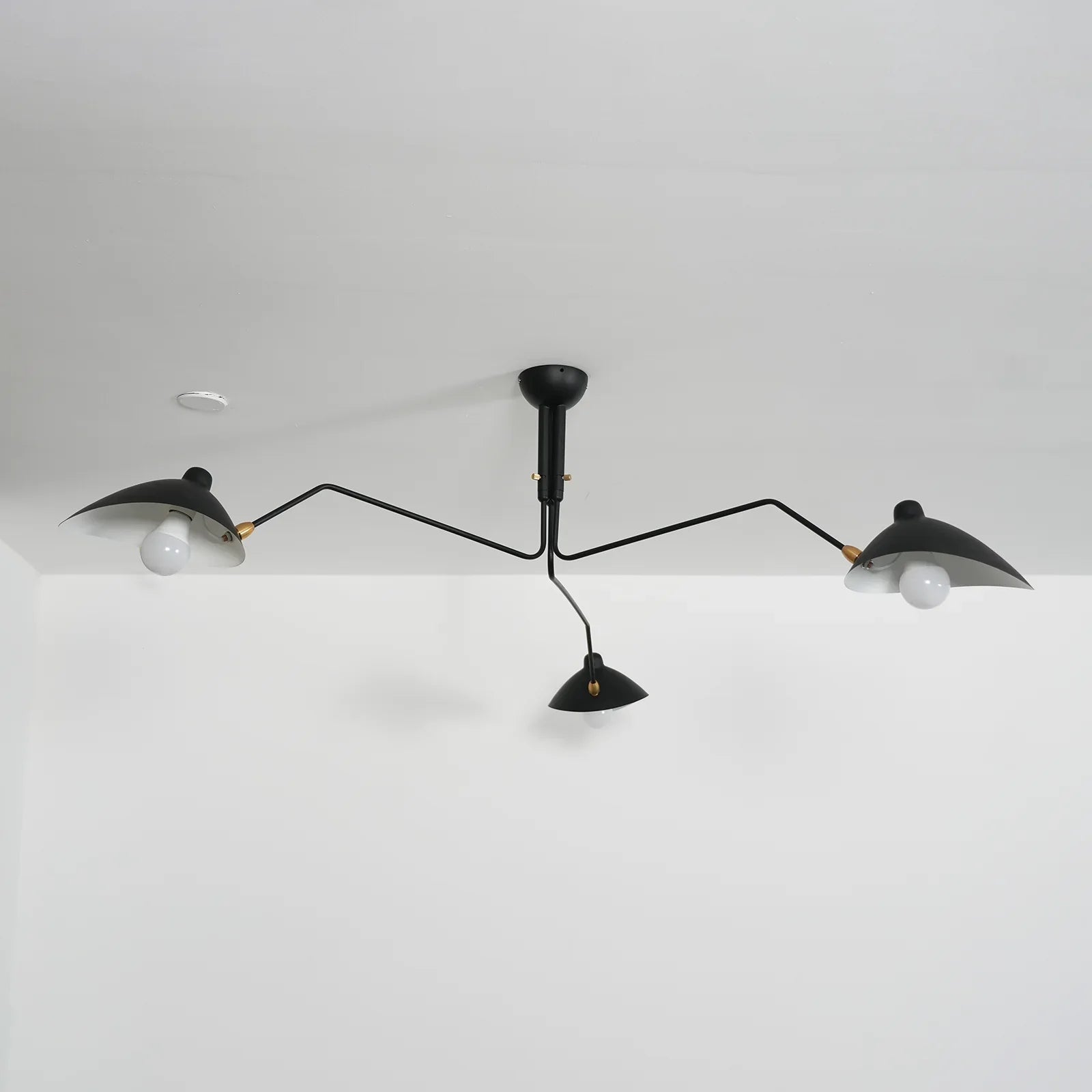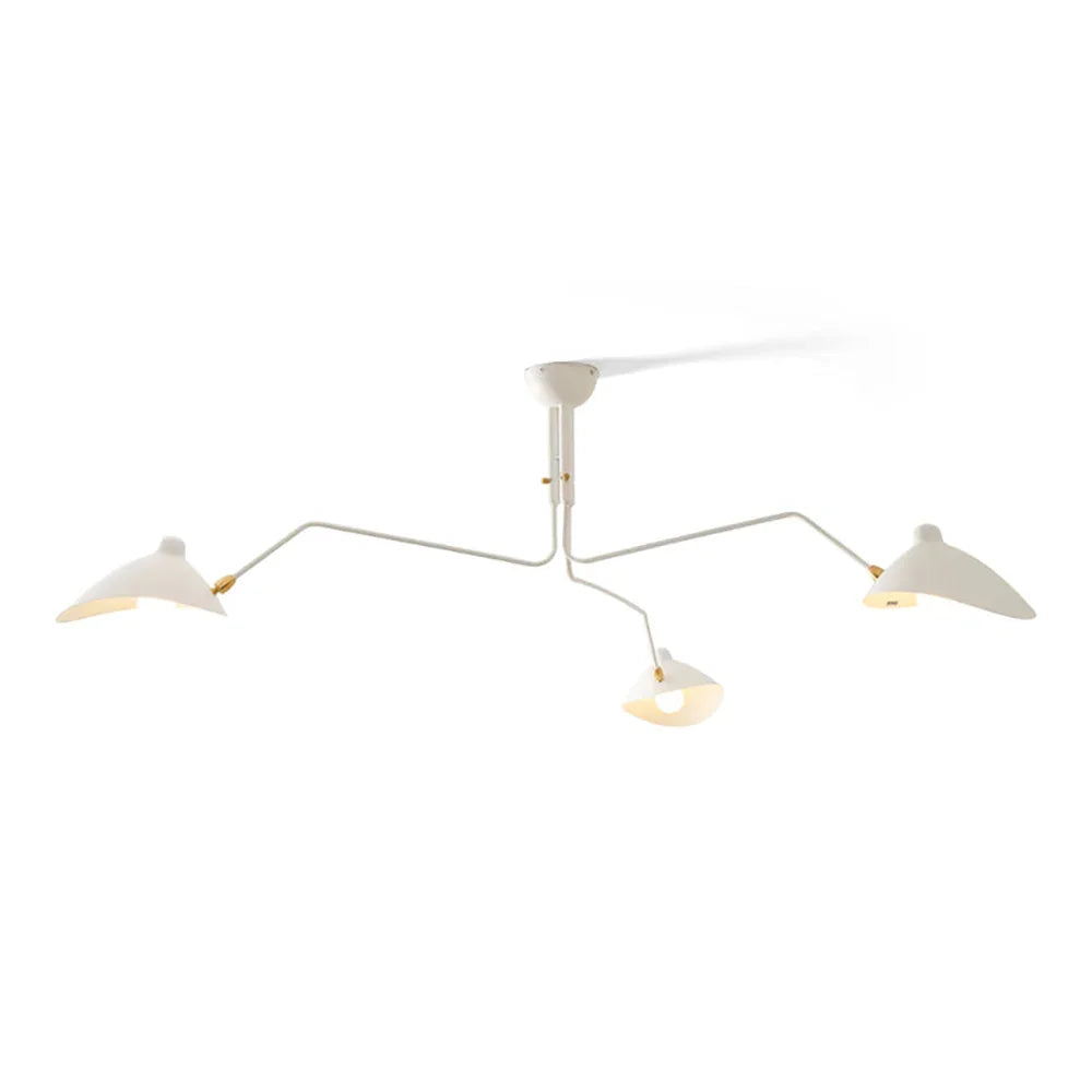 Serge Mouille Ceiling Light A, Command your lighting with this sculptural ceiling fixture that merges form and function seamlessly. Three articulated arms with pivoting shades rotate on a 360° pole, giving you precision control over illumination angles and coverage. Whether you're setting the mood in a living room, brightening a dining space, or powering a productive workspace, this fixture adapts to your needs. Its iconic mid-century modern design elevates any room while its intelligent engineering ensures light reaches exactly where you want it—style and substance in perfect balance.