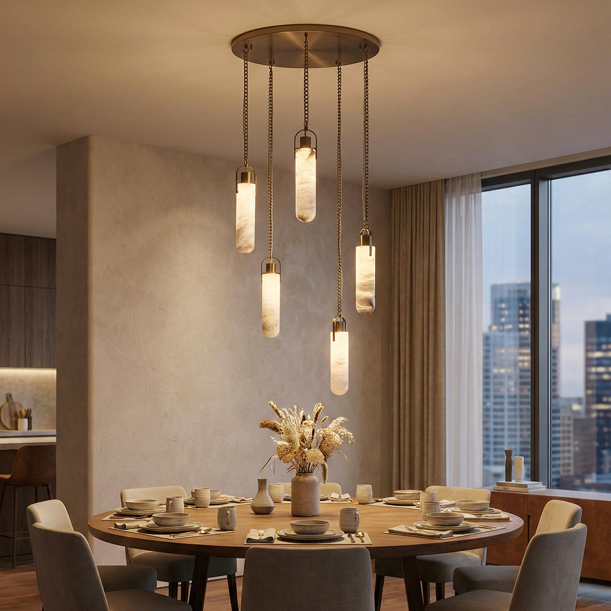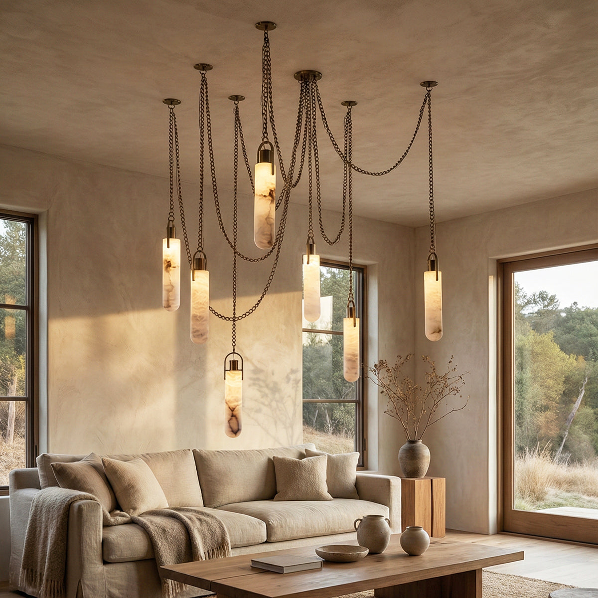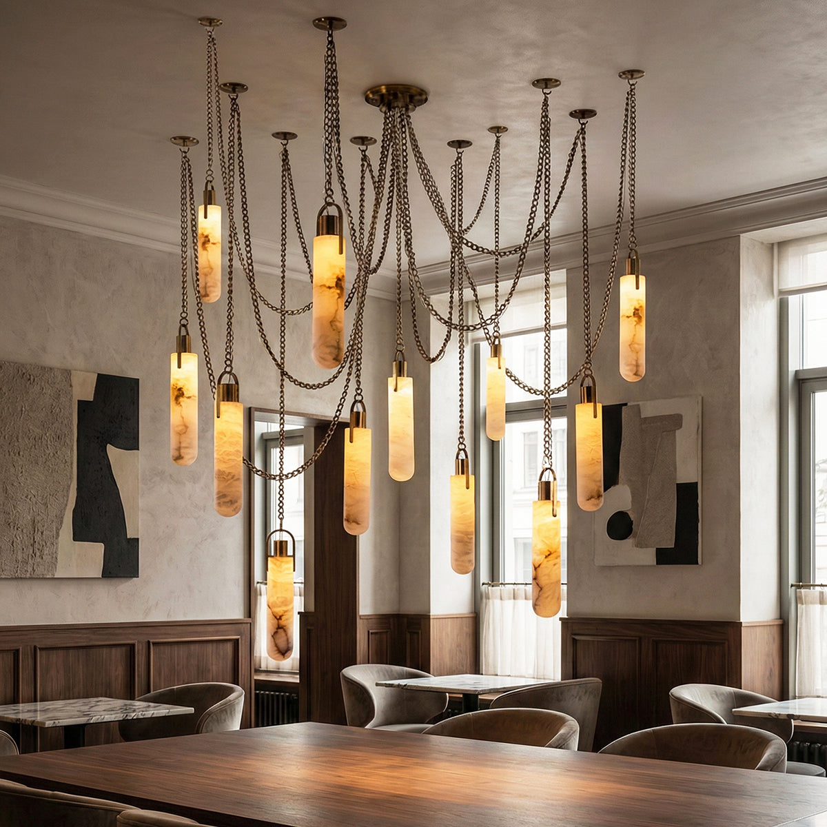 The texture of the light shining through the real marble is something that glass can never replicate. It provides a very soft, diffused light that makes the environment feel very high-end.