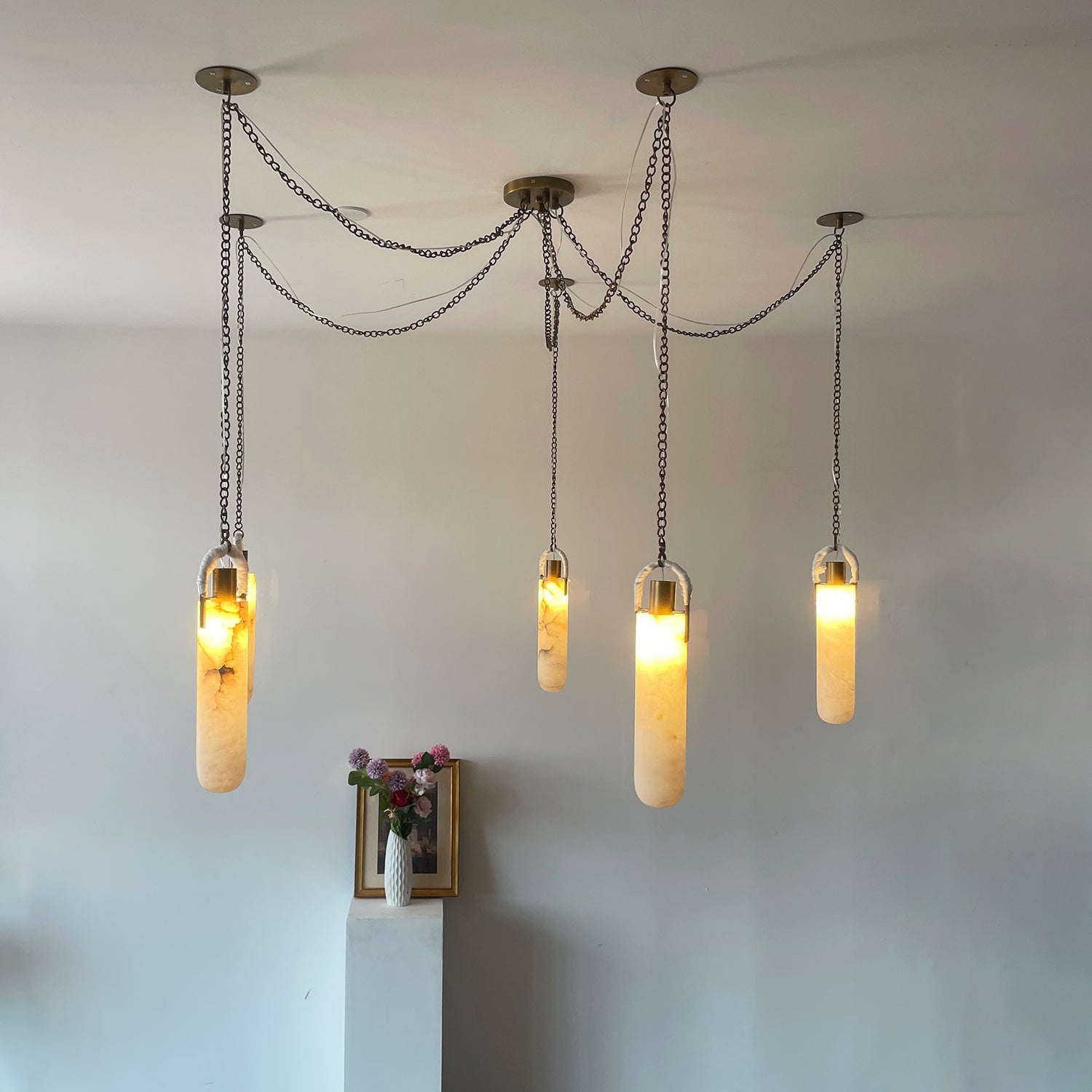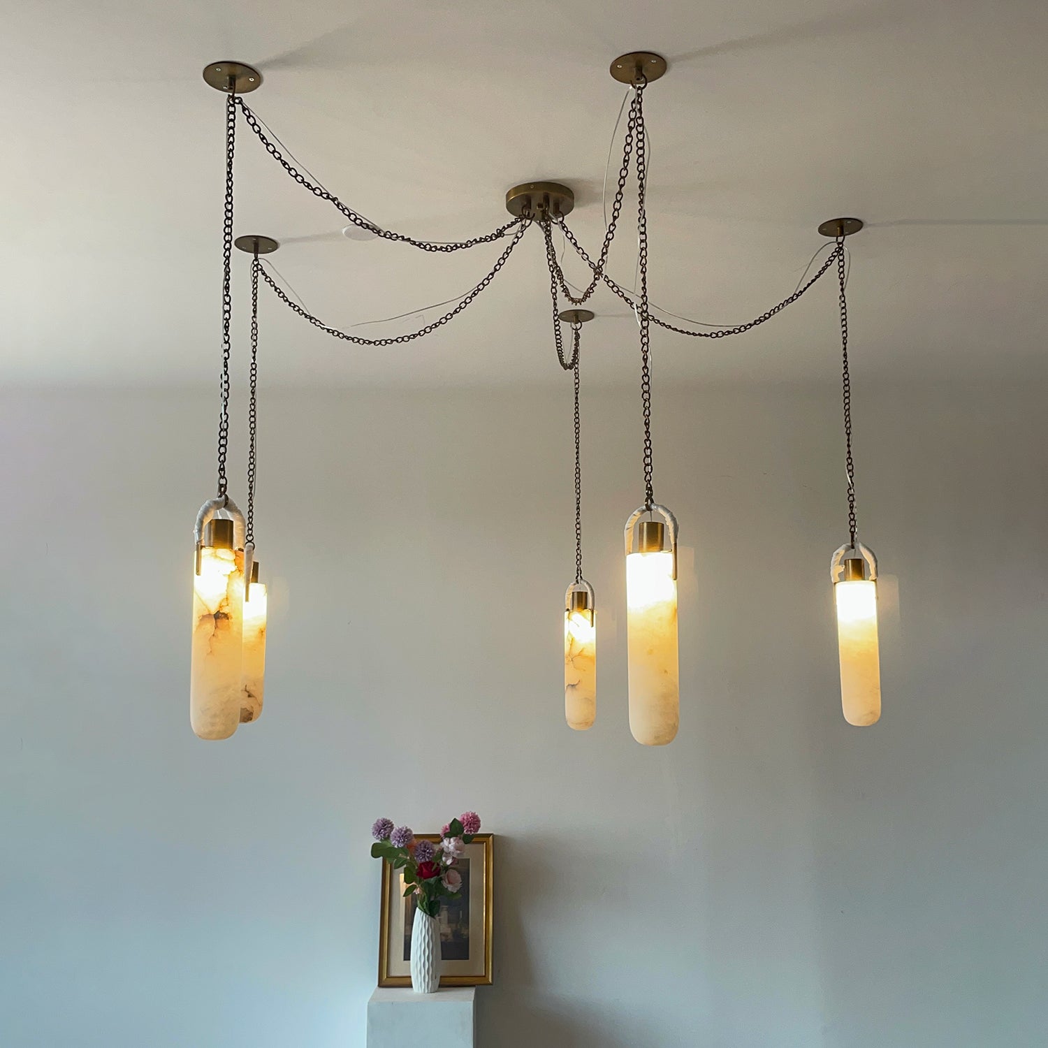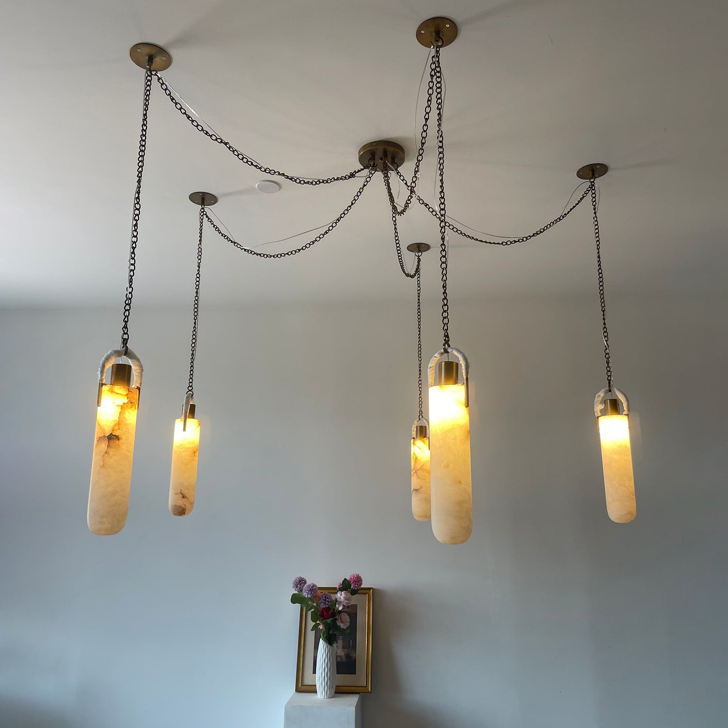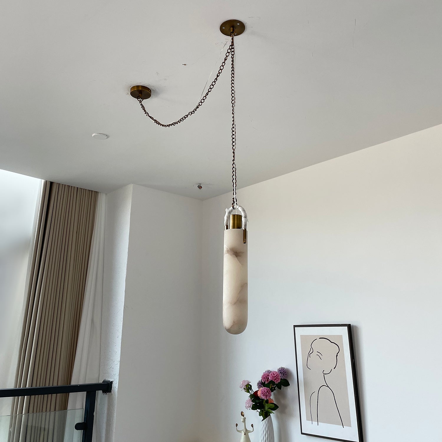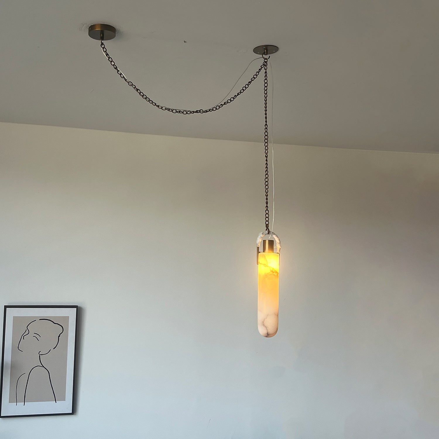 I was initially hesitant to buy such an expensive lamp online, but this marble pendant light exceeded all my expectations. The natural marble texture is beautiful – no two pieces are exactly alike, which gives it a high-end, custom feel. The lamp body is heavy and solidly built. When lit, the warm light it emits creates a warm and comfortable atmosphere in my living room. If you're still hesitant, just buy it.