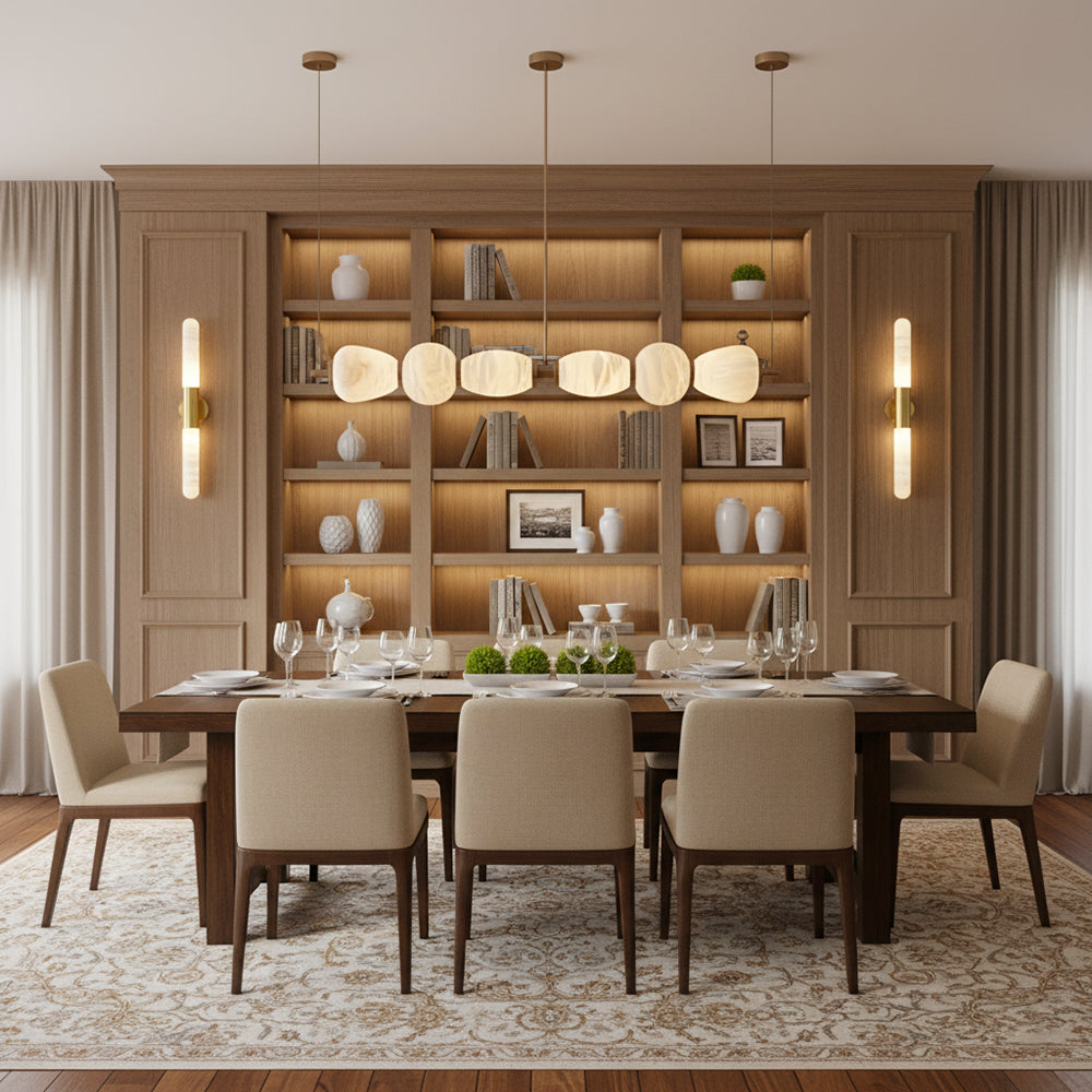 Inspired by river stones smoothed by flowing water, each alabaster piece possesses a unique texture, imbuing it with natural elegance. The translucent stone diffuses harsh light, replacing it with a gentle, moonlit glow, creating an incredibly soothing atmosphere.