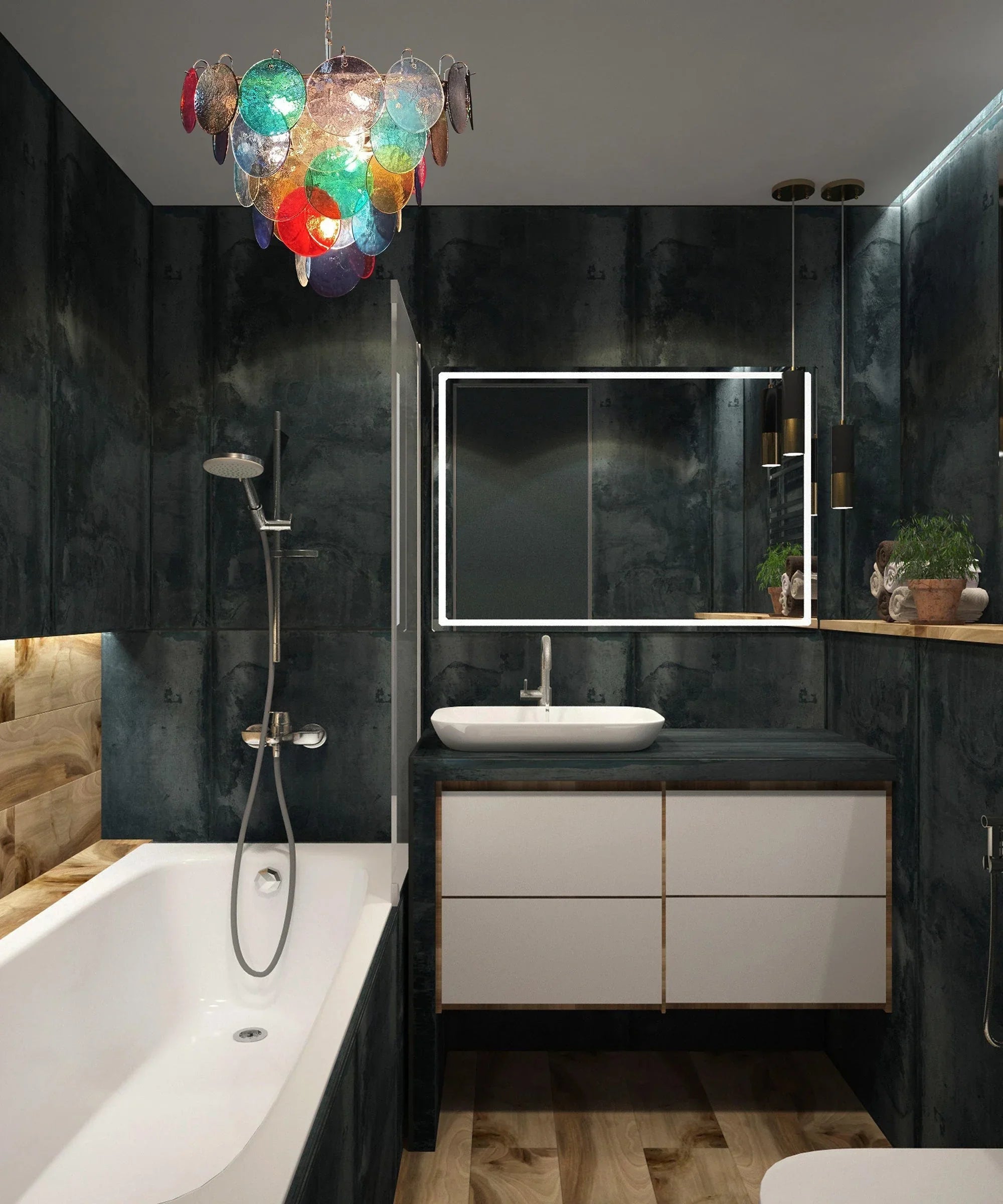 • Finishes: Multicolored glass