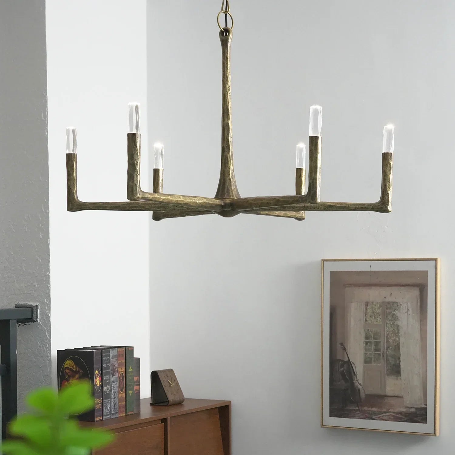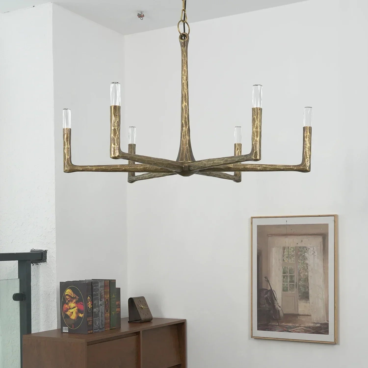 The Hammered Cylindrical Lamp Arm Chandelier is an artistic masterpiece that balances strength and elegance, designed for homes seeking to infuse their spaces with both modern flair and vintage soul. Available in a variety of sizes, it's perfect for any space, from compact dining rooms to spacious living rooms, creating a stylish and harmonious visual focal point.