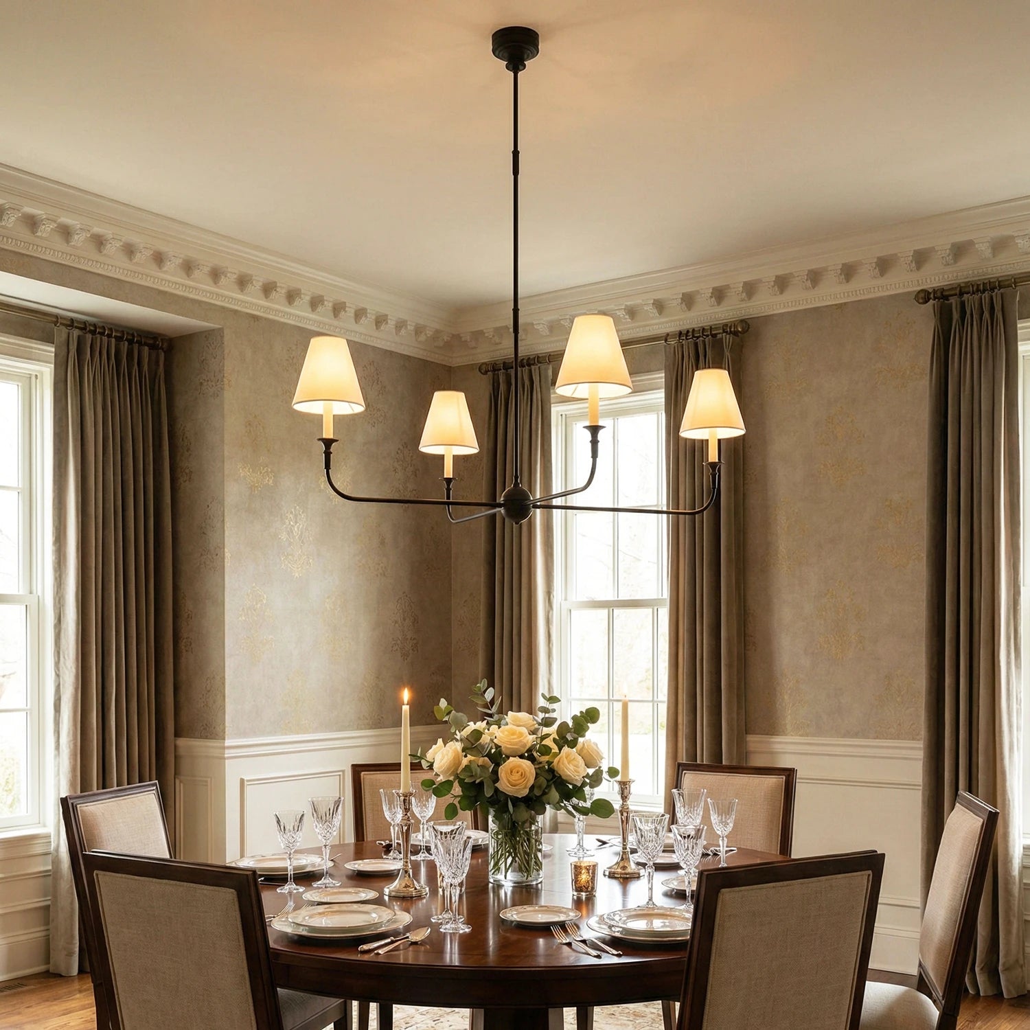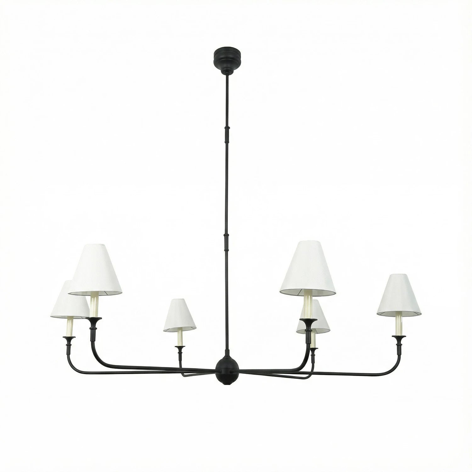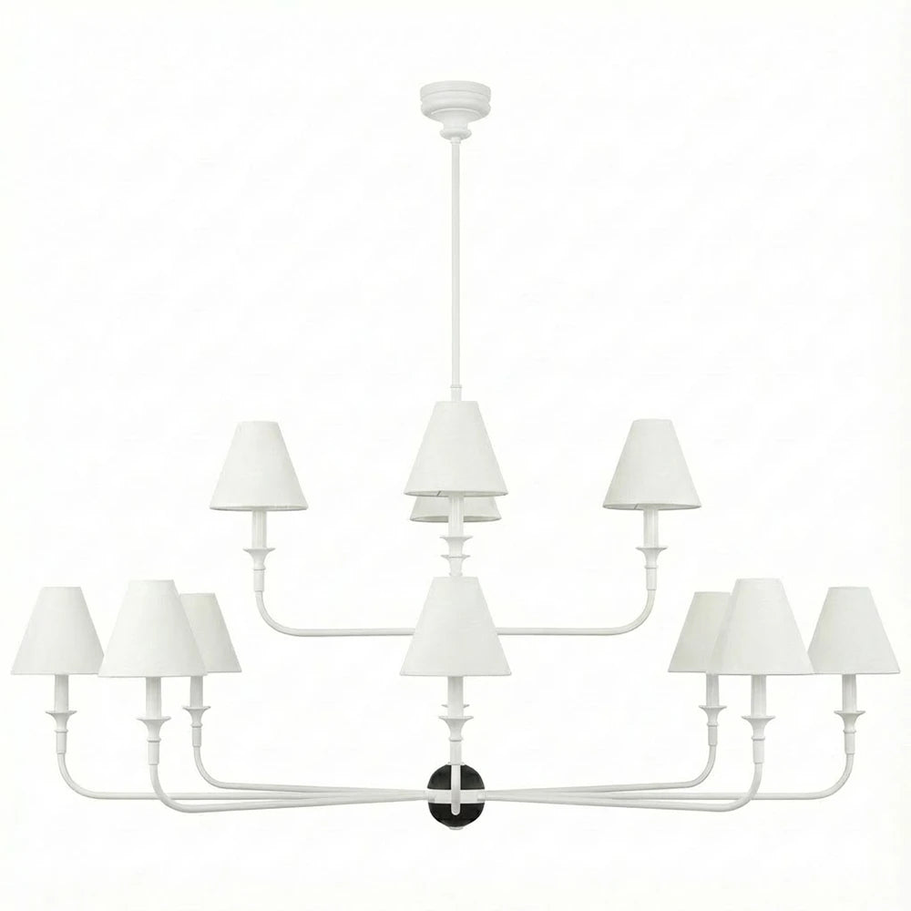 The Linear Multi-Arm Cone Fabric Chandelier infuses your home environment with timeless elegance and a sophisticated ambiance. With its multi-arm, radial design, it effortlessly serves as a visual centerpiece in dining rooms, living rooms, or commercial spaces. Whether paired with modern French or New American interiors, it demonstrates exceptional decorative appeal and functionality.
