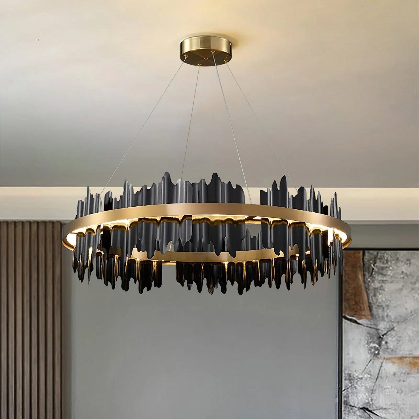 Elevate your home's aesthetic with the Midnight Shadow Chandelier. This exquisite piece showcases a sophisticated design inspired by the enigmatic and captivating shadows of midnight, complete with a luxurious finish. With meticulous attention to detail and premium materials, this chandelier is a masterpiece of craftsmanship. Install it in your entryway, living room, or dining room for a touch of refinement and grace. The adjustable height feature allows for a perfect fit in any space, while the LED bulbs emit bright and warm light while also being eco-friendly.