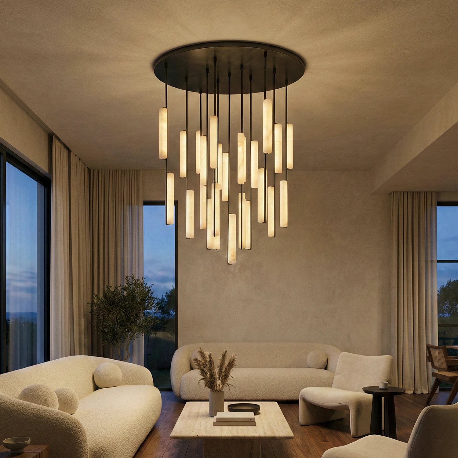 The texture of the light shining through the real marble is something that glass can never replicate. It provides a very soft, diffused light that makes the environment feel very high-end.