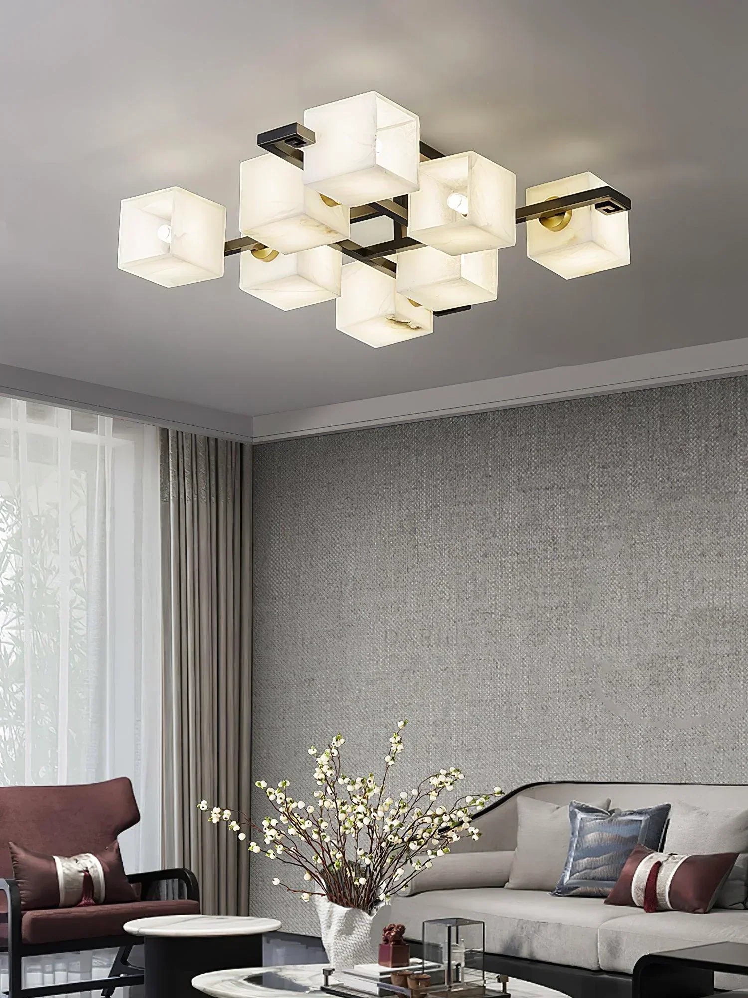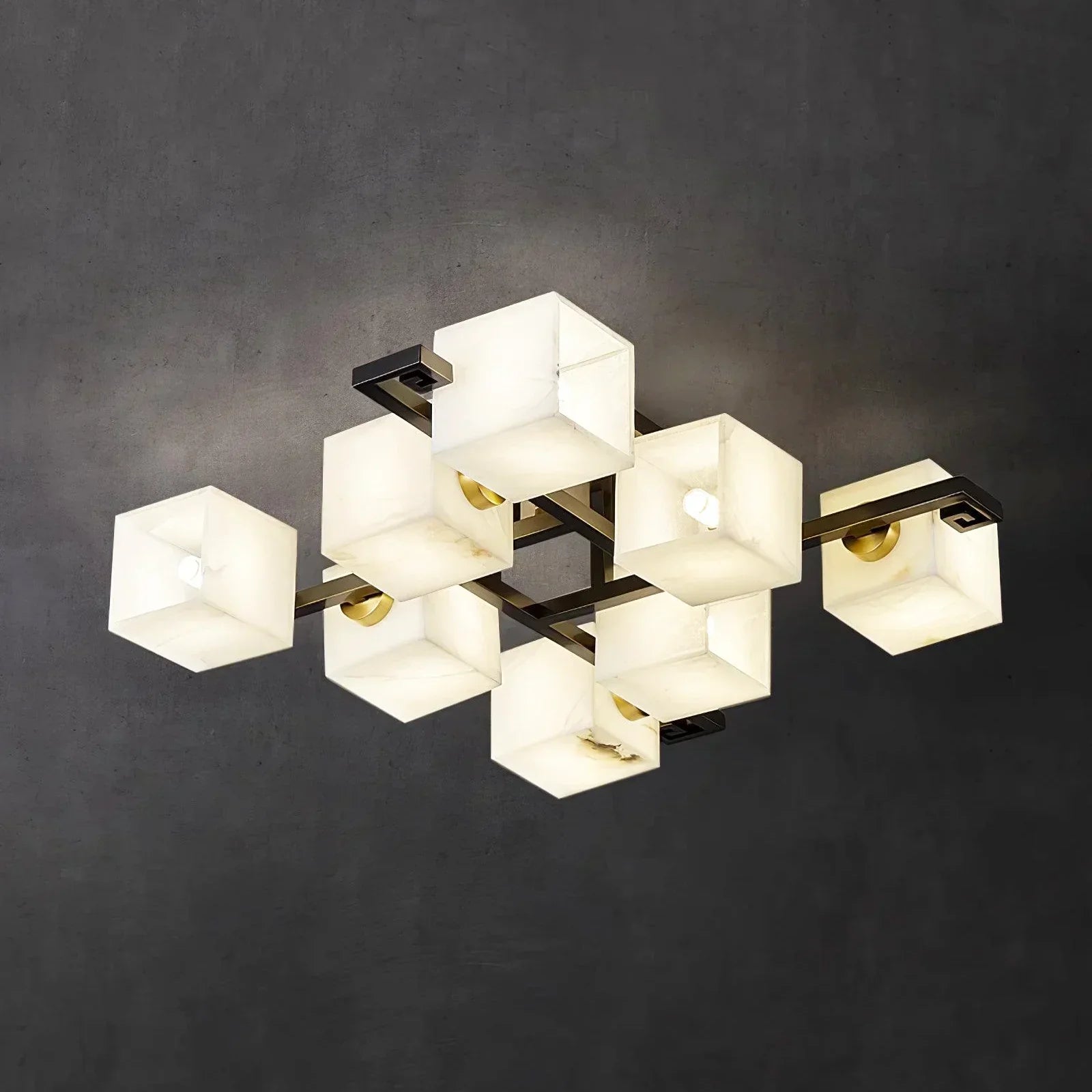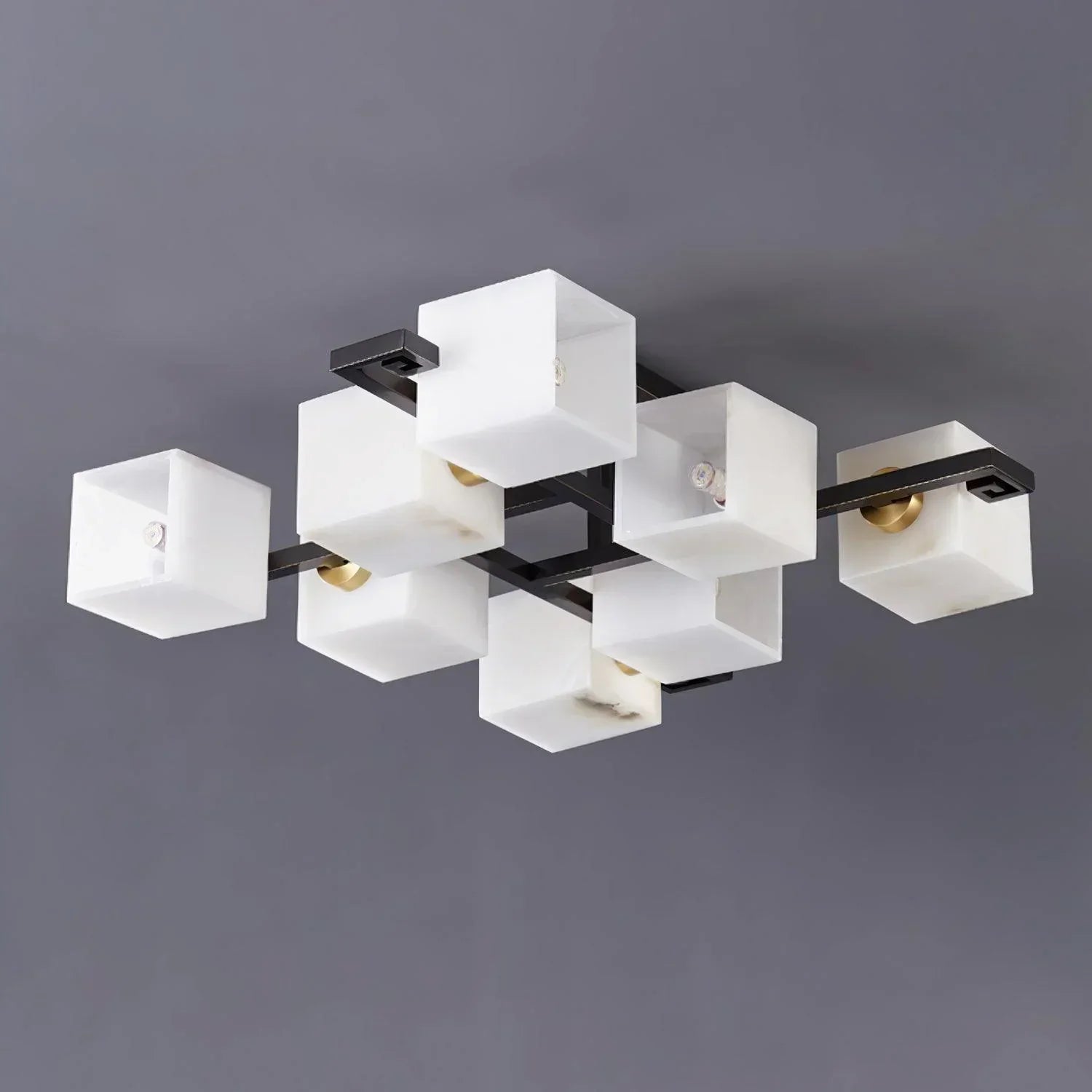 Transform your ceiling into a modern masterpiece with our Alabaster Cubist Ceiling Lamp. Each unique alabaster stone cube is carefully selected for a serene, ethereal glow. Its sleek metal frame and versatile design make it perfect for any space. Elevate your home with this captivating lighting solution.