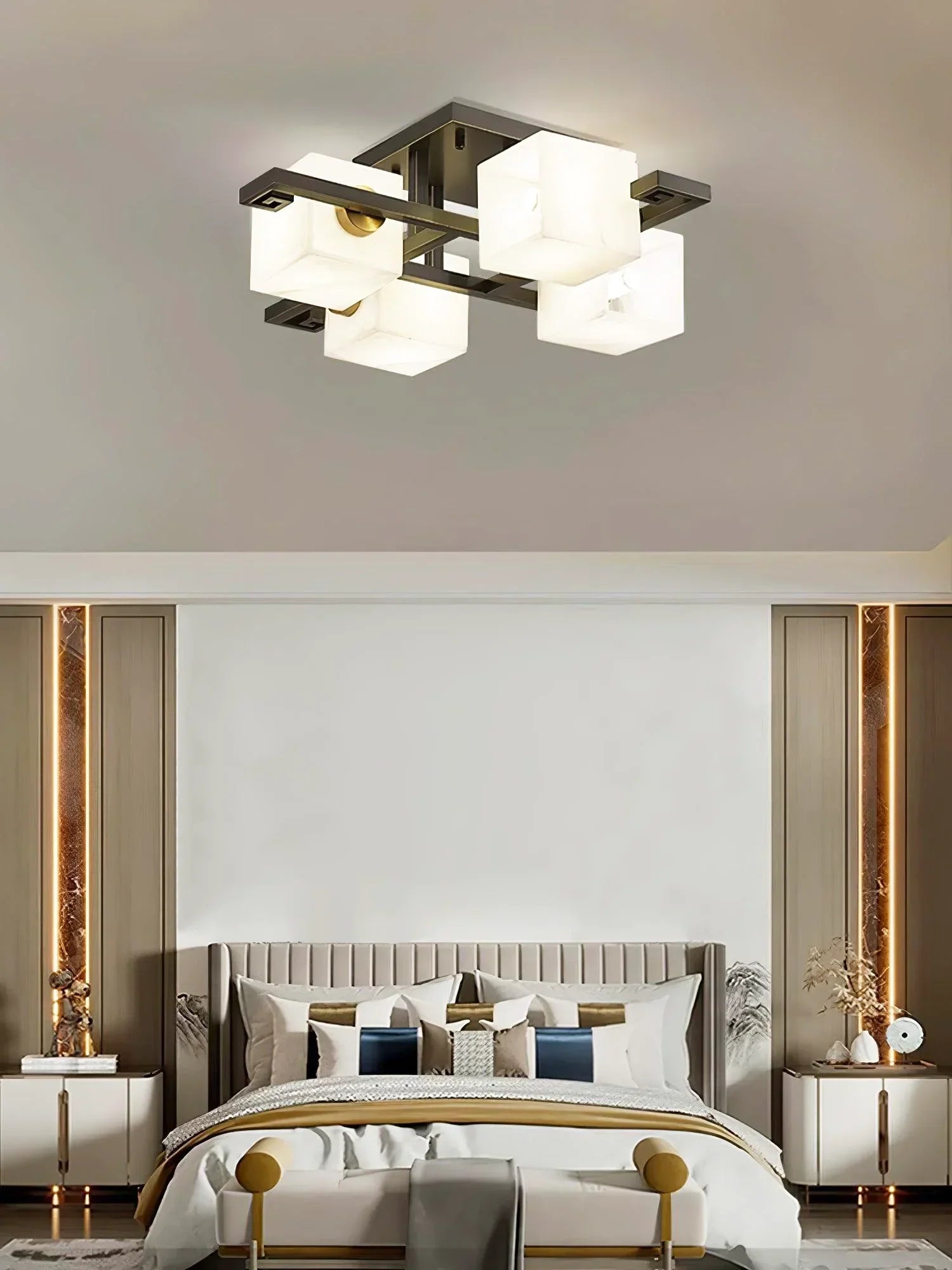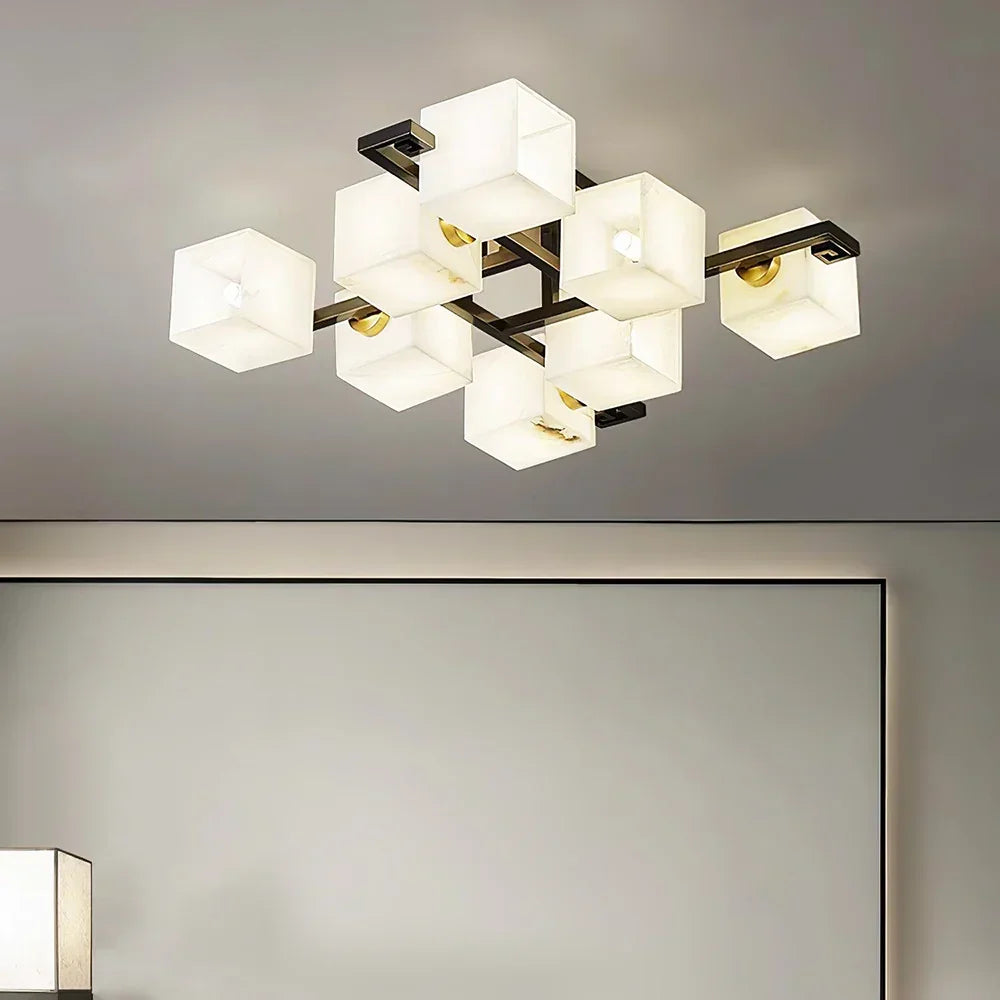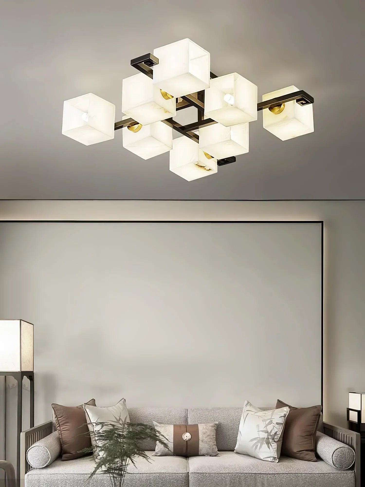 Transform your ceiling into a modern masterpiece with our Alabaster Cubist Ceiling Lamp. Each unique alabaster stone cube is carefully selected for a serene, ethereal glow. Its sleek metal frame and versatile design make it perfect for any space. Elevate your home with this captivating lighting solution.