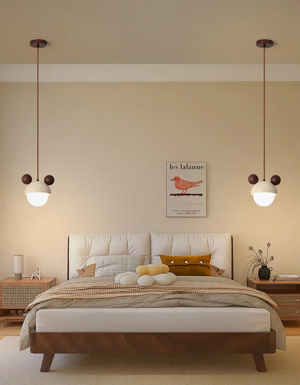 Elevate your interior design with the Domiere Travertine Pendant Lamp! Combining timeless elegance with a warm, playful glow, this statement piece features travertine fixtures and natural wood accents. Create a sense of wonder in any space with its soft and inviting light.