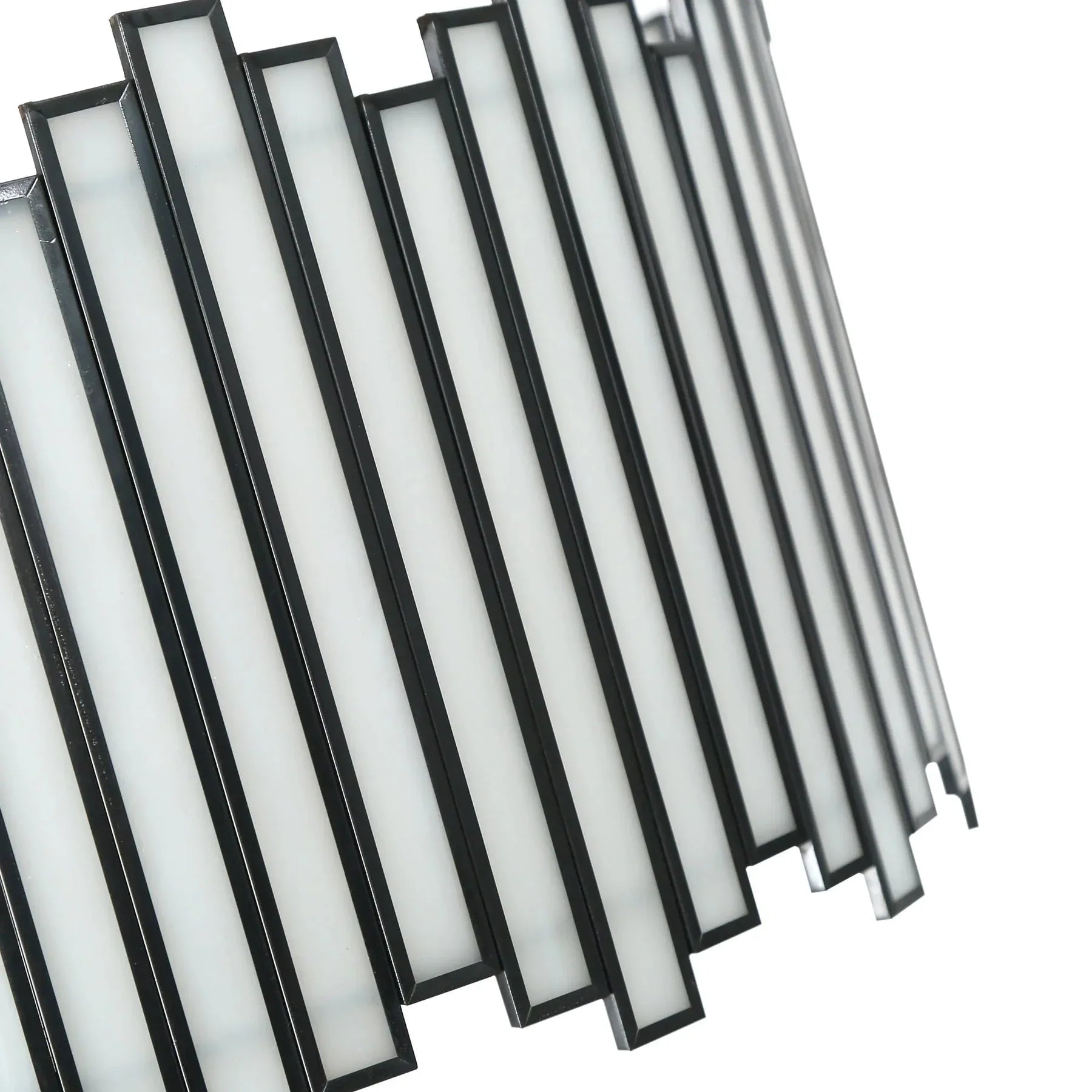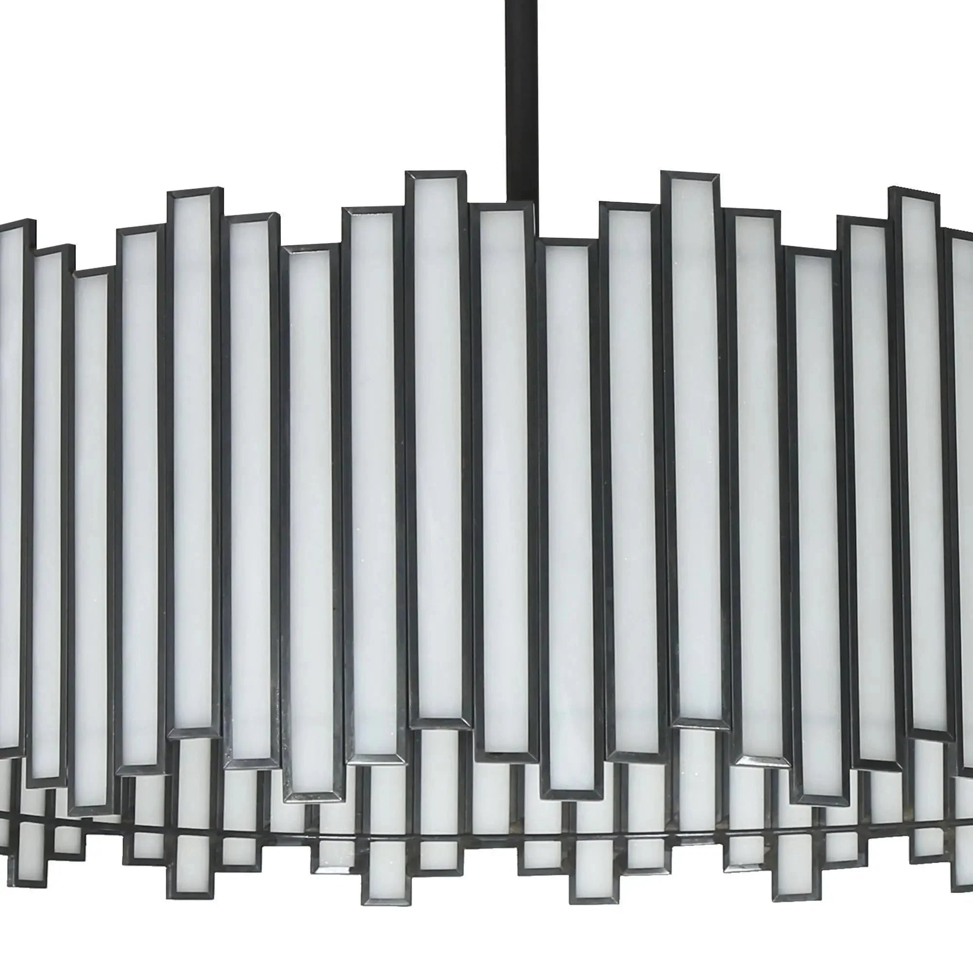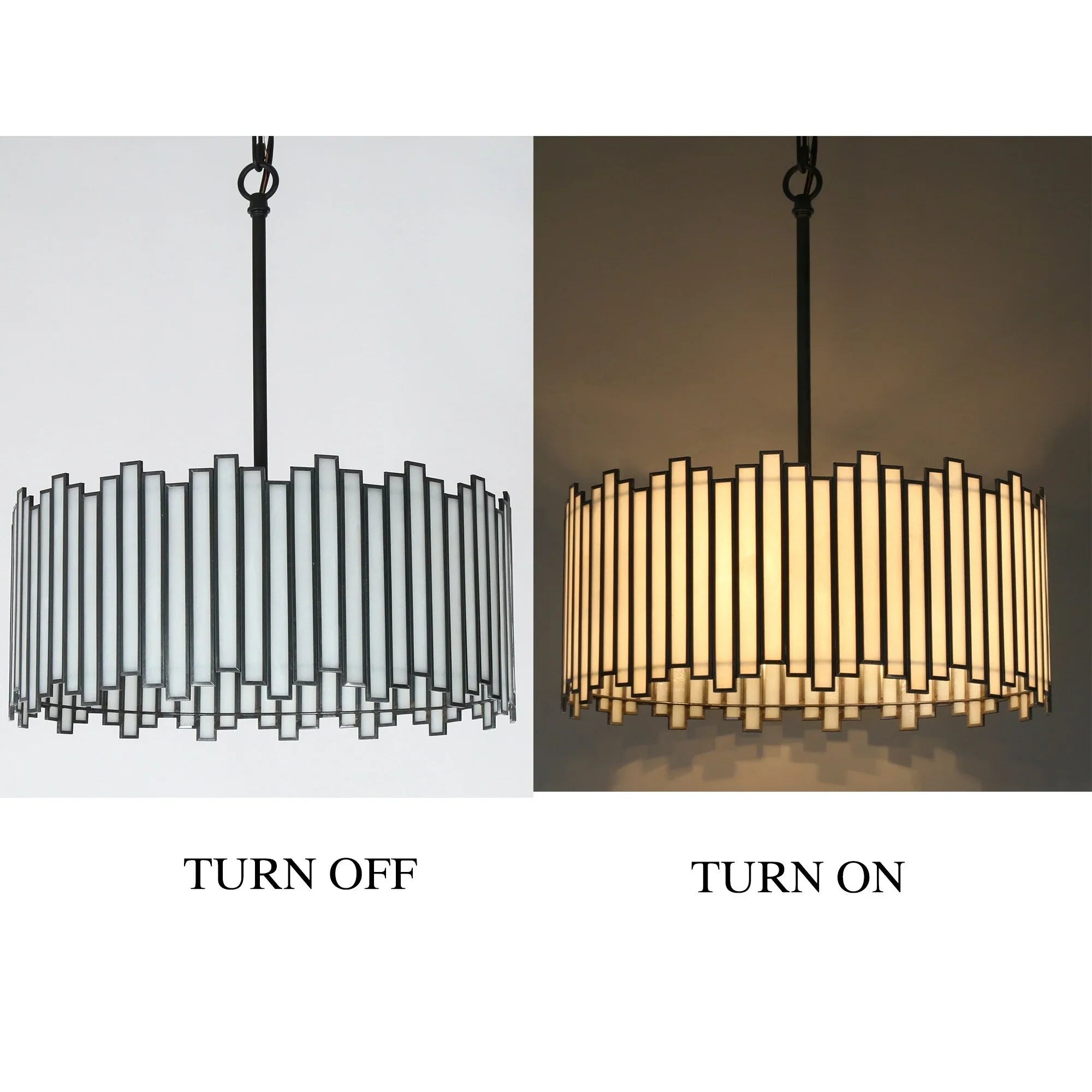Blending modern glam style and elegant aesthetic, this black chandelier features  glass which is irregularly arranged for a chic design. The delicate white glass pieces surrounded by the copper edge in a black finish add an understated stylish decoration to your space. The chandelier lighting is perfect for the dining room, kitchen island, hallway, and so on.