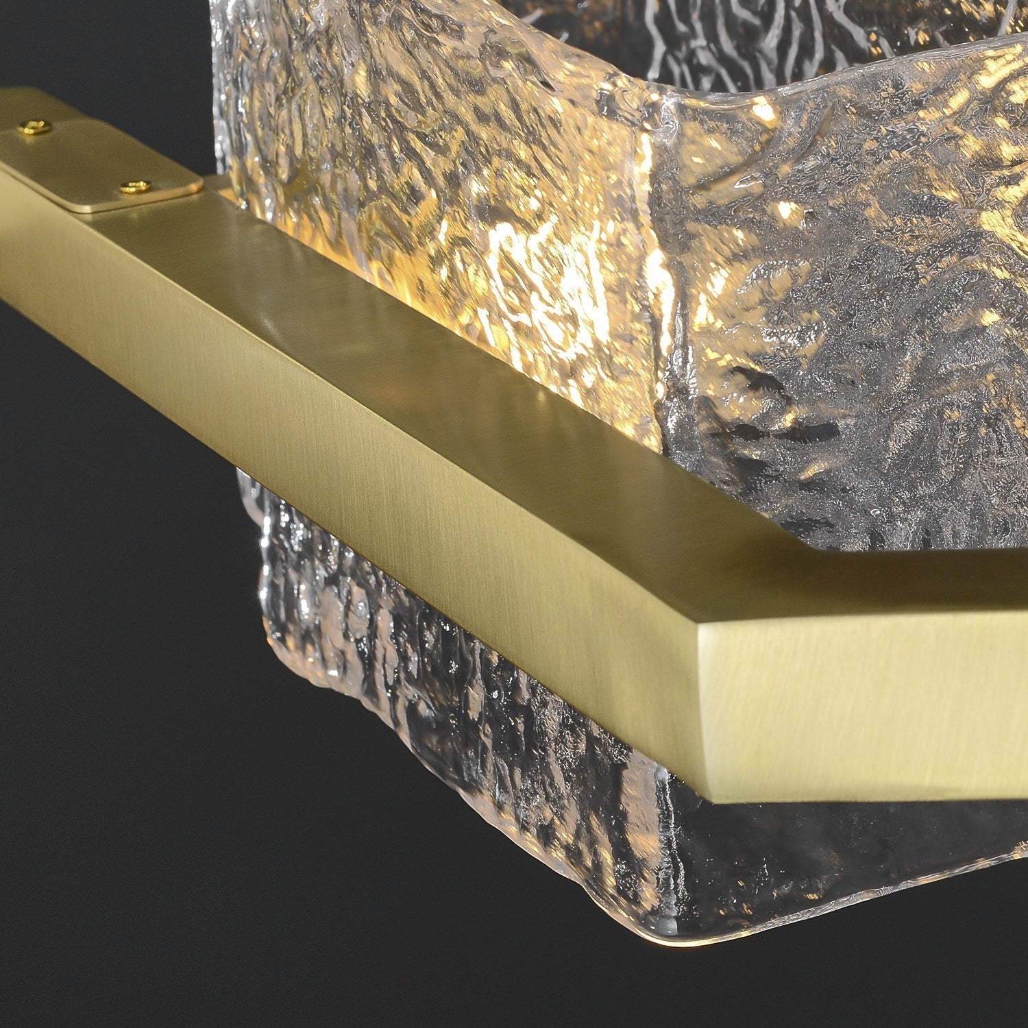 long water ripple glass chandelier light brings a chic, postmodern style to your breakfast nook, bedroom, or kitchen. It can bring you different visual experience through the special light reflected. The finish is made of high-quality brass and creative rectangular corrugated transparent geometric glass lampshade, creating a luxurious and fashionable feeling.
