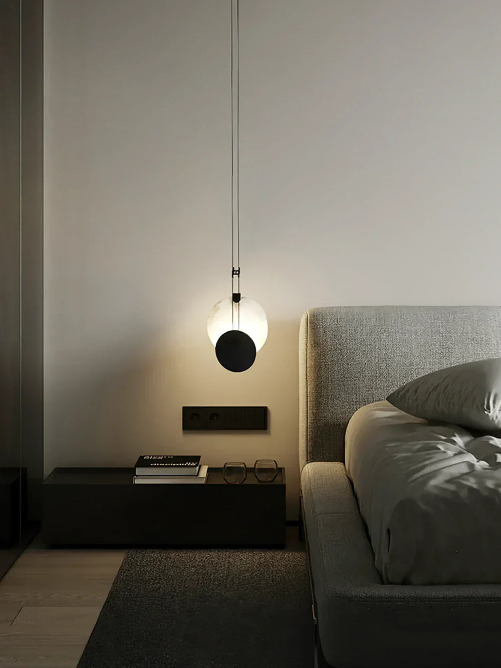 Modern Round Black Alabaster Pendant Lamp