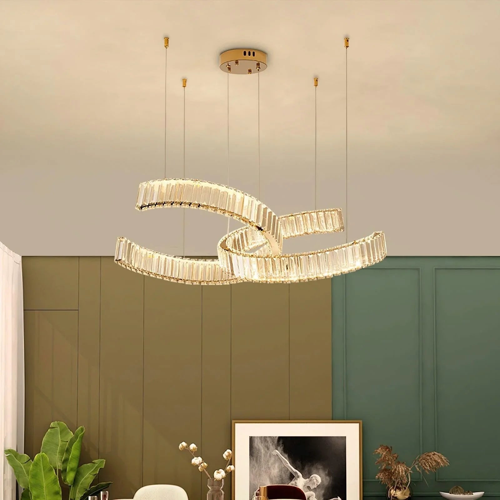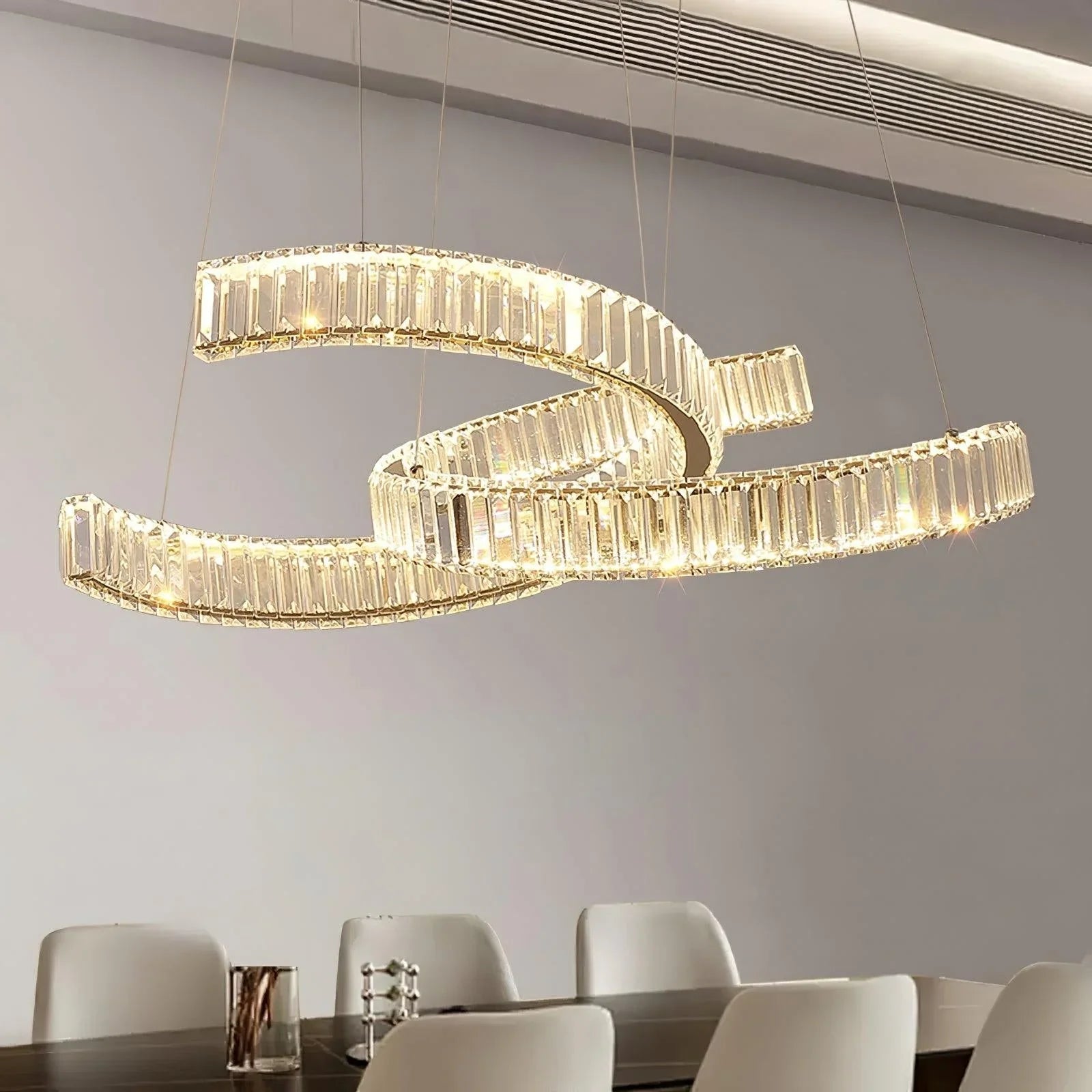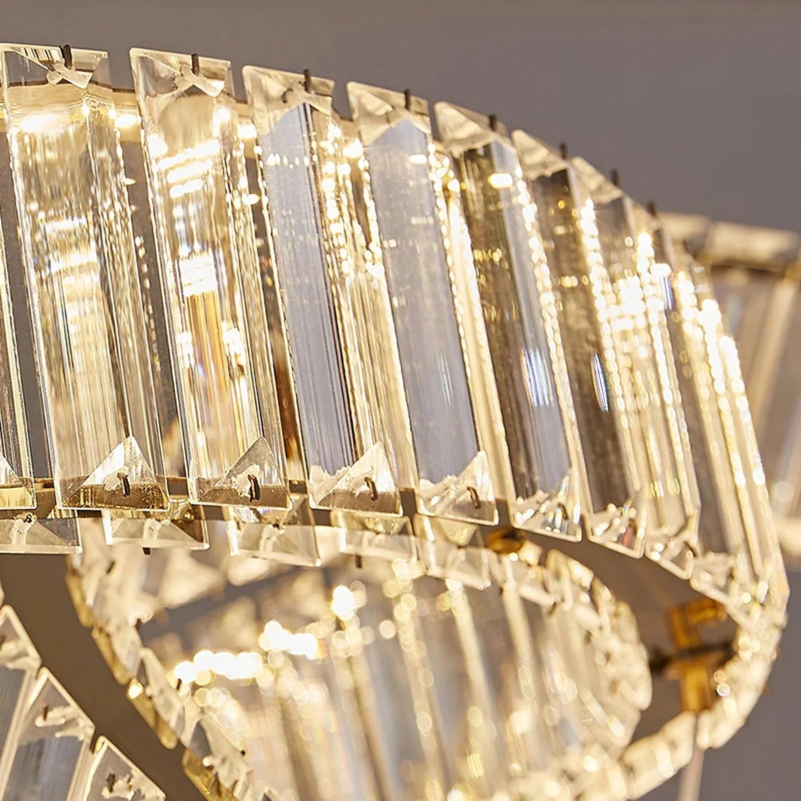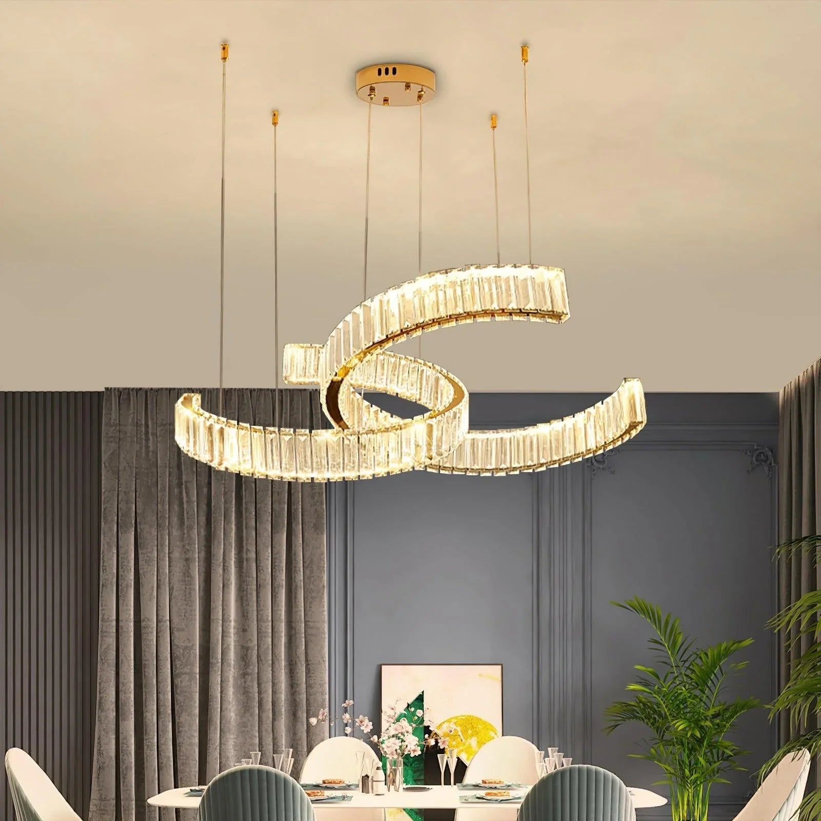 Sparkling from every angle, the Vortex collection is simply timeless. The chandelier is draped with authentic crystal and complimented with a gold frame. As your eye follows the frame it twists around the crystal in a unique fashion.