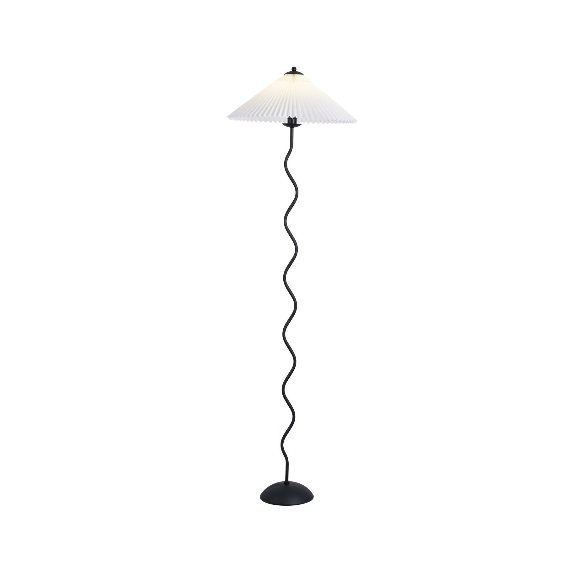 Light up your space with this Squiggle Floor Lamp with a curved stand. With a Nordic style pleated linen lampshade and wavy stand, it will decorate your room beautifully and cast a warm glow. This beautiful floor lamp can be placed in the bedroom, living room, or beside the corner of your desk. Squiggle Floor Lamp exudes a beautiful and minimal atmosphere with its draped pleats, curved stem, and polished iron base.