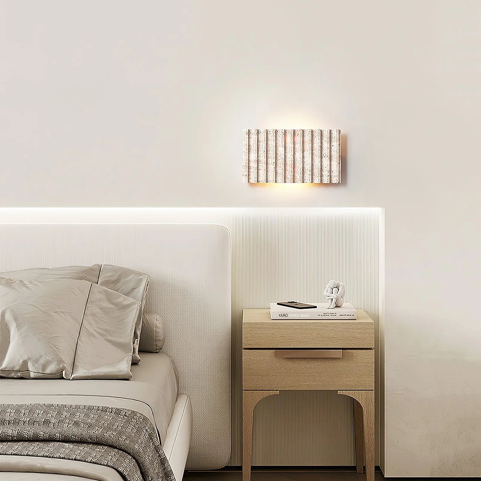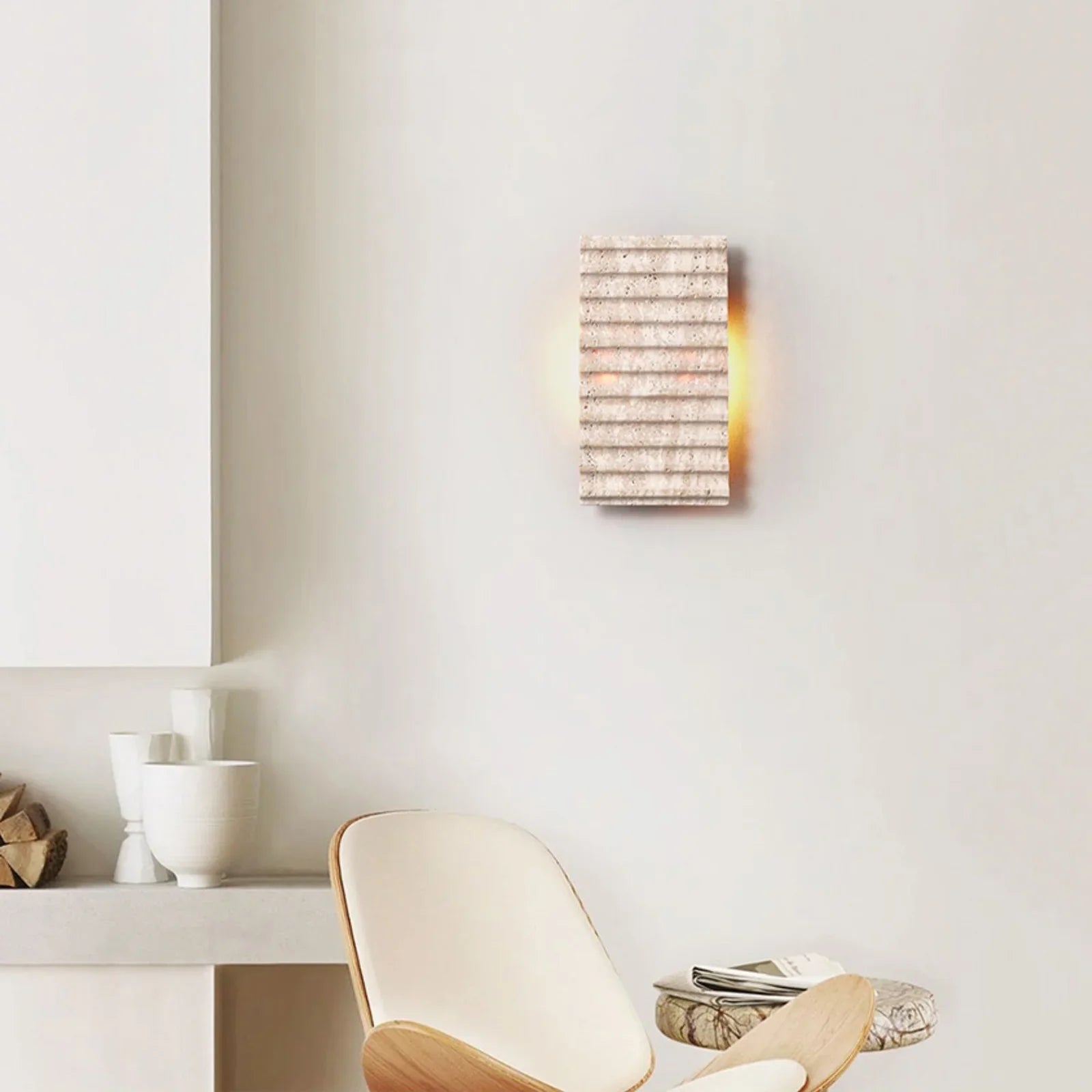 Elevate your interior with this stunning Rectangle Grille Travertine Wall Lamp that seamlessly blends natural stone craftsmanship with contemporary geometry. The grooved rectangular form captures and diffuses light beautifully, accentuating the stone's rich texture and subtle tonal shifts. An understated yet impactful choice for design-conscious homeowners who appreciate the marriage of raw materials and refined minimalism.
