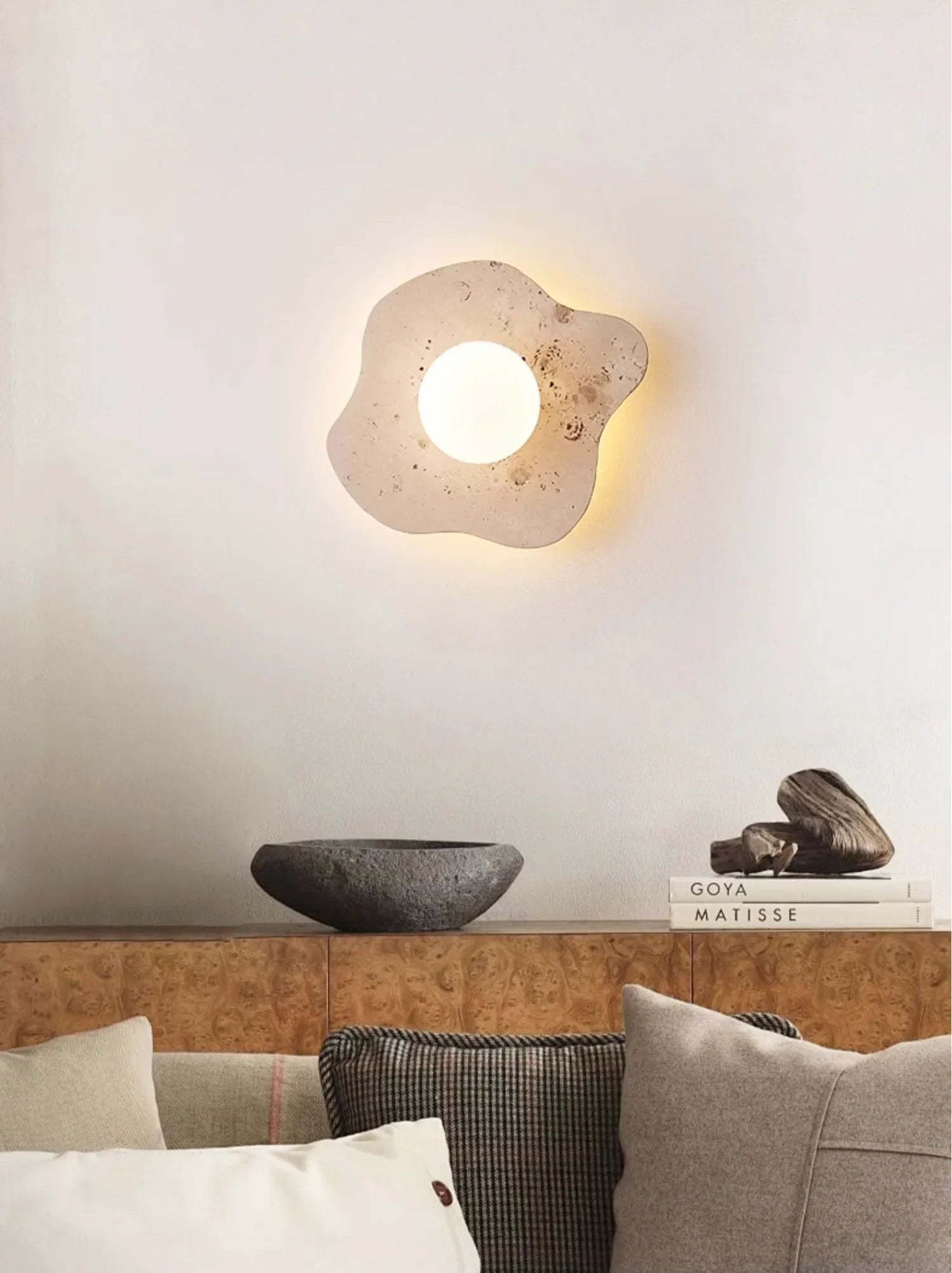 The Travertine Blob Glass Wall Lamp merges organic beauty with contemporary sophistication. Its sculptural travertine body—a natural stone prized for its warm, textured appeal—pairs seamlessly with a sleek glass shade to create a striking focal point. Perfect for modern interiors that value both aesthetic depth and refined craftsmanship, this wall lamp delivers ambient lighting with undeniable character. Whether illuminating an entryway, bedroom, or living space, it transforms any room into a gallery of curated style.