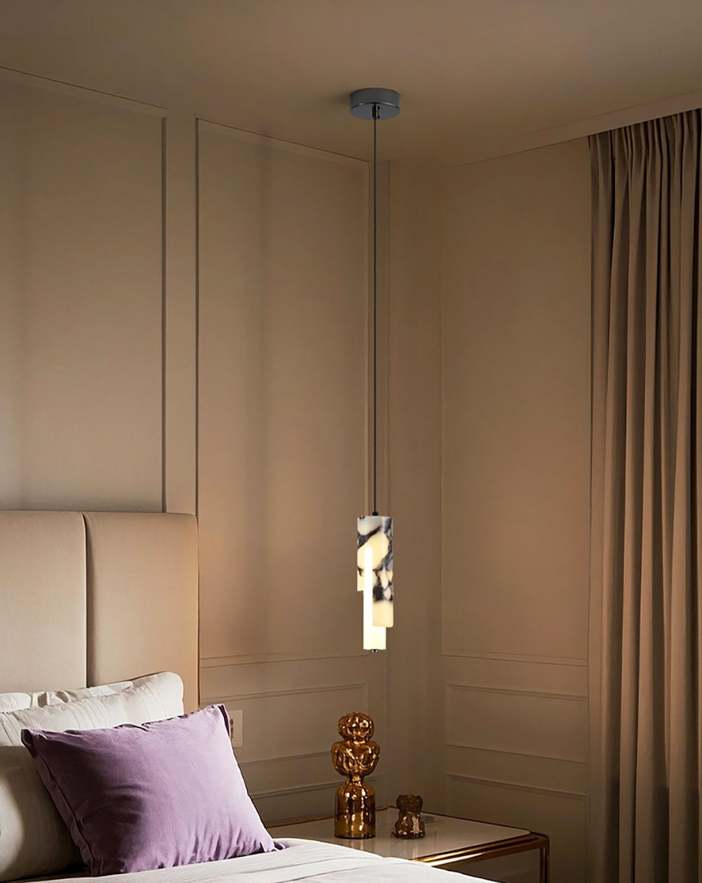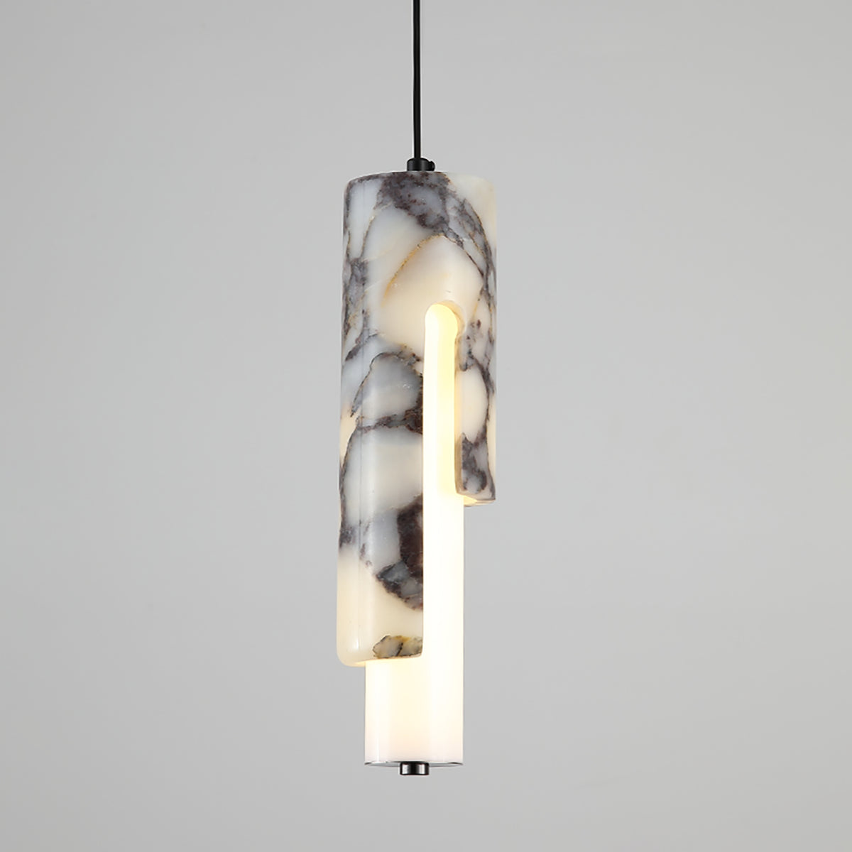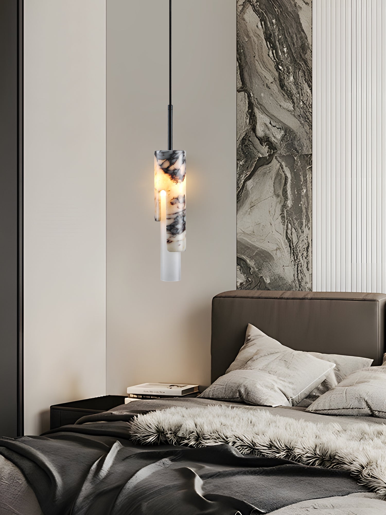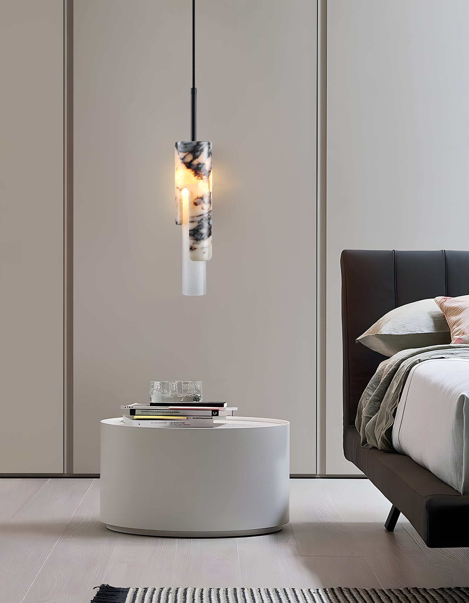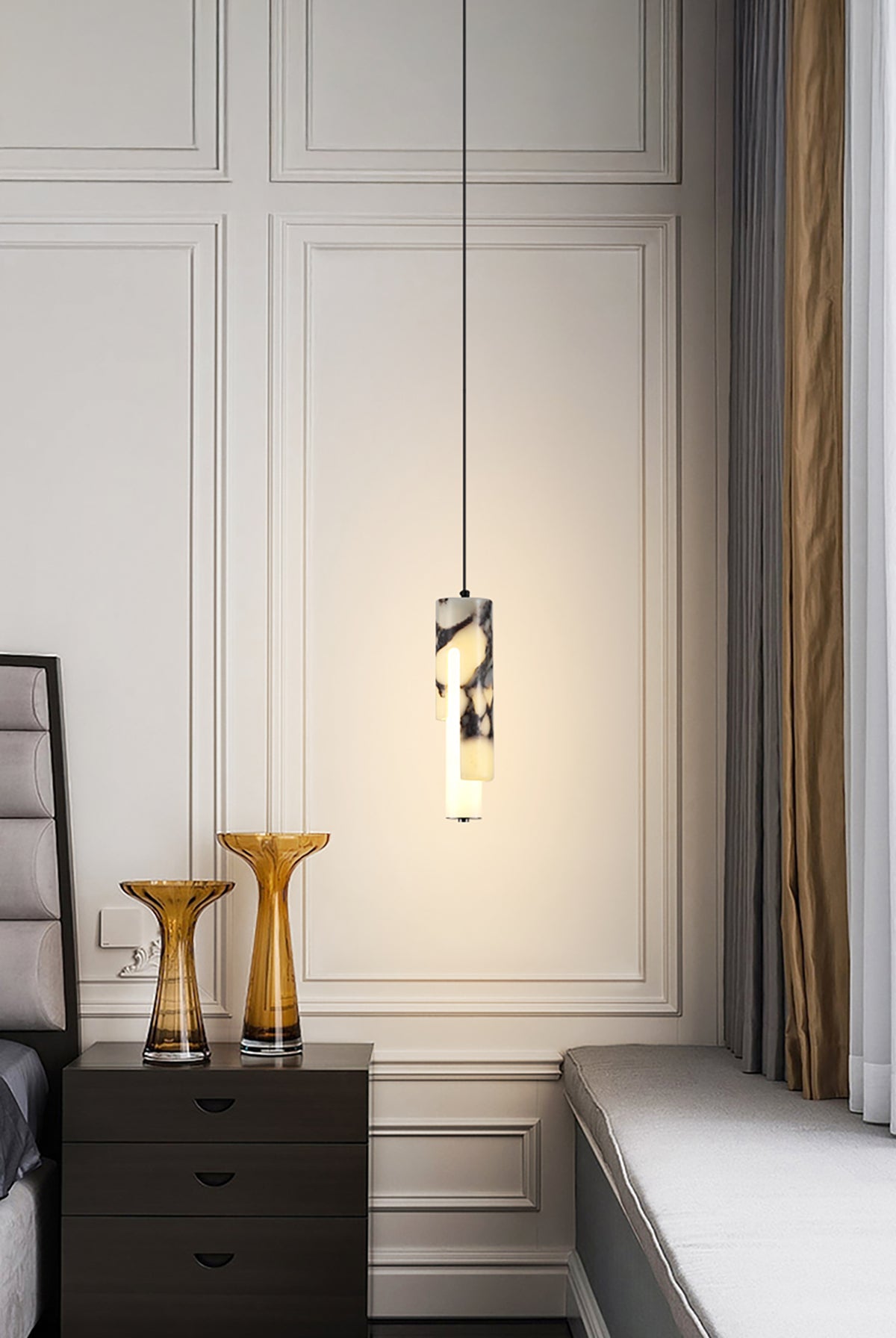 Elevate your interior with the Cylindrical Bulgari Marble Pendant Lamp, where natural stone craftsmanship meets modern functionality. Each fixture showcases authentic grey and black marble veining that glows beautifully when lit, delivering warm, sophisticated ambiance that mass-produced alternatives simply cannot match. Whether suspended above a kitchen island, flanking a bedroom, or defining a dining space, this sculptural pendant transforms any room into a curated, high-end sanctuary that reflects your refined taste. Note: that the marble pattern varies from product to product, so the displayed image may be different.