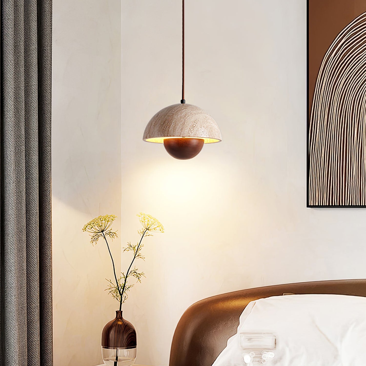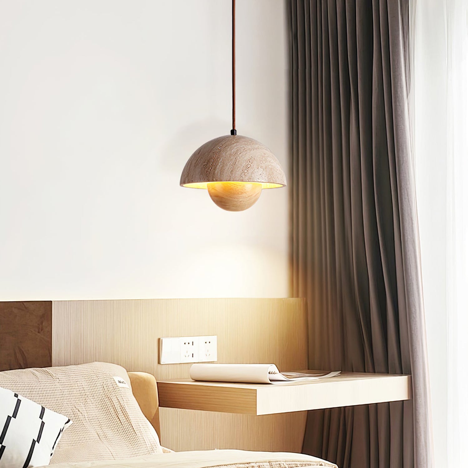 Inspired by the quiet moment before a flower opens, the Semicircular Bud Travertine Pendant Lamp merges natural materials with refined design. A travertine dome envelops a wooden core, creating layers that diffuse warm, inviting light—like dawn breaking through stone. This sculptural fixture transforms any space into a gallery of organic beauty, whether suspended above a dining table, reading nook, or minimalist sanctuary. Each piece celebrates the intersection of nature and craftsmanship, offering more than illumination: it's a meditation on growth and elegance that elevates your interior with understated sophistication.