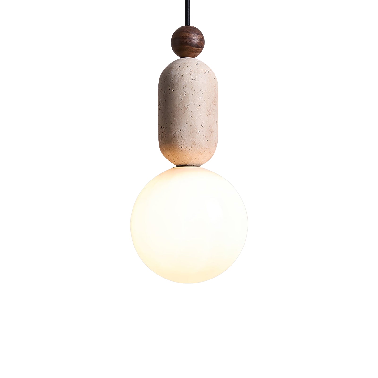 This Travertine Daniel Pendant Lamp merges organic elegance with contemporary style through its thoughtful material palette. The sculptural combination of warm wood, tactile travertine, and luminous glass creates visual interest while delivering sophisticated ambient lighting. Each element—from the smooth sphere to the textured cylinder—works together to craft a statement piece that elevates any room's design narrative. Perfect for those seeking a lighting fixture that doubles as functional art.