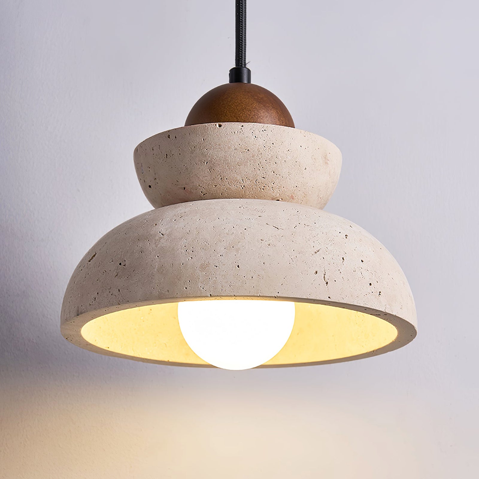 Elevate your interior with the Travertine Zenith Tier Pendant Lamp, a sculptural lighting statement that seamlessly blends natural materials with contemporary design. Its distinctive tiered silhouette showcases authentic travertine paired with warm wood accents, creating visual depth and organic elegance. Perfect for anchoring a dining space or adding sophisticated ambiance to your living area, this pendant delivers both architectural interest and inviting illumination. The natural stone's soft, neutral tones complement any décor while the warm glow transforms everyday moments into memorable gatherings.