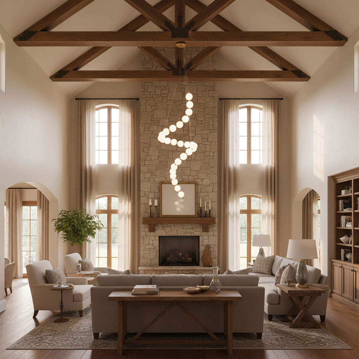 The unique shape creates a superior visual effect. Custom-lengthened wiring is available to suit high ceilings/staircase pendant lights (villas, duplexes, stairwells, or atriums). It is also a top choice for main or decorative lighting in dining rooms, kitchen islands, or modern living rooms.