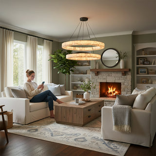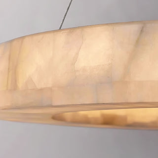 This Alabaster Rivage Round Chandelier perfectly showcases natural beauty with its minimalist design and captivating interplay of light and shadow. Its warm, natural glow elevates the ambiance of your living room or dining room. The recessed light source subtly illuminates the stone, highlighting its natural organic color and unique texture. It emits a warm, sun-like glow, delivering a high-quality lighting experience that creates unparalleled comfort and tranquility, effortlessly crafting an understated yet sophisticated style.
