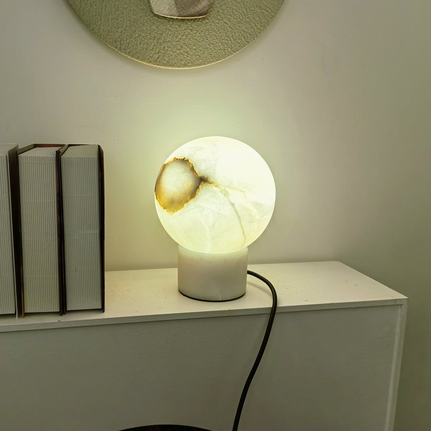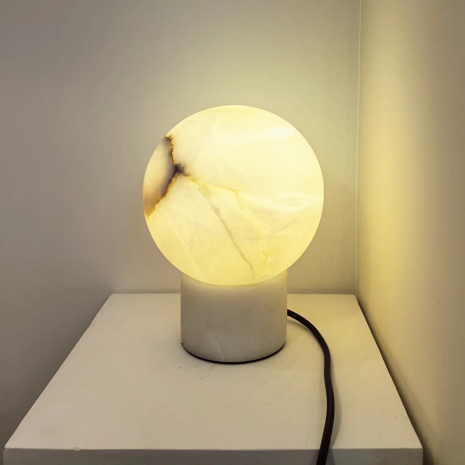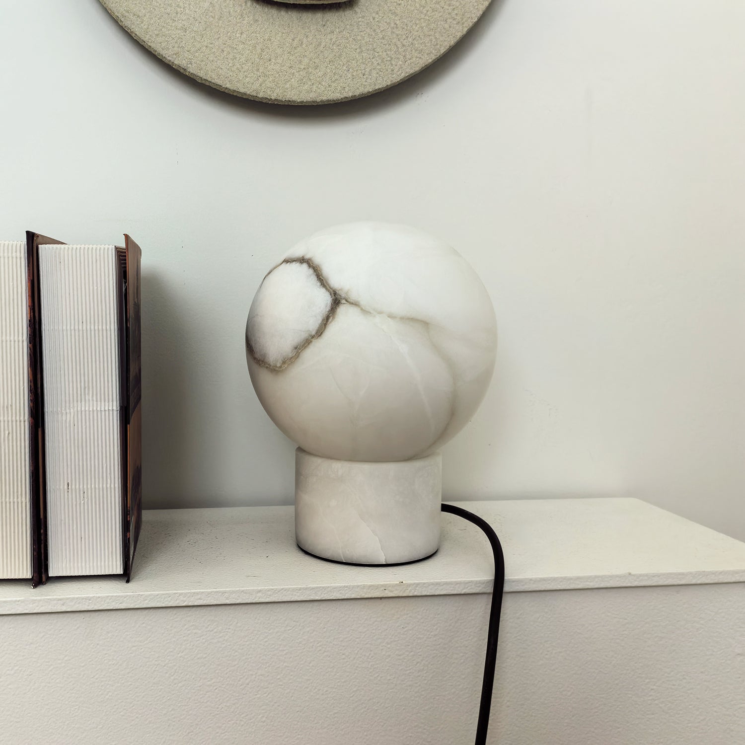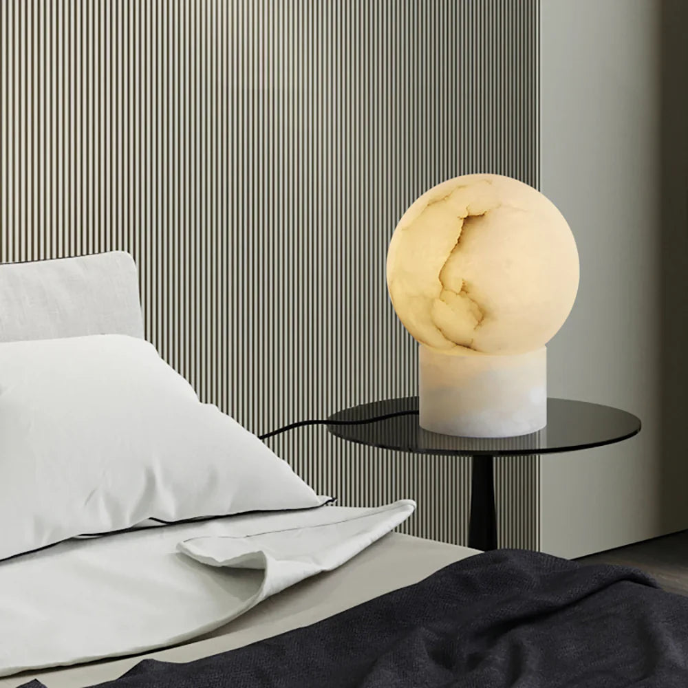 Experience the beauty and tranquility of planet Earth with our Alabaster Athena Ball Table Lamp. The delicate sphere atop the cylinder radiates a soothing light.