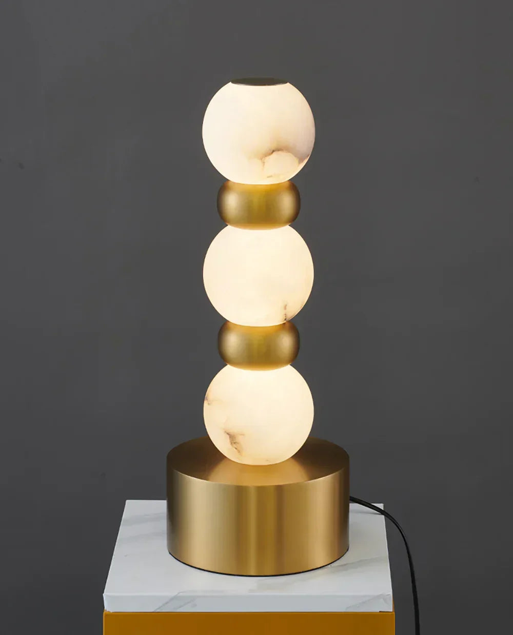 Introduce a touch of elegance to your modern decor with the Alabaster Pearl Xyx Table Lamp. This stunning lamp features white alabaster spheres on a gold stainless steel base, creating a sculptural and stylish design. Not only does it provide functional lighting, but it also serves as a beautiful decorative piece.
