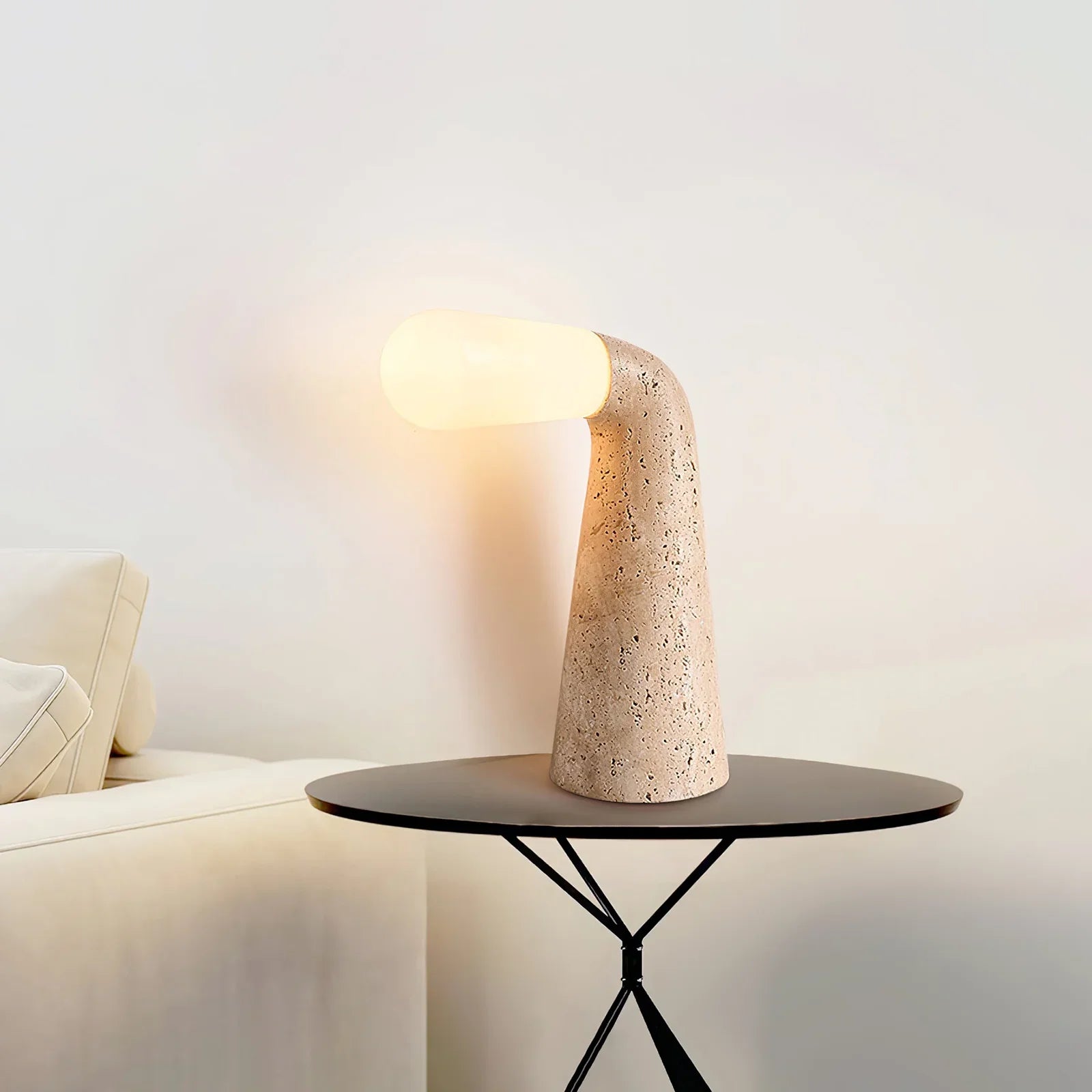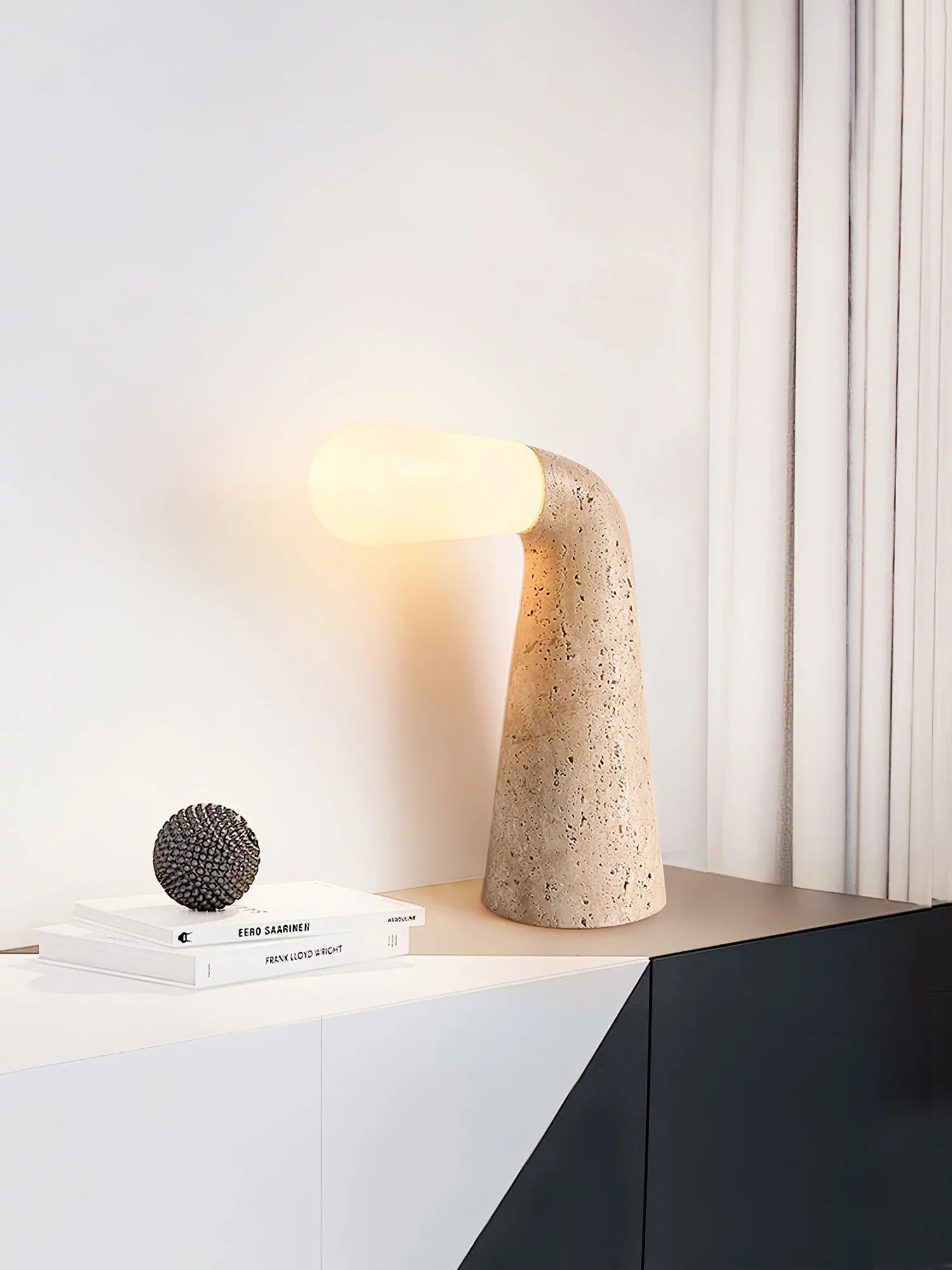 Sculptural and elemental, the Cone Nilo Travertine Table Lamp is a minimalist statement piece that merges natural stone with contemporary form. Hand-carved from a single block of travertine, its smooth, tapered silhouette arcs gently forward—both organic and architectural. The integrated socket supports a frosted bulb, casting soft directional light perfect for desks, shelves, or bedside tables. This is more than functional lighting; it's a celebration of material honesty and understated elegance that transforms any space into a gallery of refined taste.