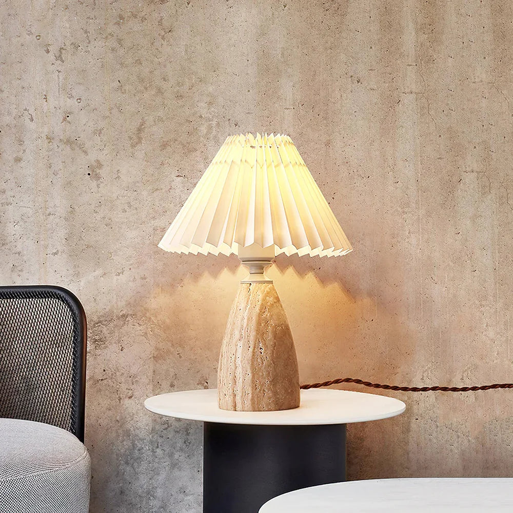 Discover understated luxury with the Conical Gusnow Travertine Table Lamp, where natural stone craftsmanship meets contemporary design. Each lamp features a distinctive travertine base with organic variations that ensure no two pieces are identical. The pleated shade delivers a warm, diffused light that transforms any room into a welcoming retreat. Built to last and designed to complement everything from minimalist to traditional décor, this statement piece brings timeless sophistication to your home.
