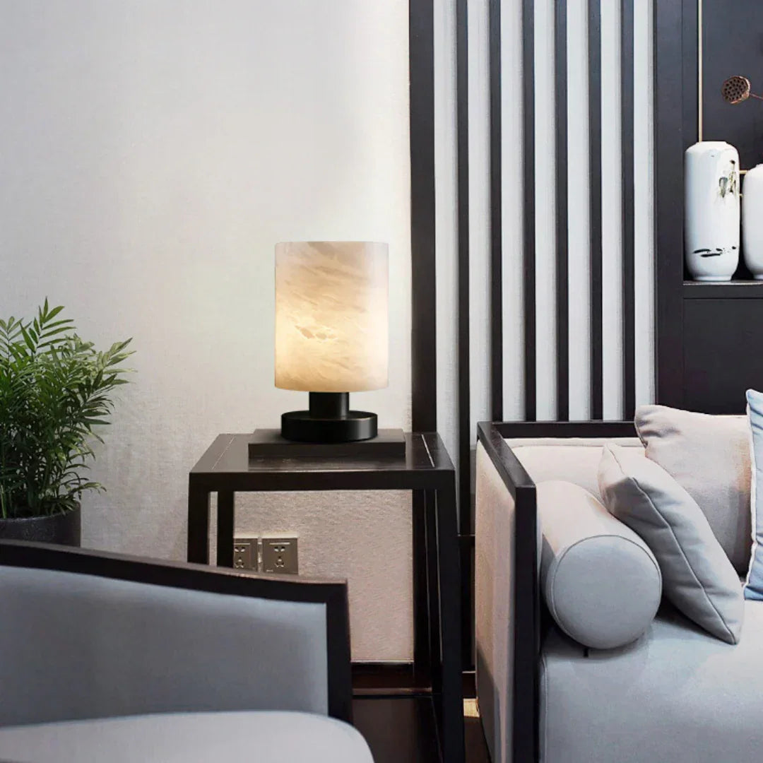 Minimalist Cylindrical Alabaster Table Lamp
