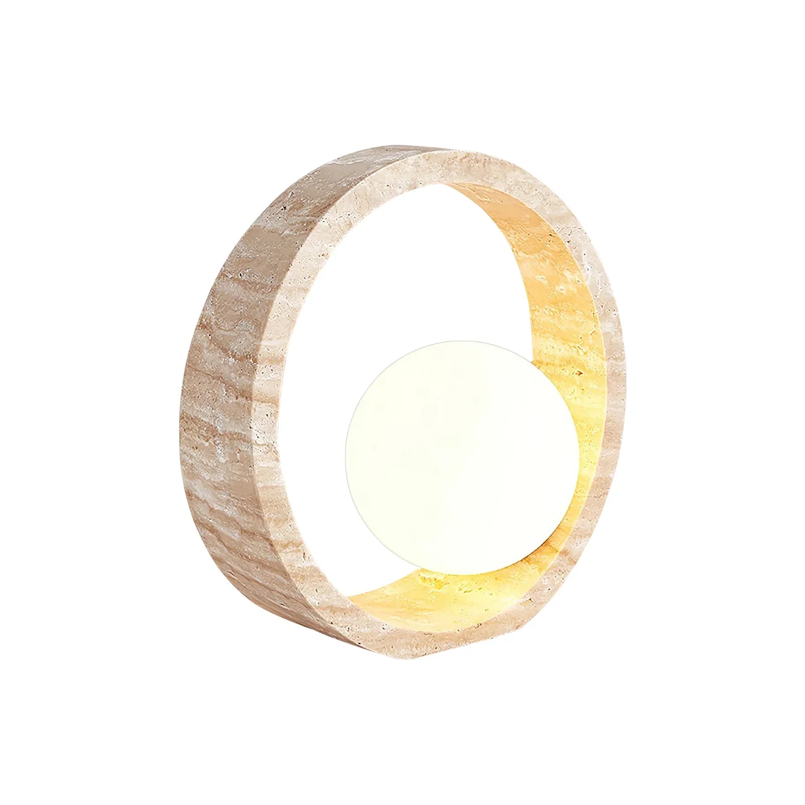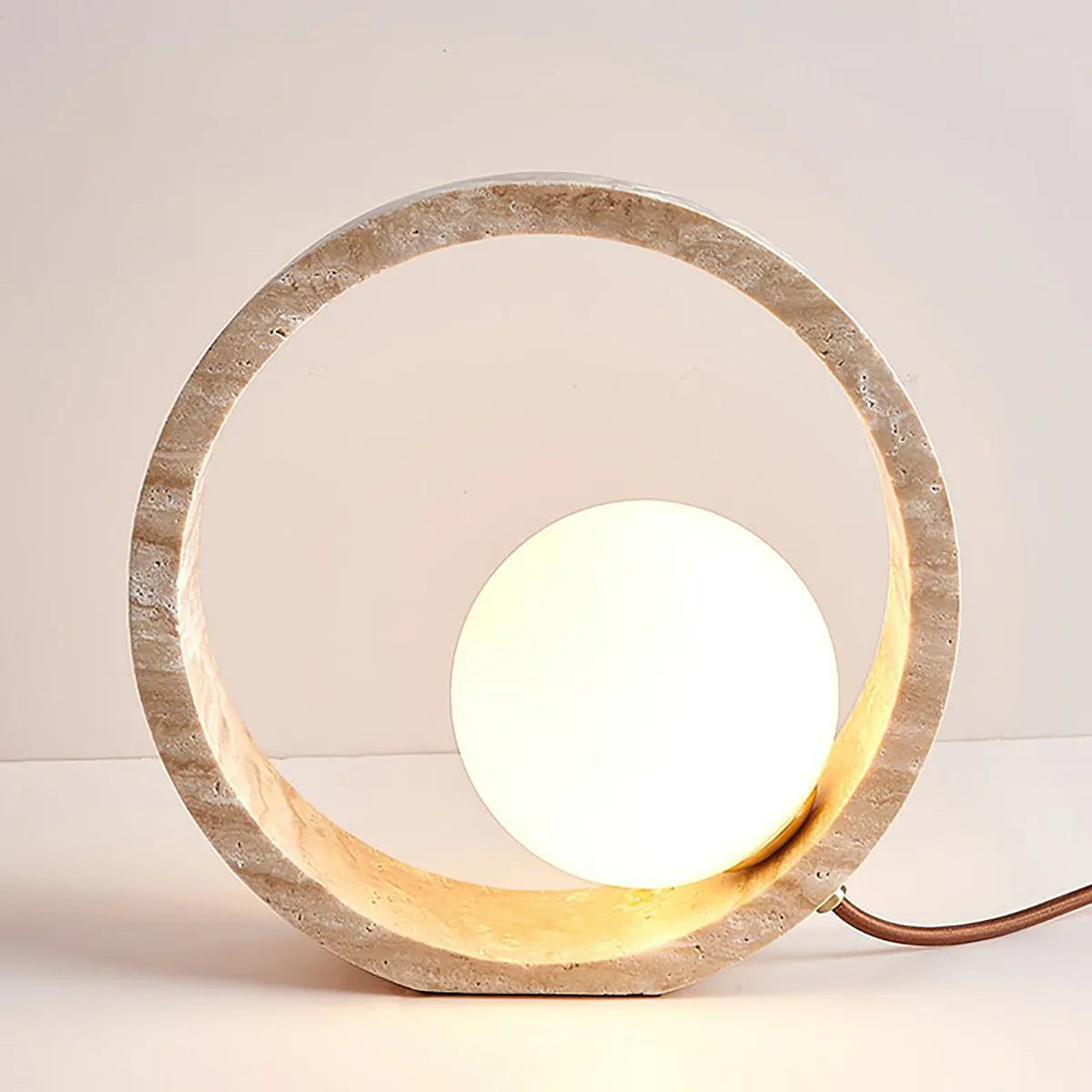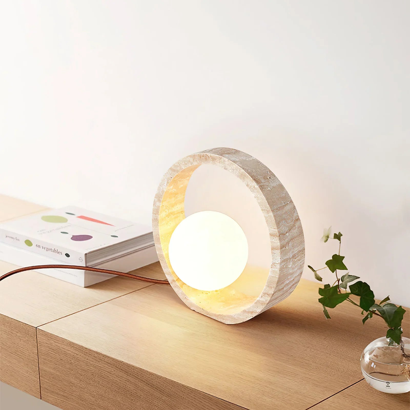 Ring Travertine Q Circle Table Lamp Transform your space with understated elegance. This sculptural table lamp features a striking circular silhouette crafted from warm travertine stone, delivering both ambient light and architectural interest. The minimalist Q design complements modern and transitional interiors alike, while its natural stone construction ensures each piece is uniquely beautiful. Perfect for bedside tables, living rooms, or entryways—a sophisticated accent that proves less truly is more.