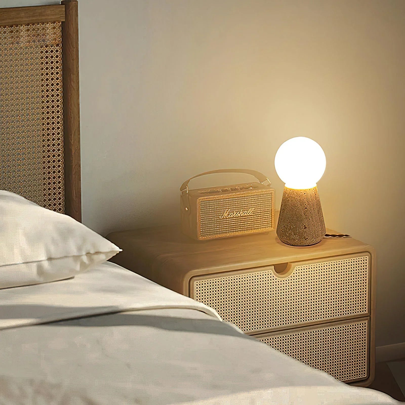 Each piece of travertine is a work of art carved by nature, and each lamp is unique. This texture conveys an artistic beauty that combines primitiveness and gentleness, making it a material that balances beauty and practicality. It integrates the simplicity of nature into everyday spaces, creating a quiet, comfortable, and breathtaking corner in the bustling world.