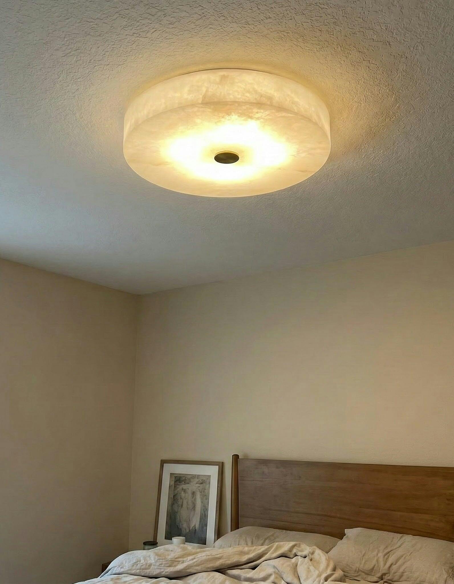 Transform your living space into a celestial oasis with the Round Eclipse Halo Travertine Ceiling Lamp. Combining travertine and brushed metal, this lamp adds a refined and ambient touch while providing both style and functionality. Elevate your decor with its glowing circular design.