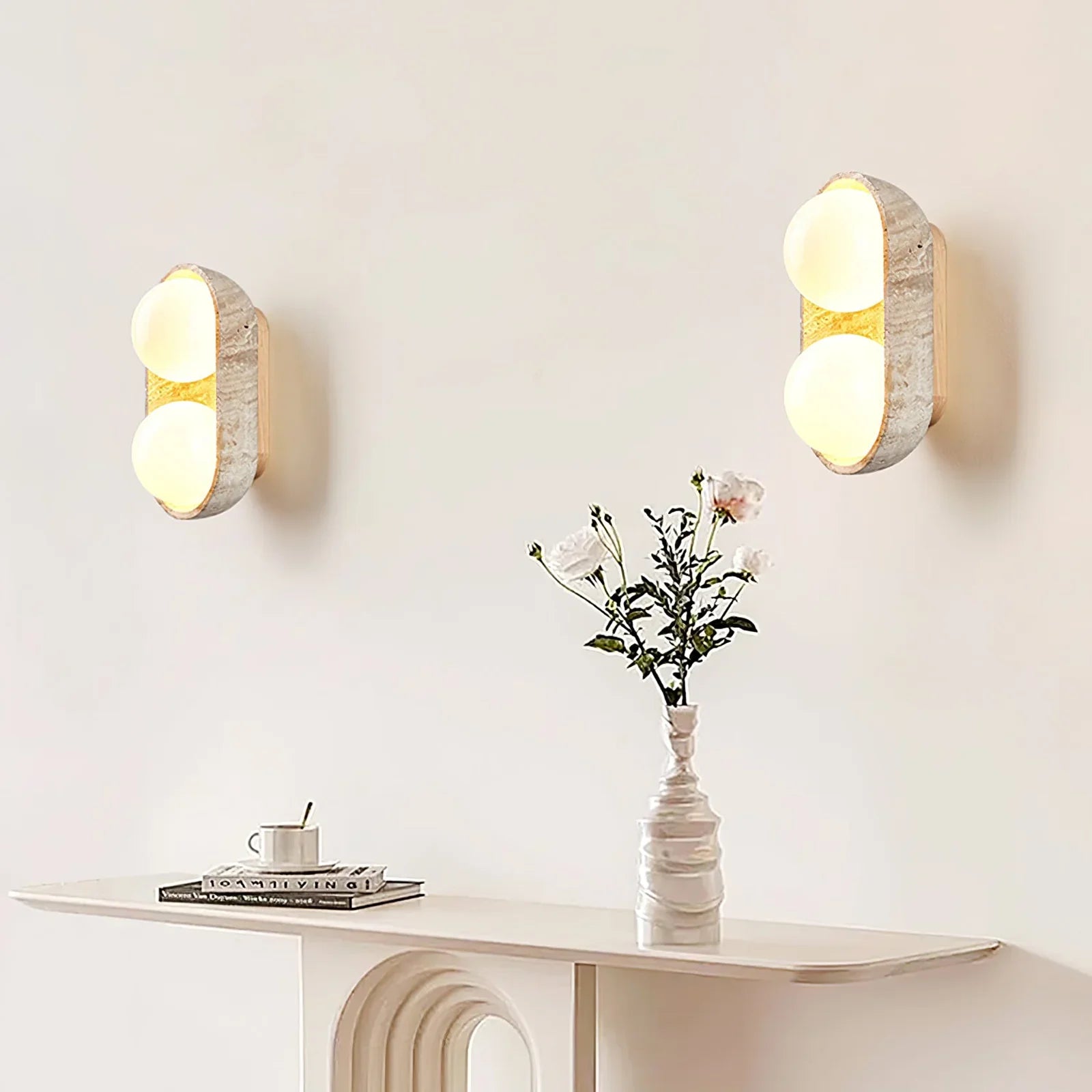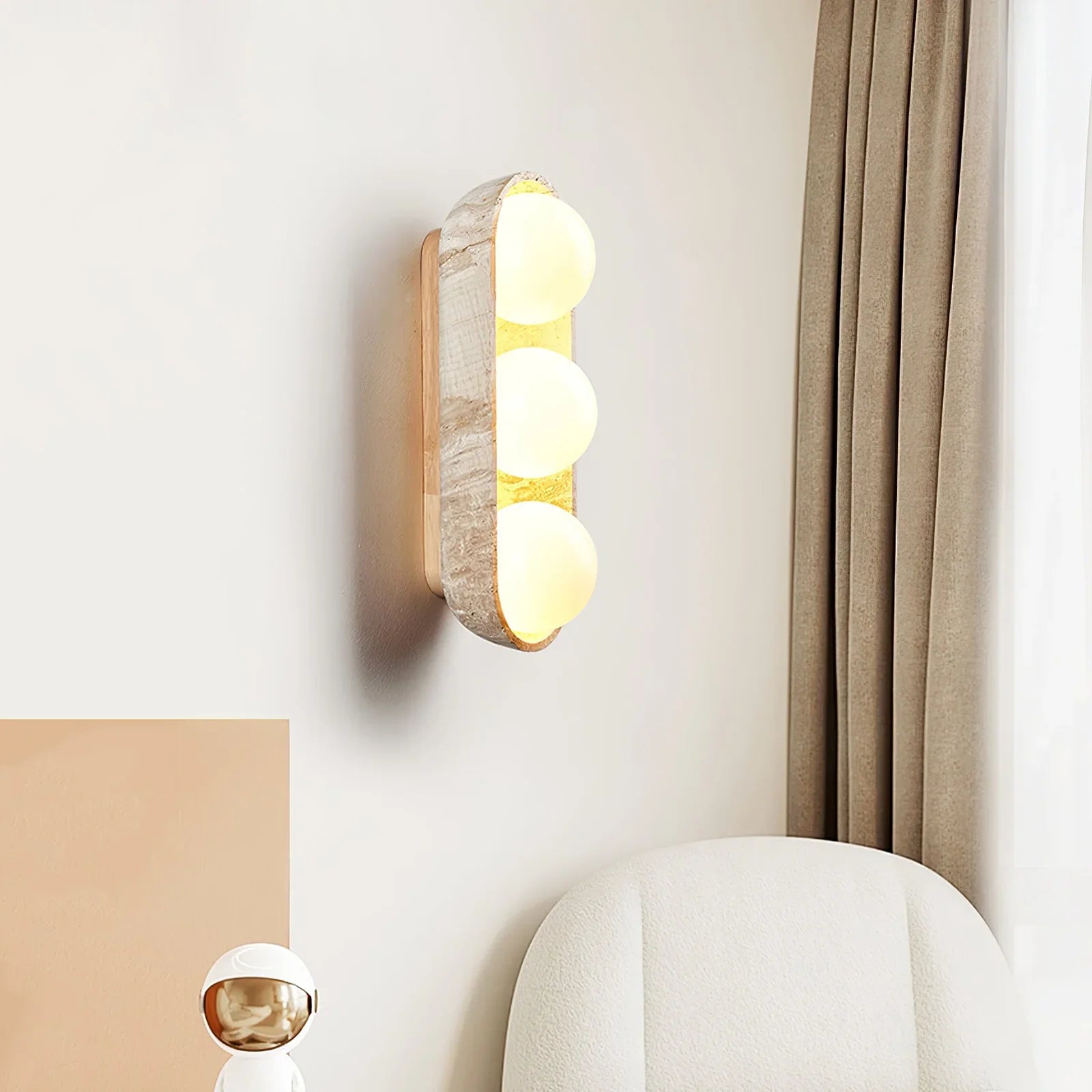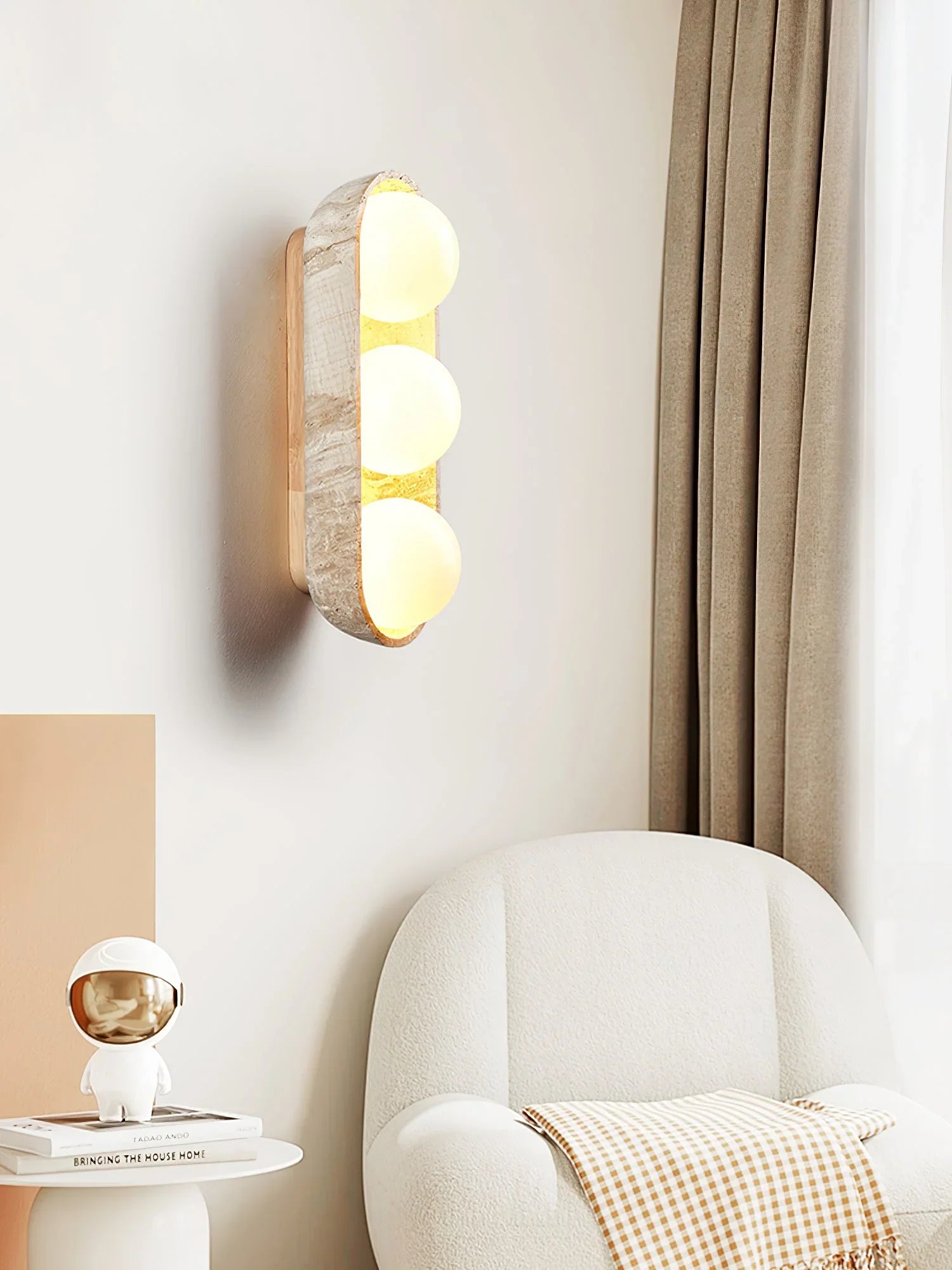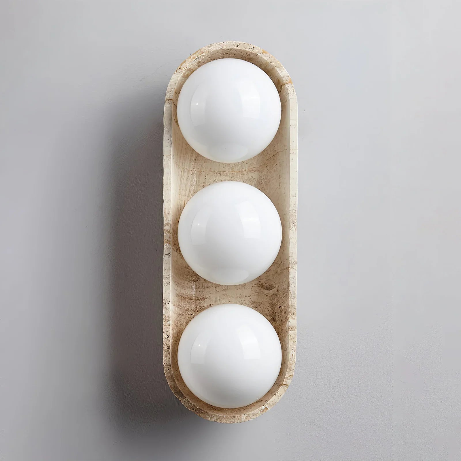 Bring timeless elegance into your space with the Travertine Solstice Trio Wall Sconce, where artisanal craftsmanship meets ambient lighting. Three luminous spheres nestle within a hand-carved travertine frame, anchored by a warm wooden base that grounds the design. The soft, golden glow evokes the tranquility of natural cycles—perfect for creating intimate moments in entryways, bedrooms, or living areas. This sculptural piece transforms any wall into a focal point, blending organic materials with thoughtful illumination to establish an atmosphere of calm sophistication.