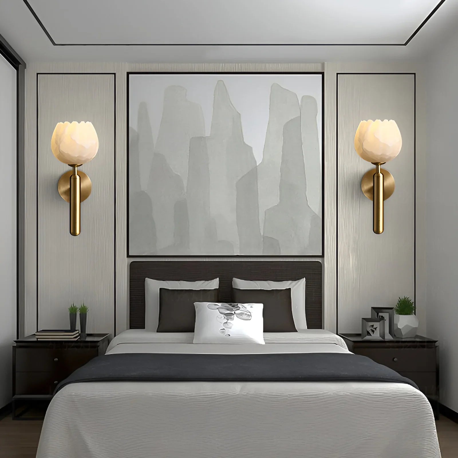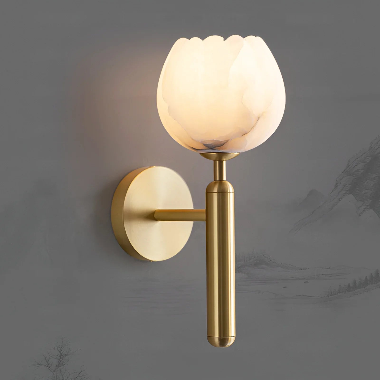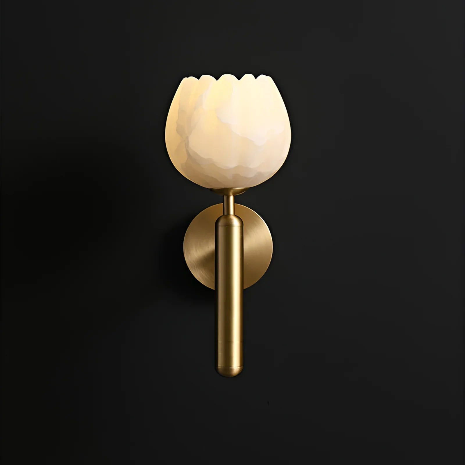 Each alabaster petal softly diffuses the light, creating a warm, inviting ambiance that brings depth and serenity to your interiors. Whether placed in a hallway, living room, or bedroom, the Mian Wall Lamp serves as both a functional light source and a work of art.