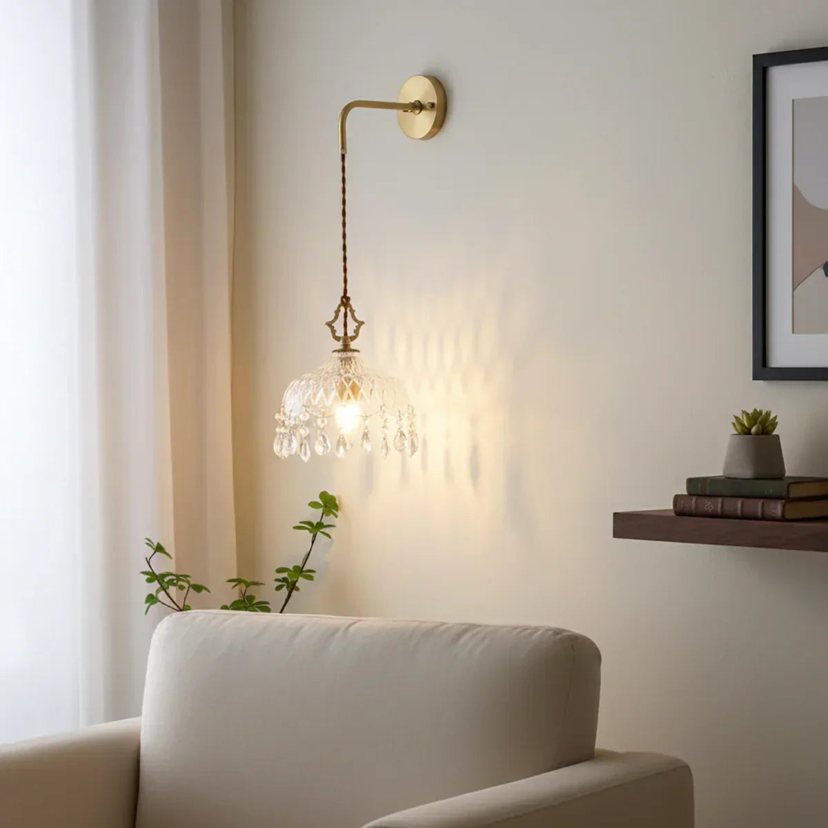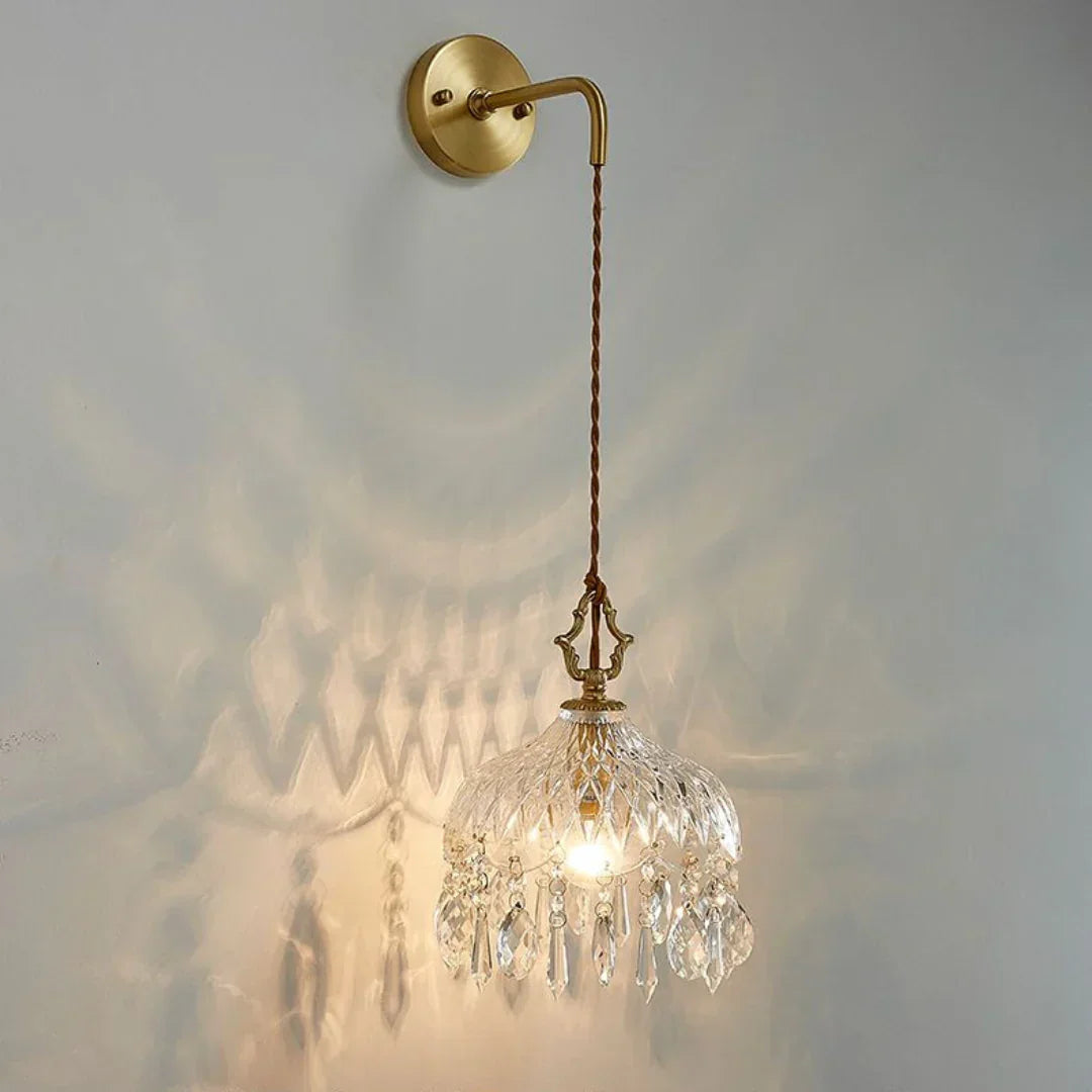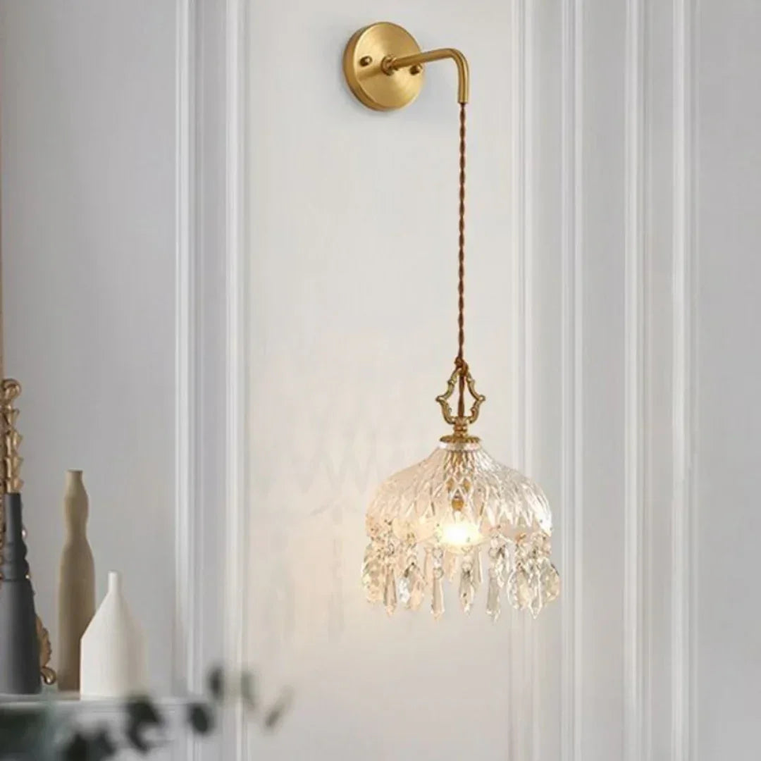 This Alshamal glass wall lamp is perfect for home décor. Its exquisite glass design creates a unique look, making it a striking addition to any room, whether in the bedroom, hallway, dining room, or kitchen.The copper material and retro crystal decor complete this lamp to give it a timeless look. This wall lighting is crafted with precision and care, featuring a robust copper body and intricate glass design that ensures a beautiful addition to any room. Retro crystal decor completes the timeless look, giving it a sophisticated and unique look.